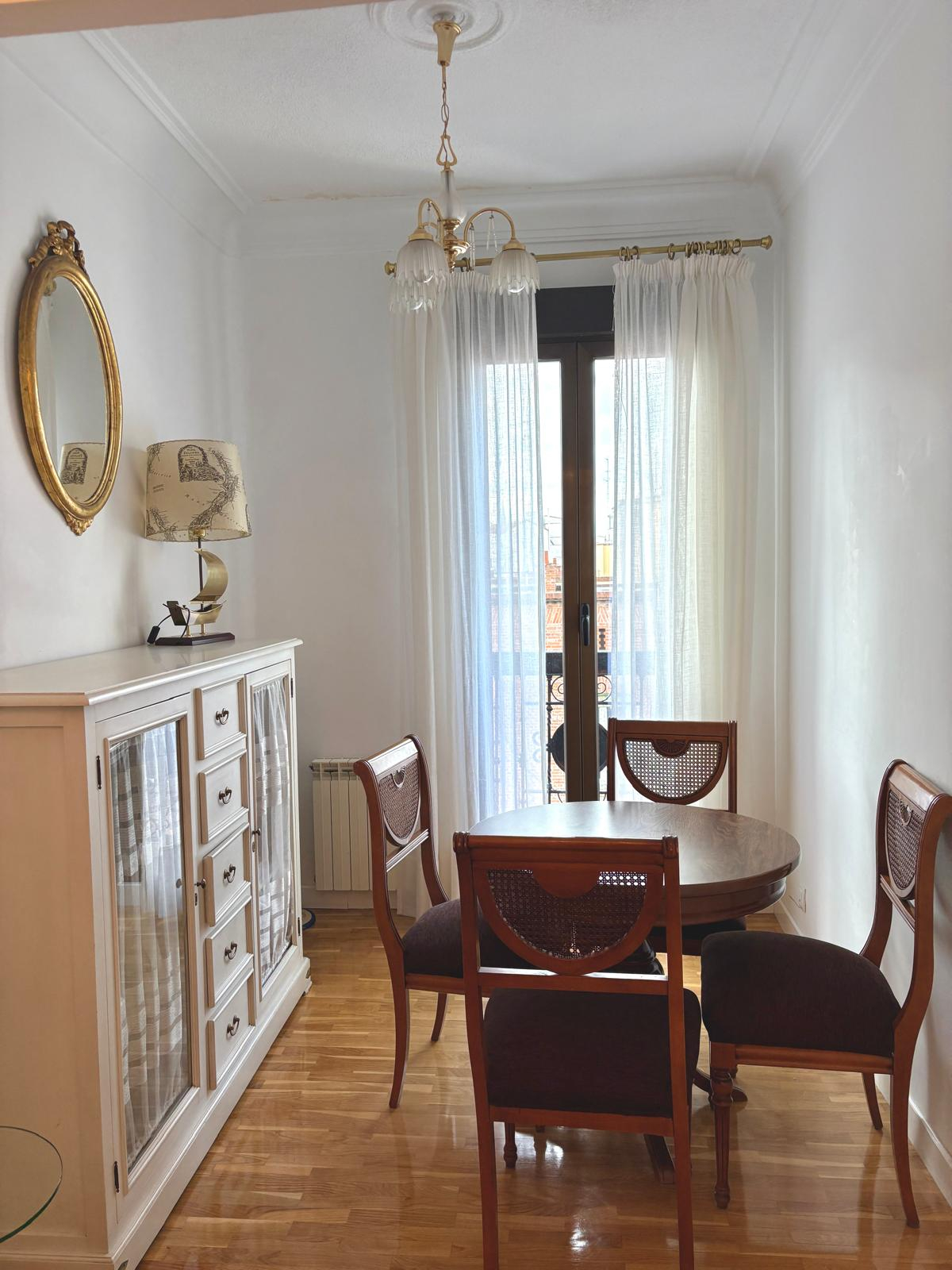Small but comfortable 3-bedroom, 1 bathroom apartment on the 6th floor of a building in Chamberi, Madrid, equipped with a small lift.