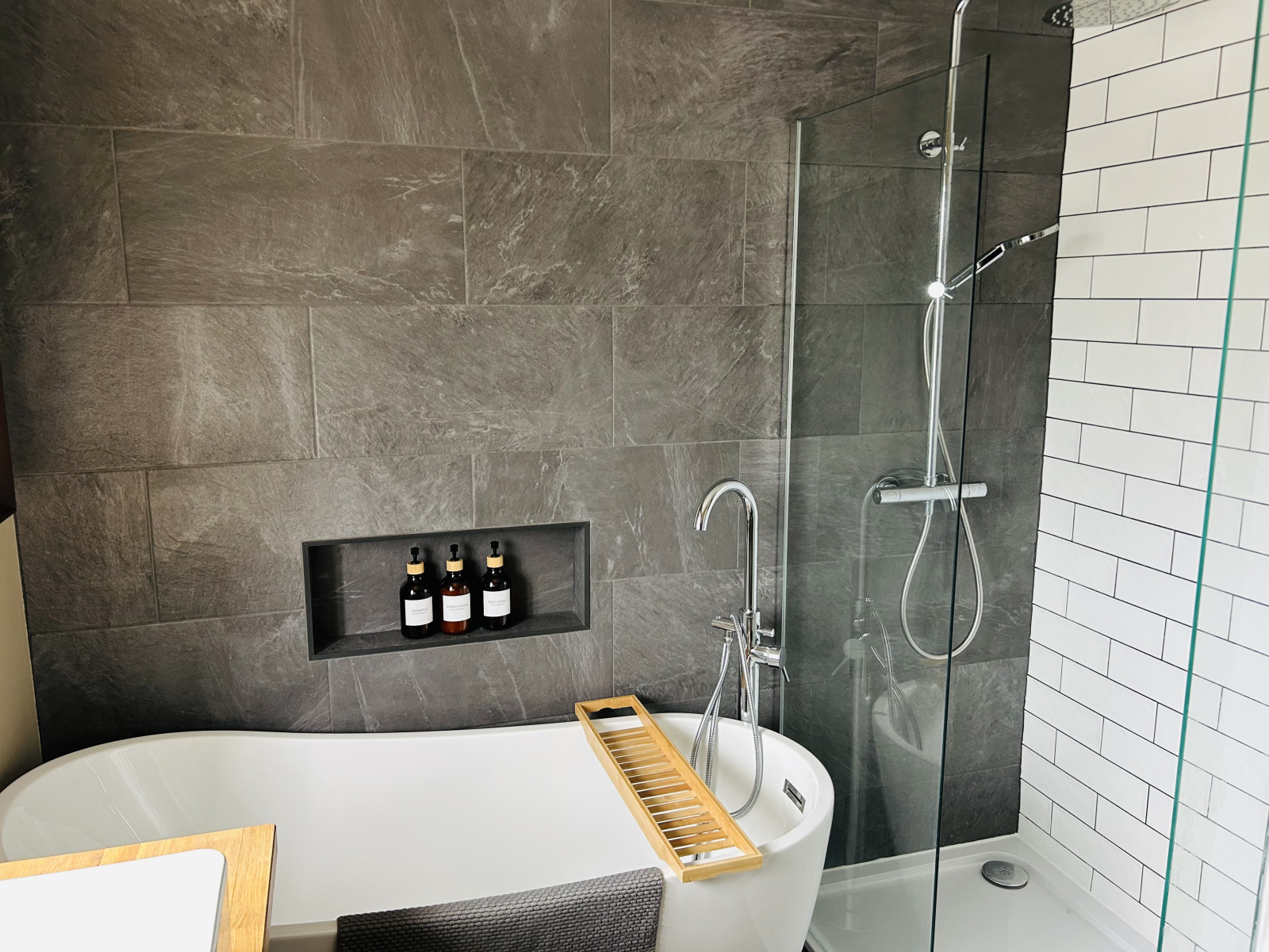 The large open-plan kitchen and dining area is fully equipped for home cooking, including a Nespresso coffee machine, and leads to the private garden. The cosy front room has a fireplace and Amazon Fire Stick for watching your favourite streaming services and relaxing in the evening. There is a separate laundry room which includes a washing machine and tumble dryer.