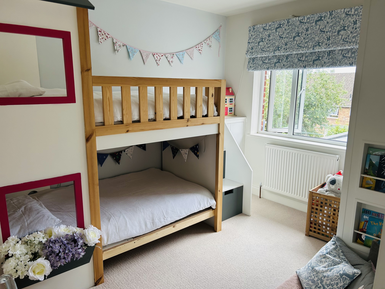 We love our bright and spacious family home in the medieval city of Salisbury, ideal for a relaxing break in Wiltshire. Our semi-detached house sleeps up to 6 guests and features three bedrooms – one king, one double, and a room with bunk beds – plus a modern family bathroom upstairs and a convenient downstairs WC.