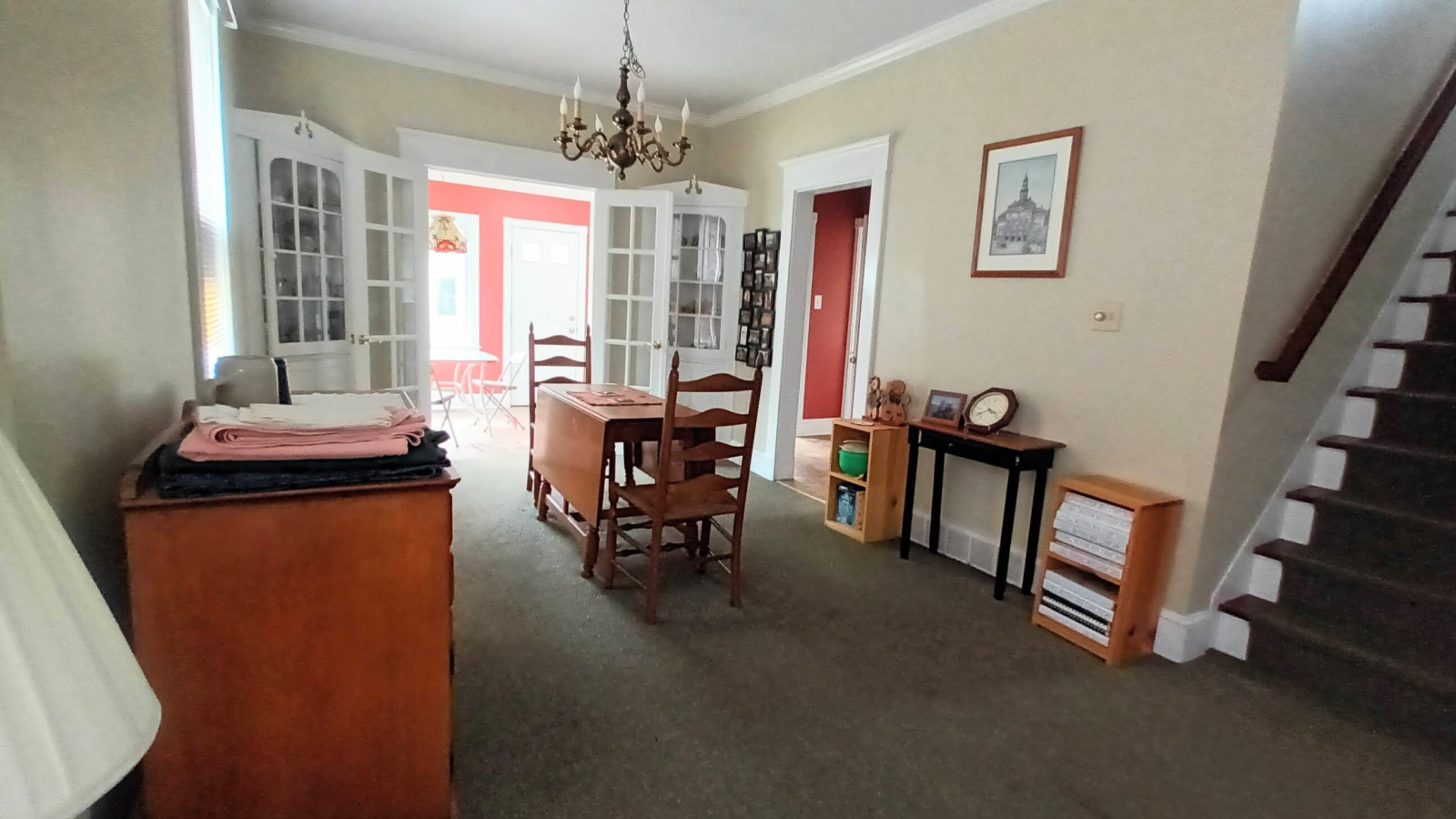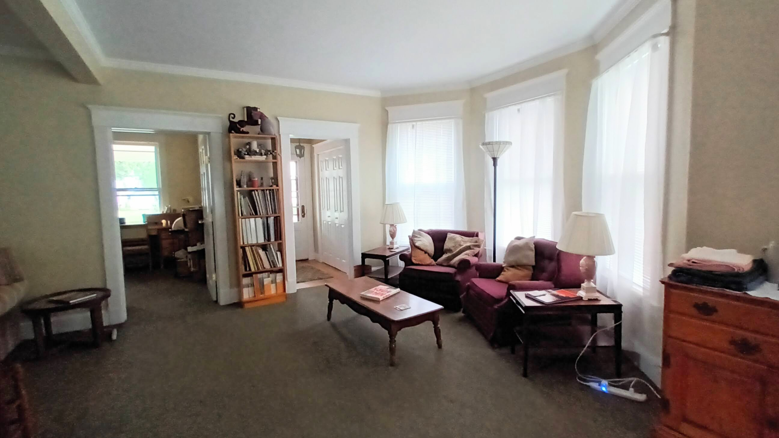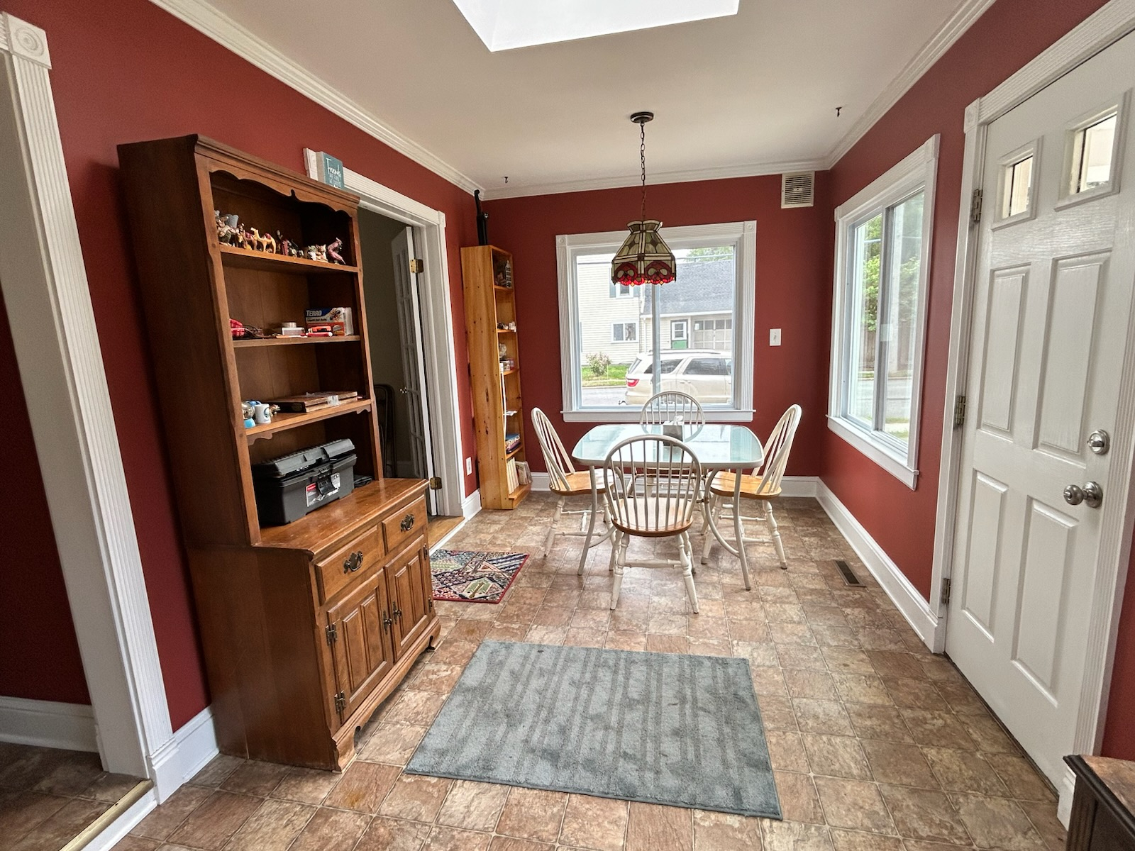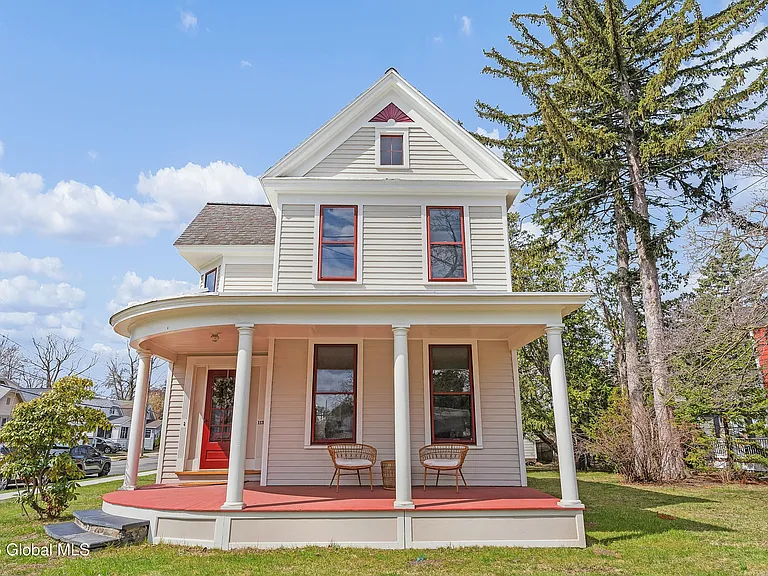 The outside features a large front porch perfect for sitting with an afternoon tea and watching many neighbors walking dogs or the light traffic go by. You can easily walk to the village main street. There is a driveway with space for you to park off-street, and an open grassy lawn.