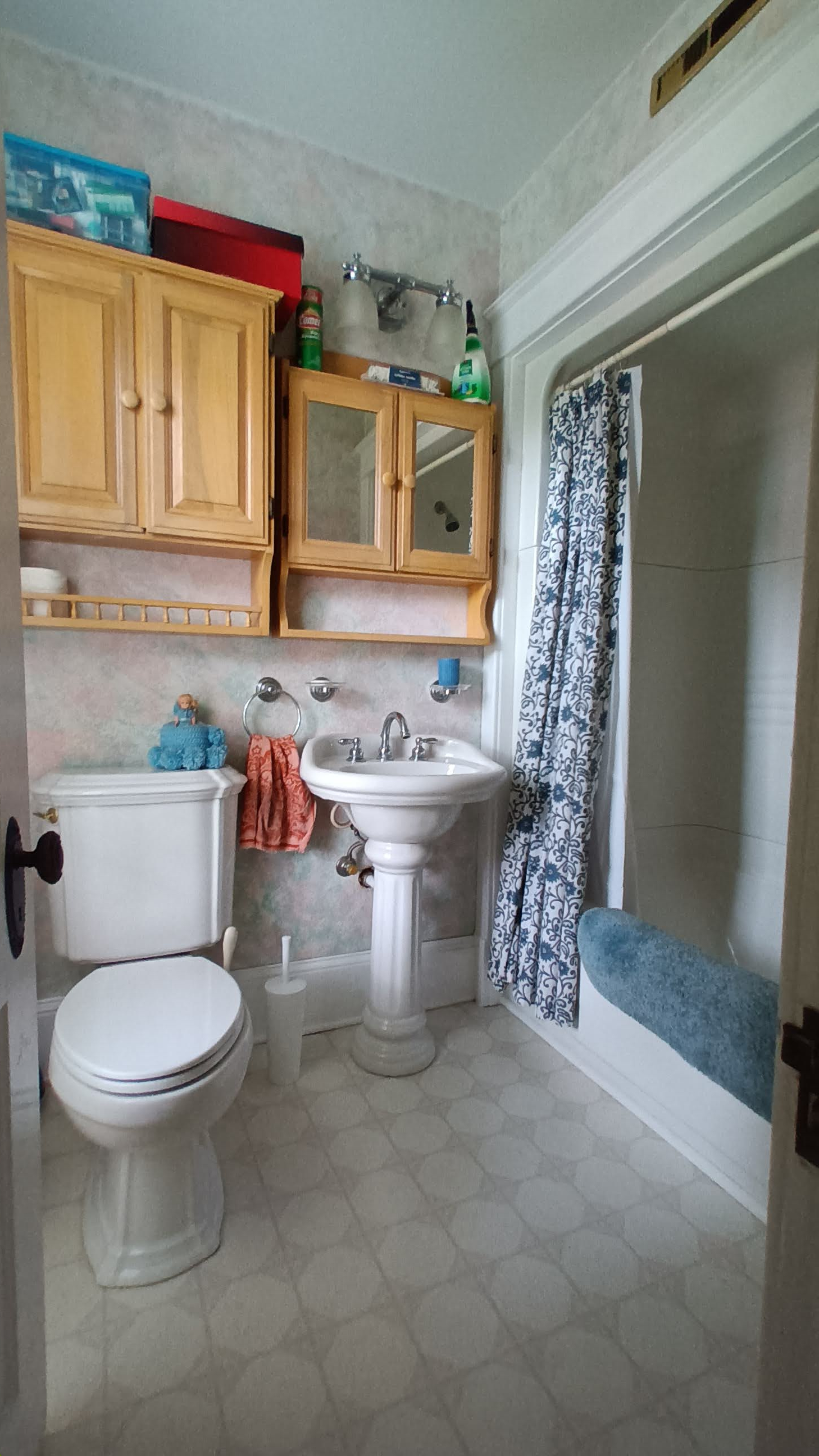 Upstairs are three bedrooms and a full bathroom with a tub and included shower. The basement has a washer and dryer, which we will also offer to our guests.