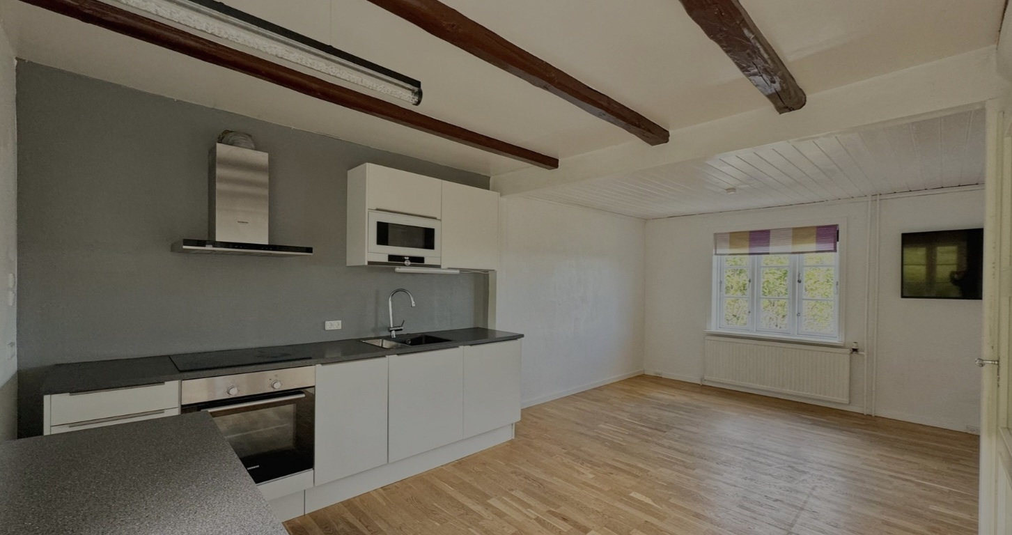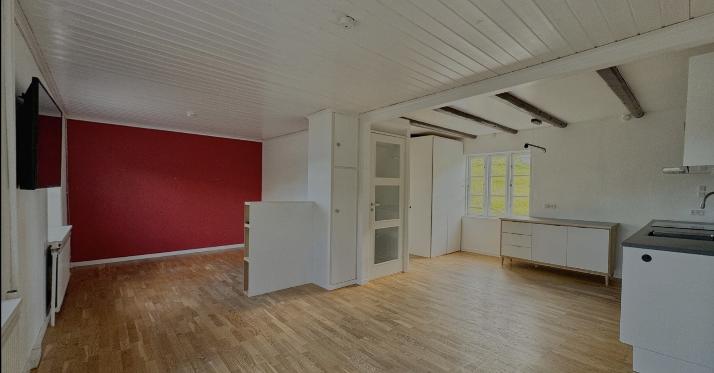 2 bedrooms and a bathroom on the topfloor. Entrance, kitchen and livingroom on the middlefloor. 1 bedroom, bathroom and entrance on the basefloor.