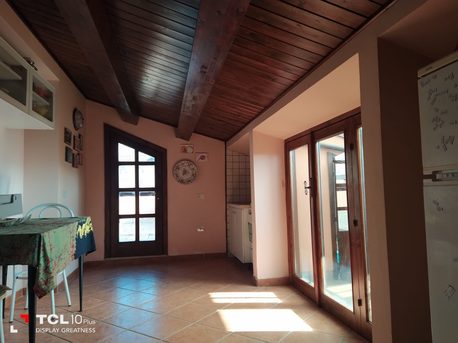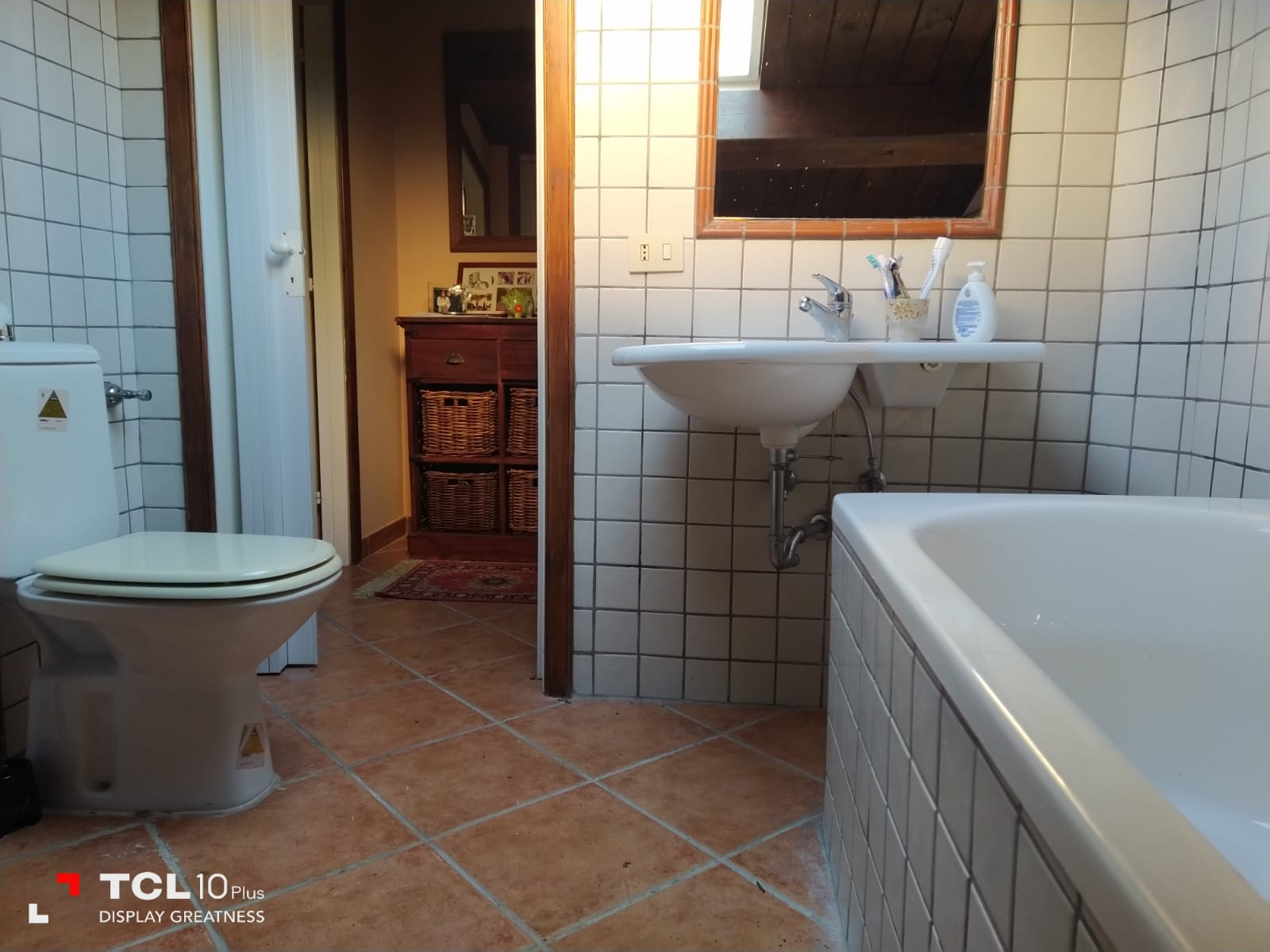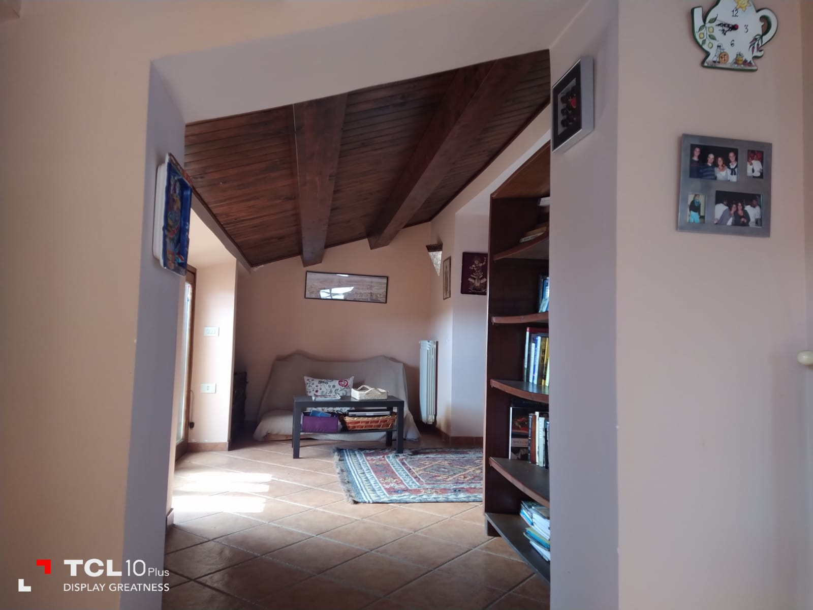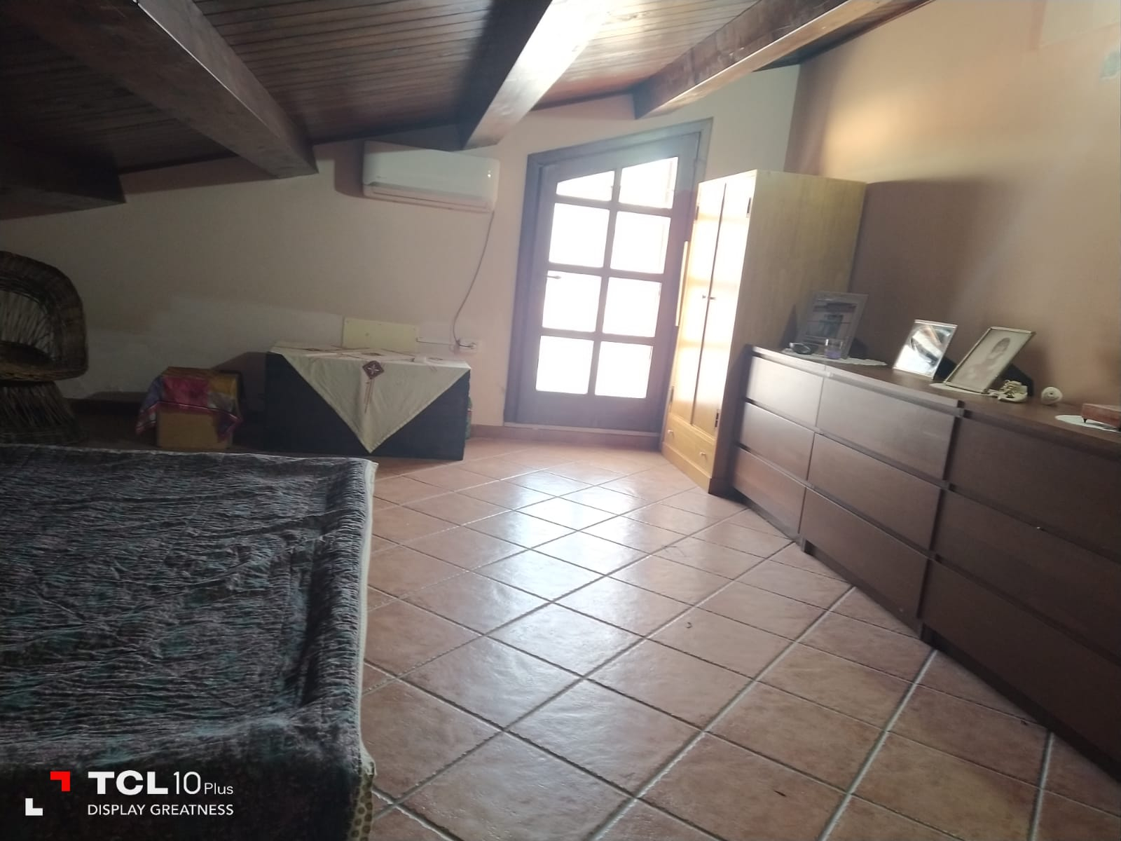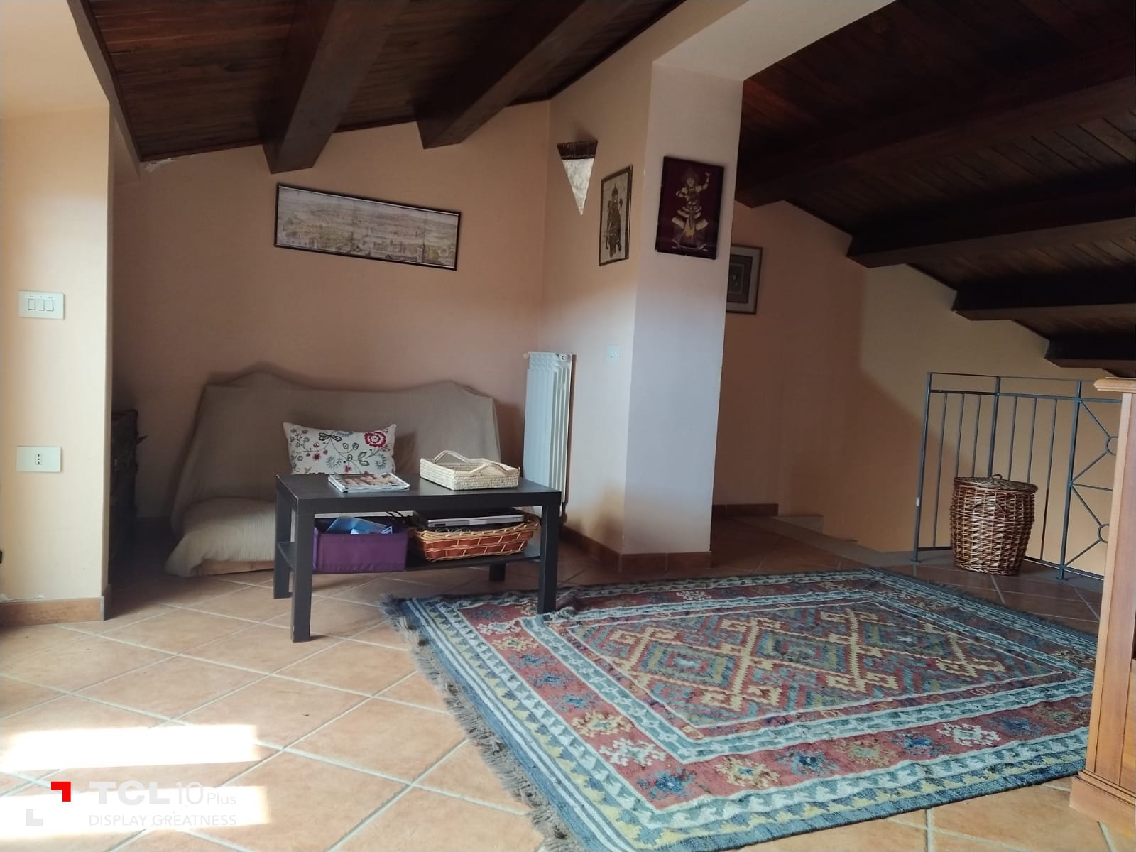 Thick wooden beam ceilings and terracotta tiles cover the 150 square foot attic. There is large air conditioned bedroom is furnished with dressers, a queen size bed, bathroom with tub, small living room, equipped kitchen, refrigerator and a large bookshelf with travel guides and historical novels based on the southern Italian region. There are two small terraces off the living room and a larger terrace off the bedroom and kitchen overlooking the large backyard and sweeping mountain views.