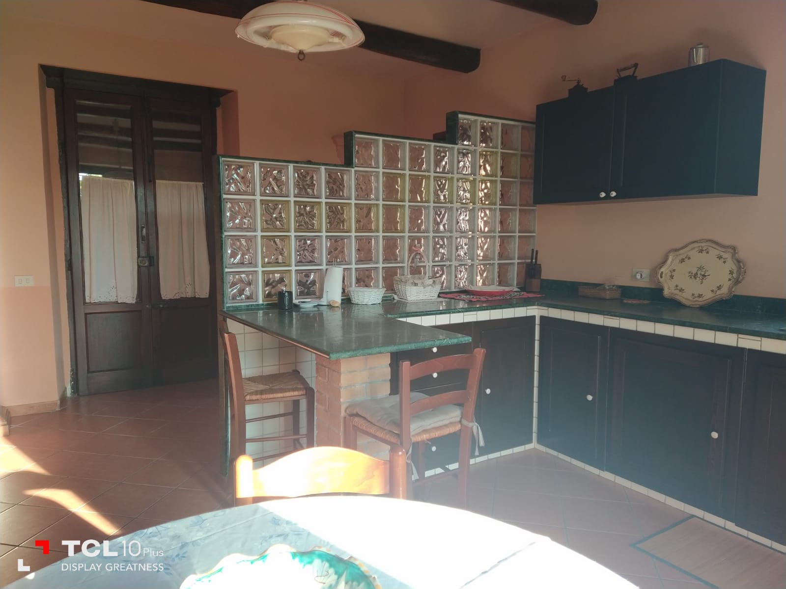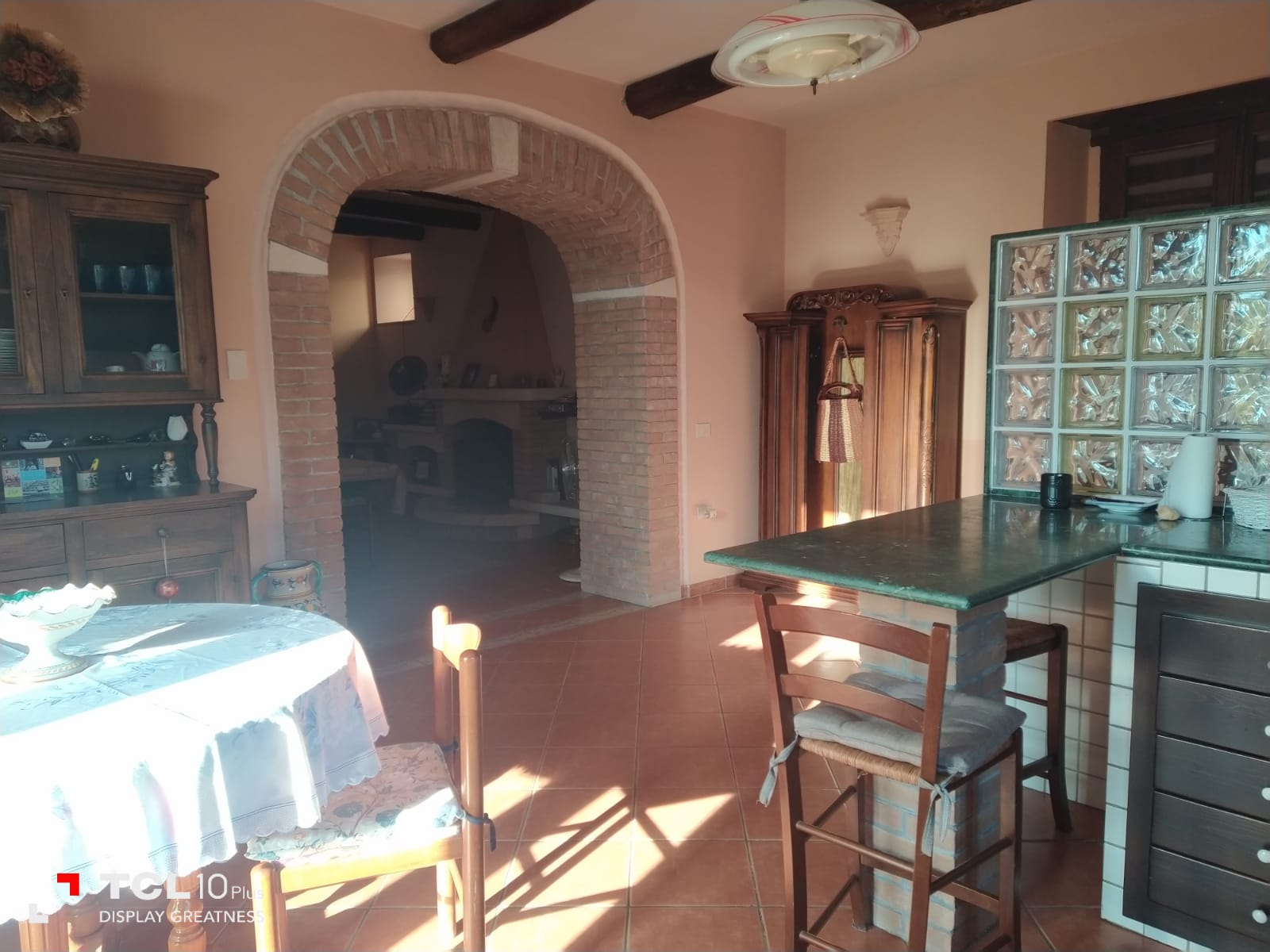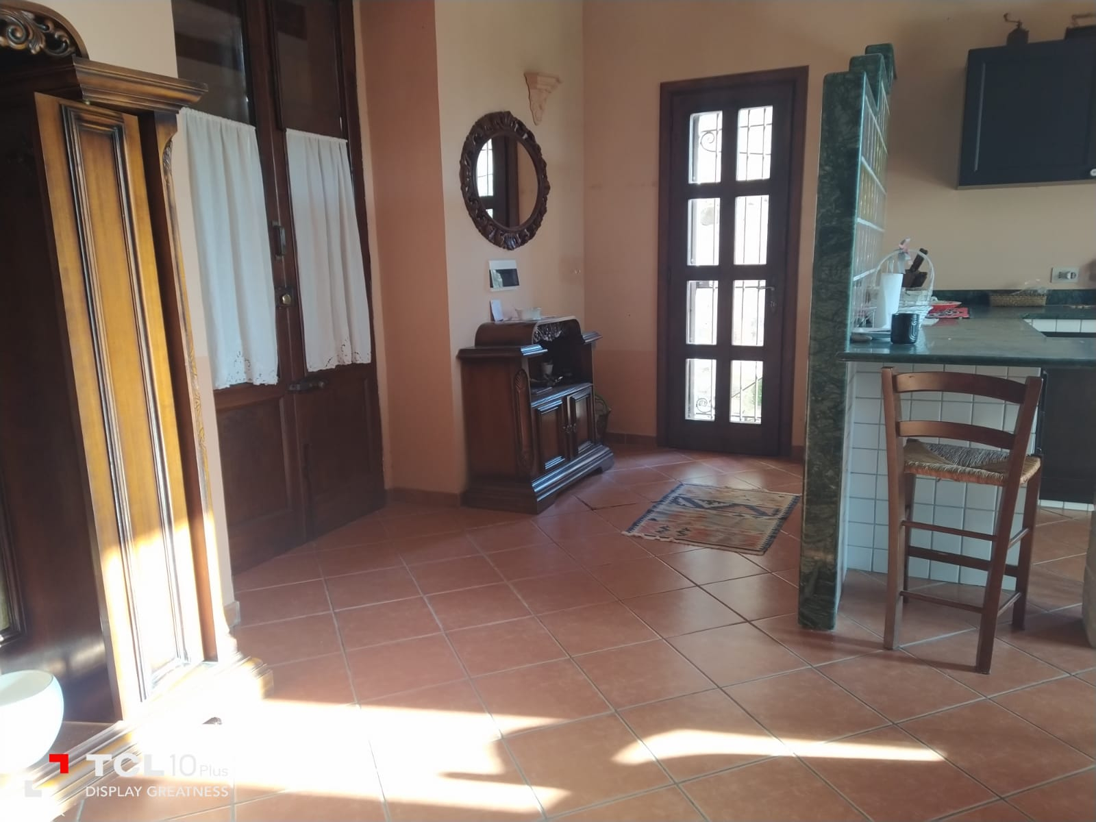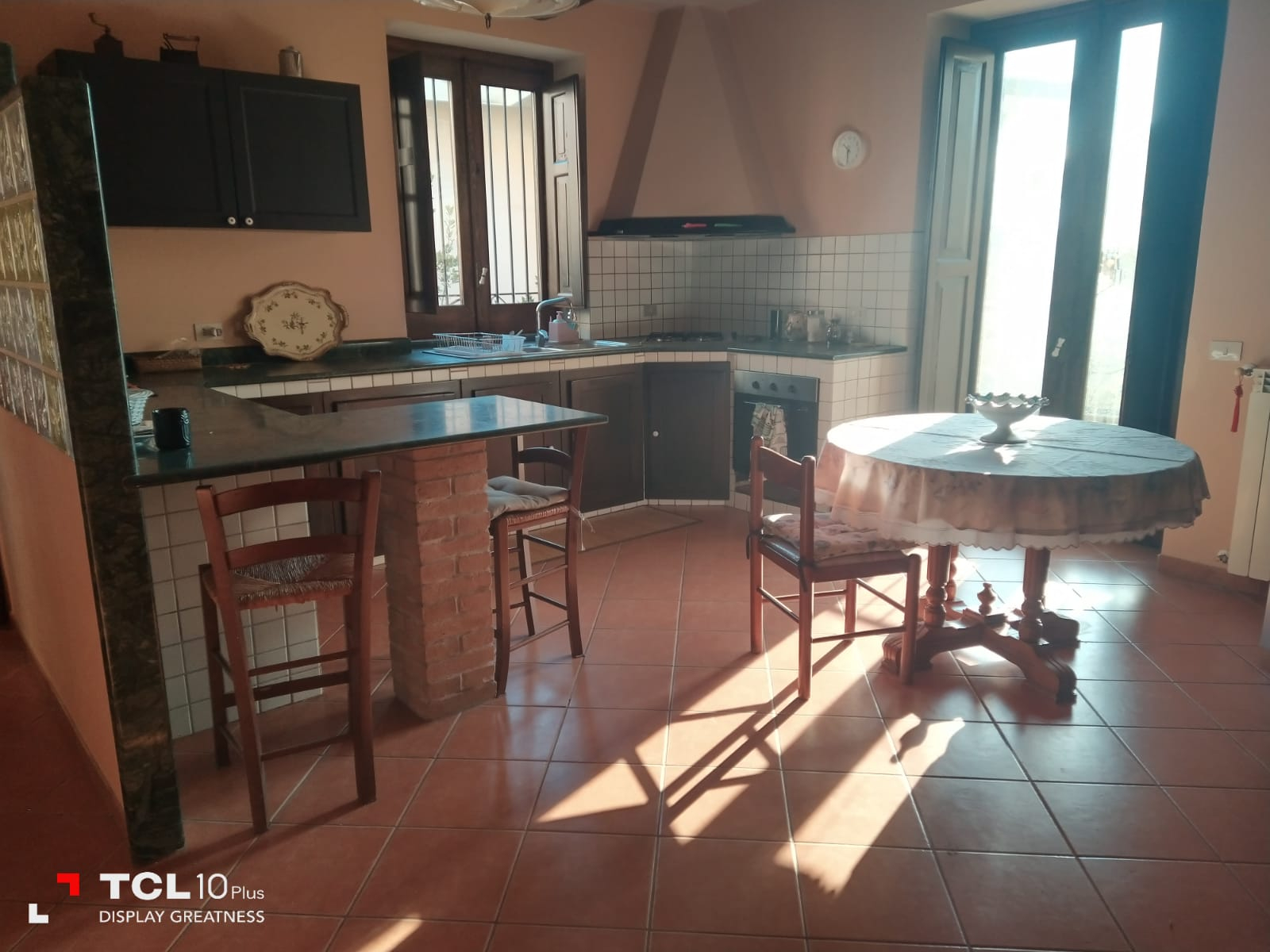 Thick wooden beam ceilings and terracotta tiles cover the 150 square foot attic. There is large air conditioned bedroom is furnished with dressers, a queen size bed, bathroom with tub, small living room, equipped kitchen, refrigerator and a large bookshelf with travel guides and historical novels based on the southern Italian region. There are two small terraces off the living room and a larger terrace off the bedroom and kitchen overlooking the large backyard and sweeping mountain views.