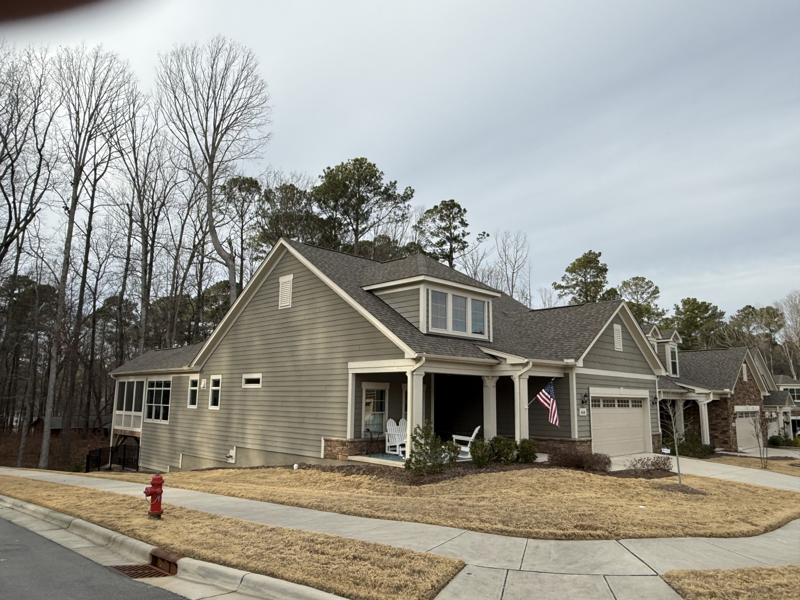 We’re an active senior couple living in a very nice +55 Active Retirement Community very close to the historic town of Apex, NC. House built in 2022 very specious and our neighbors are wonderful.