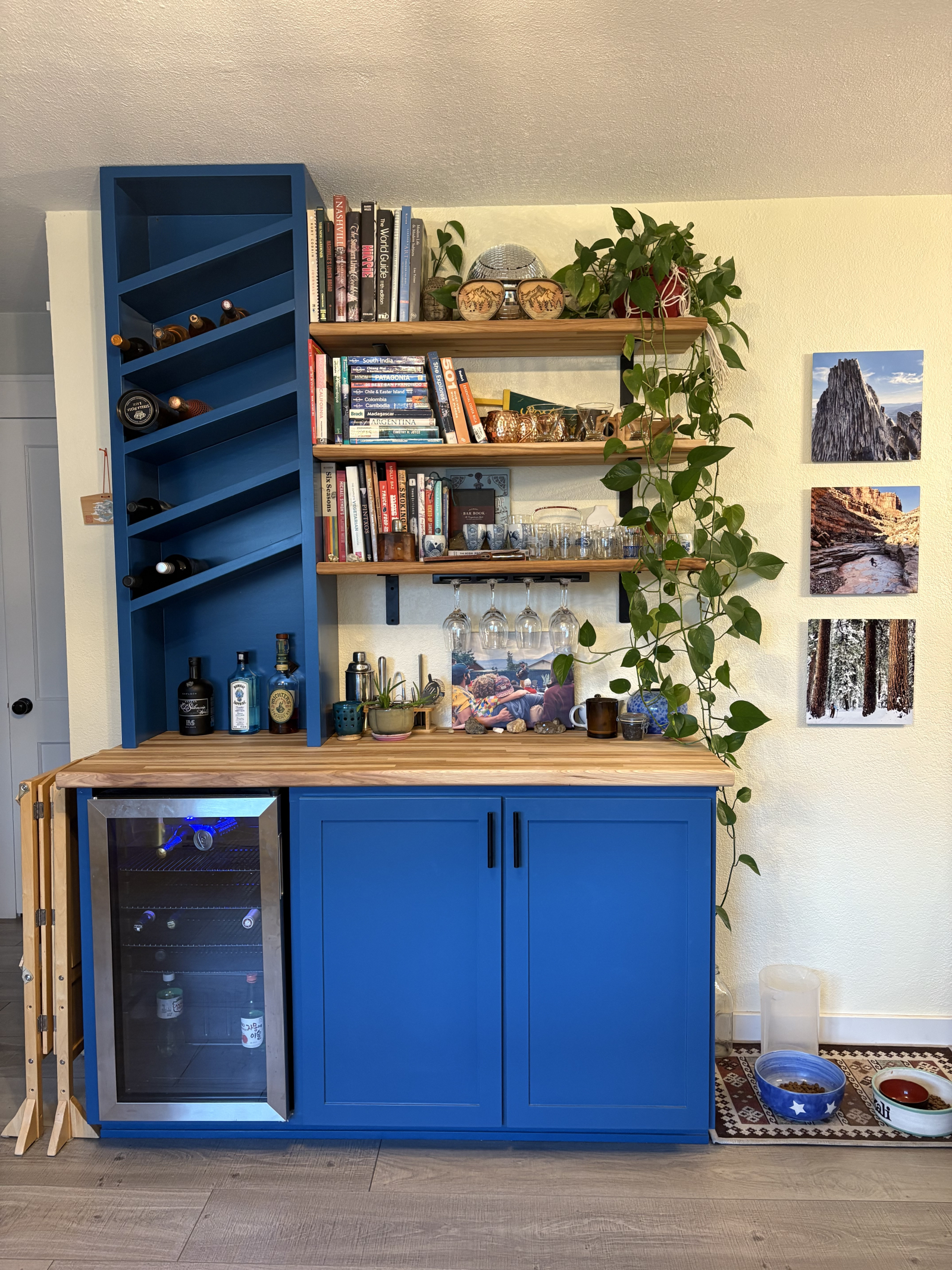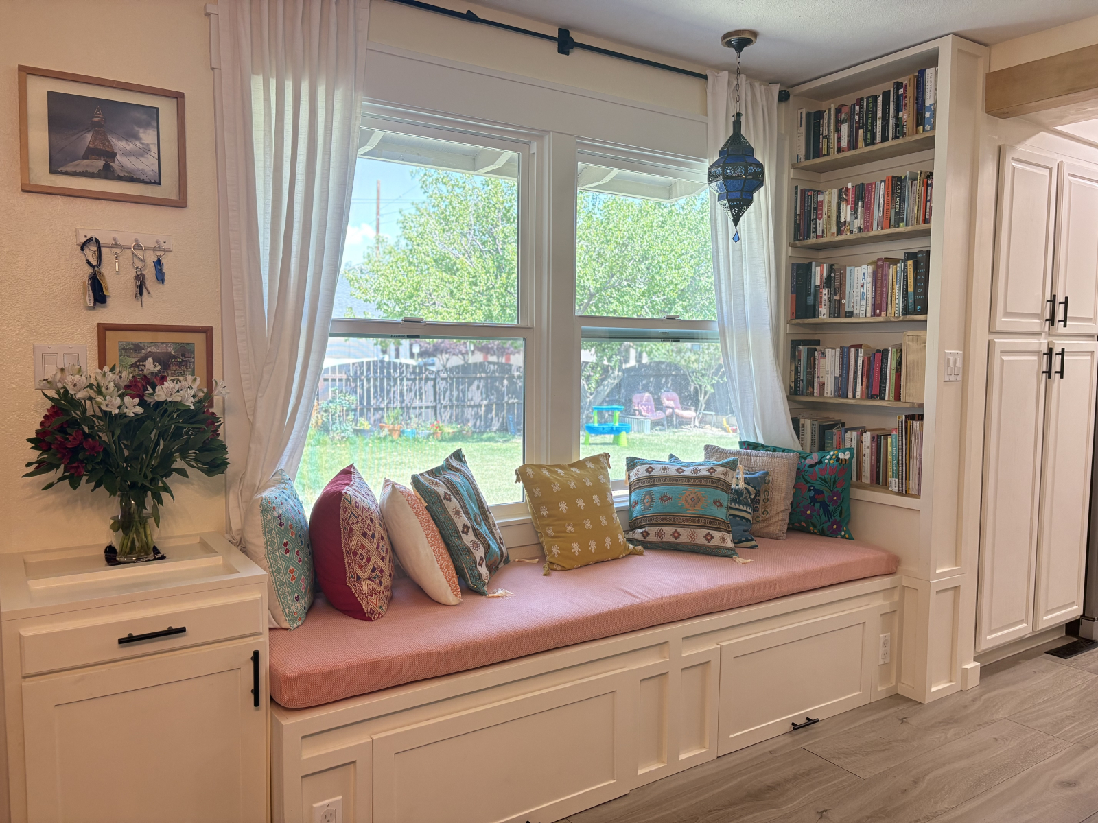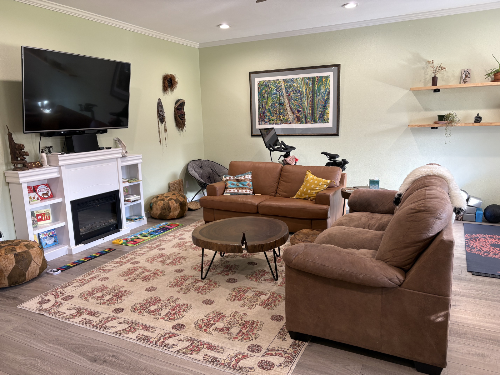 We love the huge live-edge dining room that can fit 8 comfortably - and more if needed!