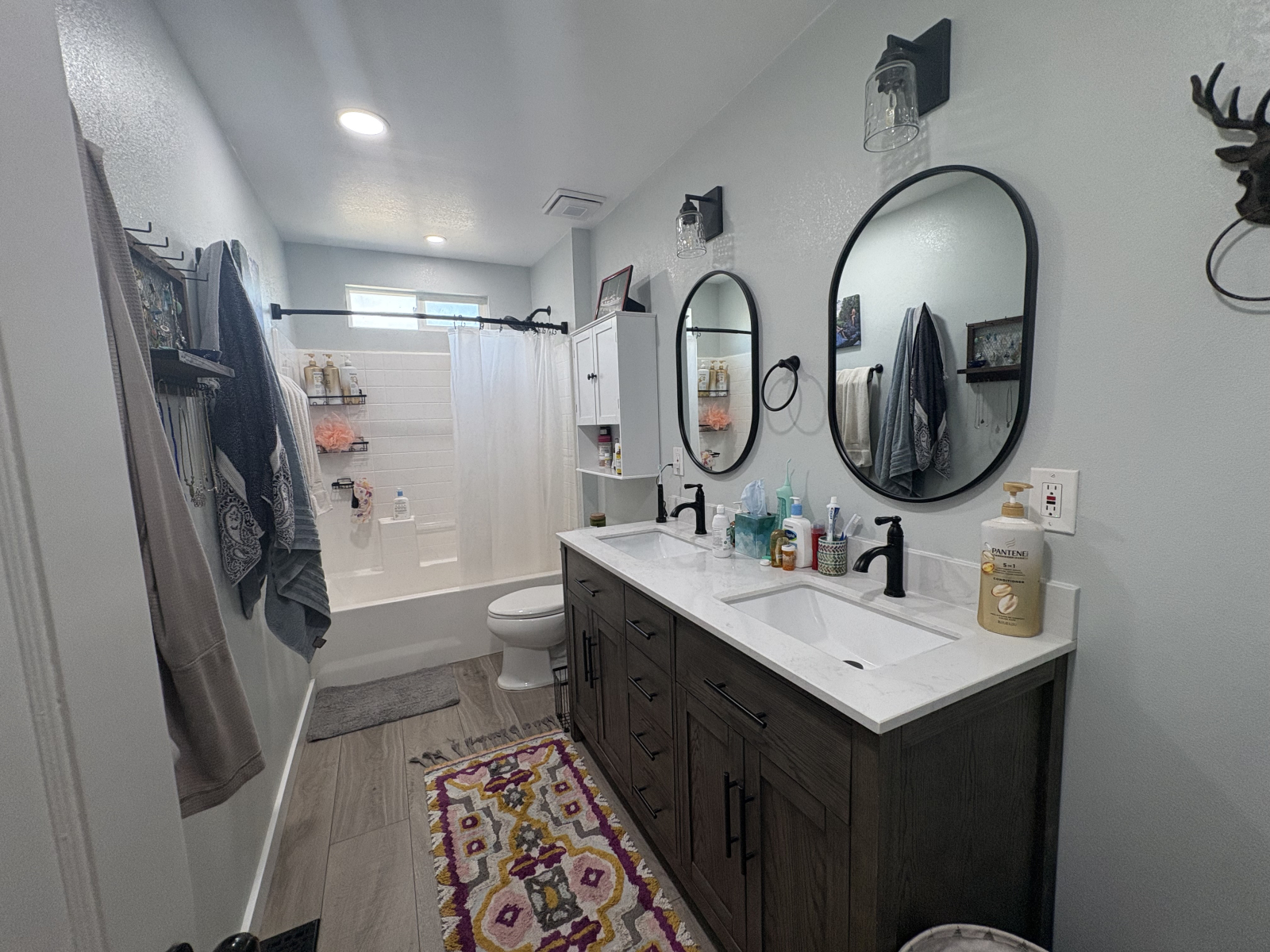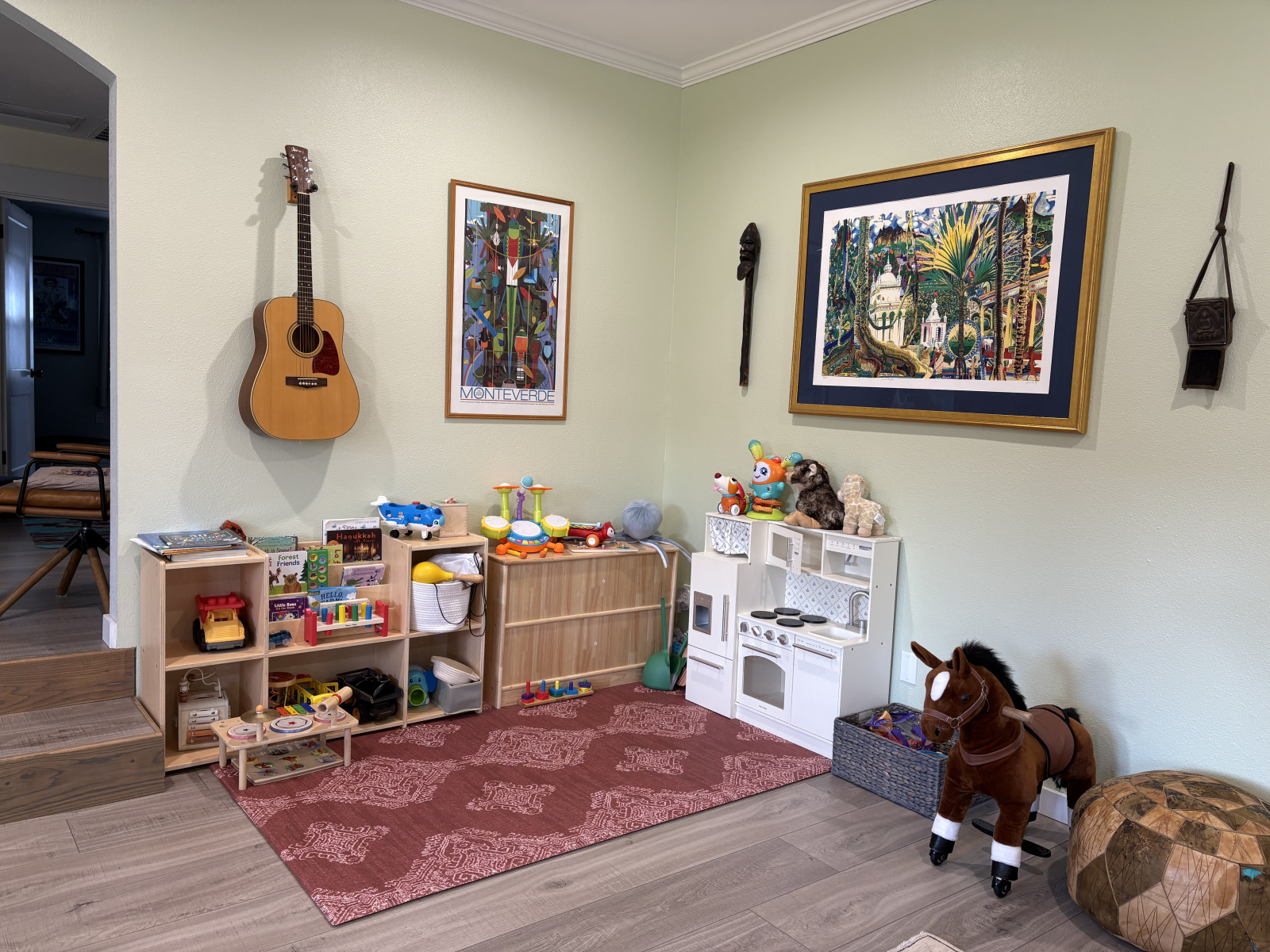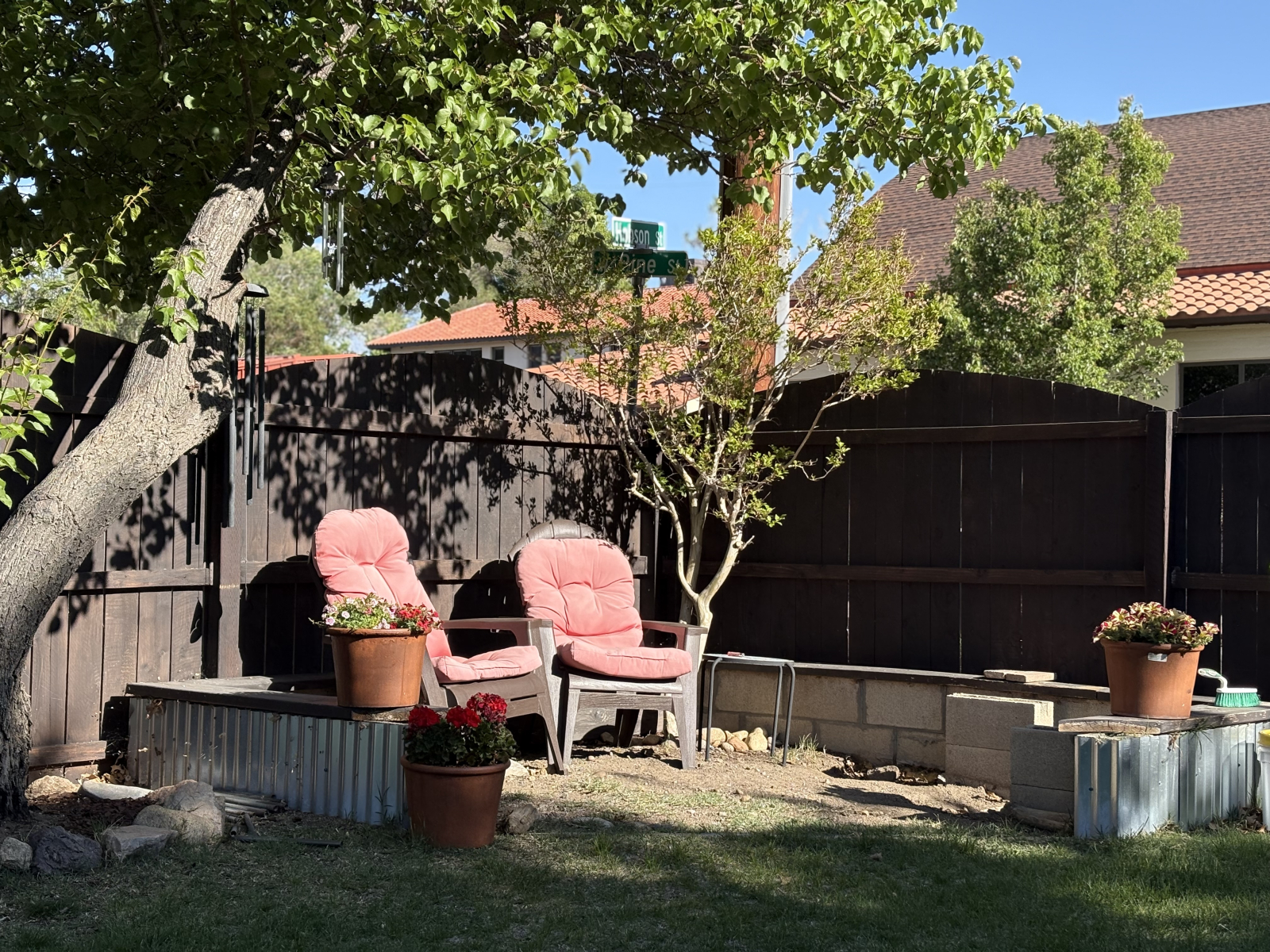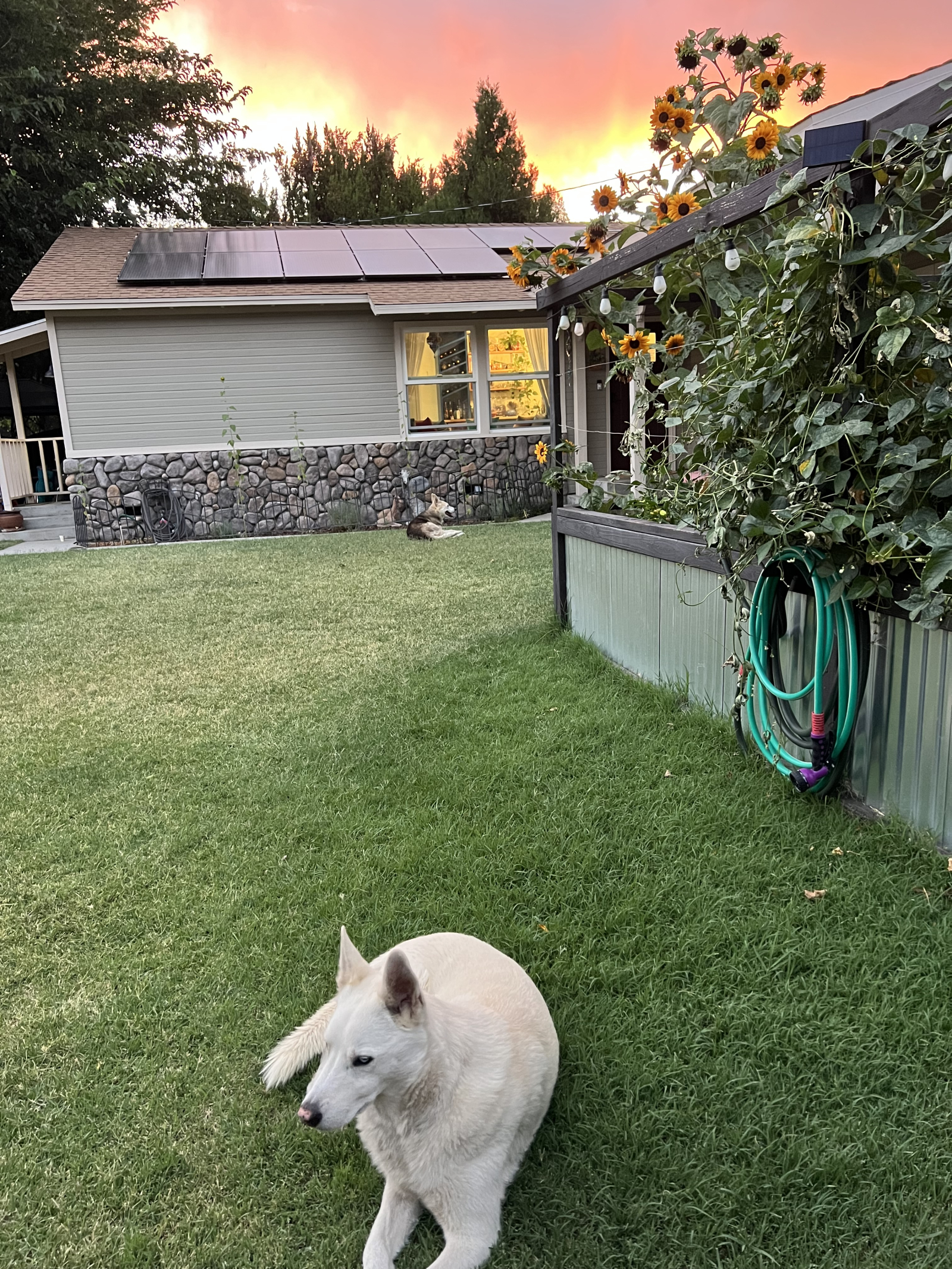 We love the fenced in yard with a big lawn, perfect for kids and dogs. Summer veggies in the garden too!