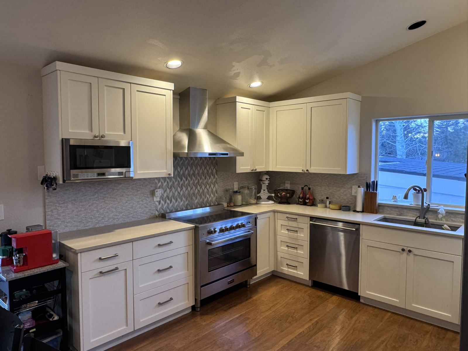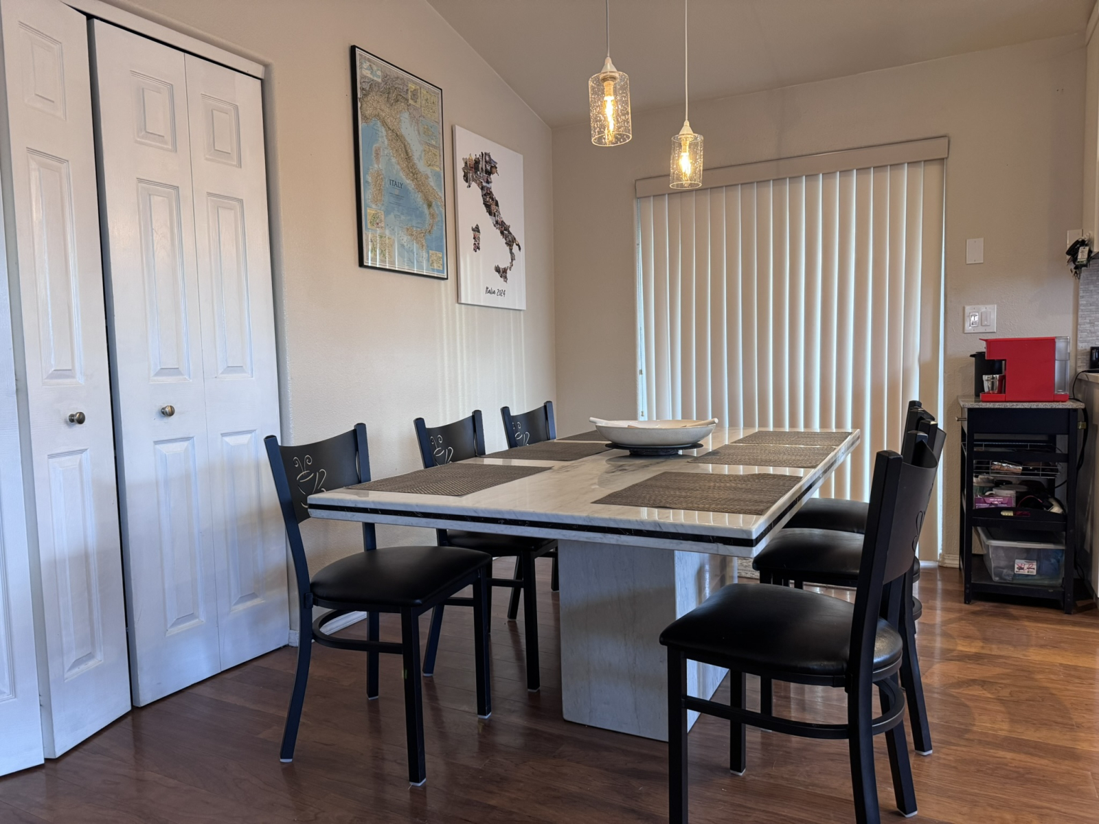 The living area now centers around a state-of-the-art **ductless efficient heating and cooling system** (replacing the original woodstove), providing quiet, energy-smart year-round comfort without the fuss of traditional setups—keeping things cozy in winter and refreshingly cool in summer. The kitchen shines with premium **Italian stainless steel appliances**, sleek new **cabinets** featuring modern contemporary styling and soft-close upgrades, plus elegant **Italian dining room table** and stunning **Italian countertops** that add a touch of sophisticated luxury and timeless appeal.