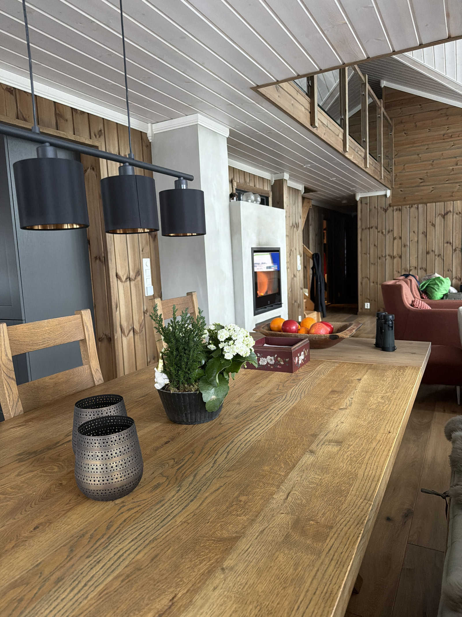 Hytten ligger på fjellet med fin utsikt i rolige omgivelser.