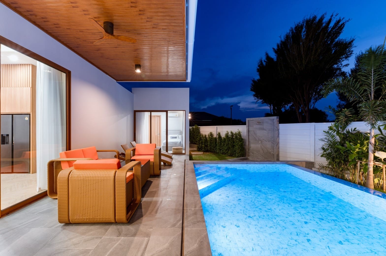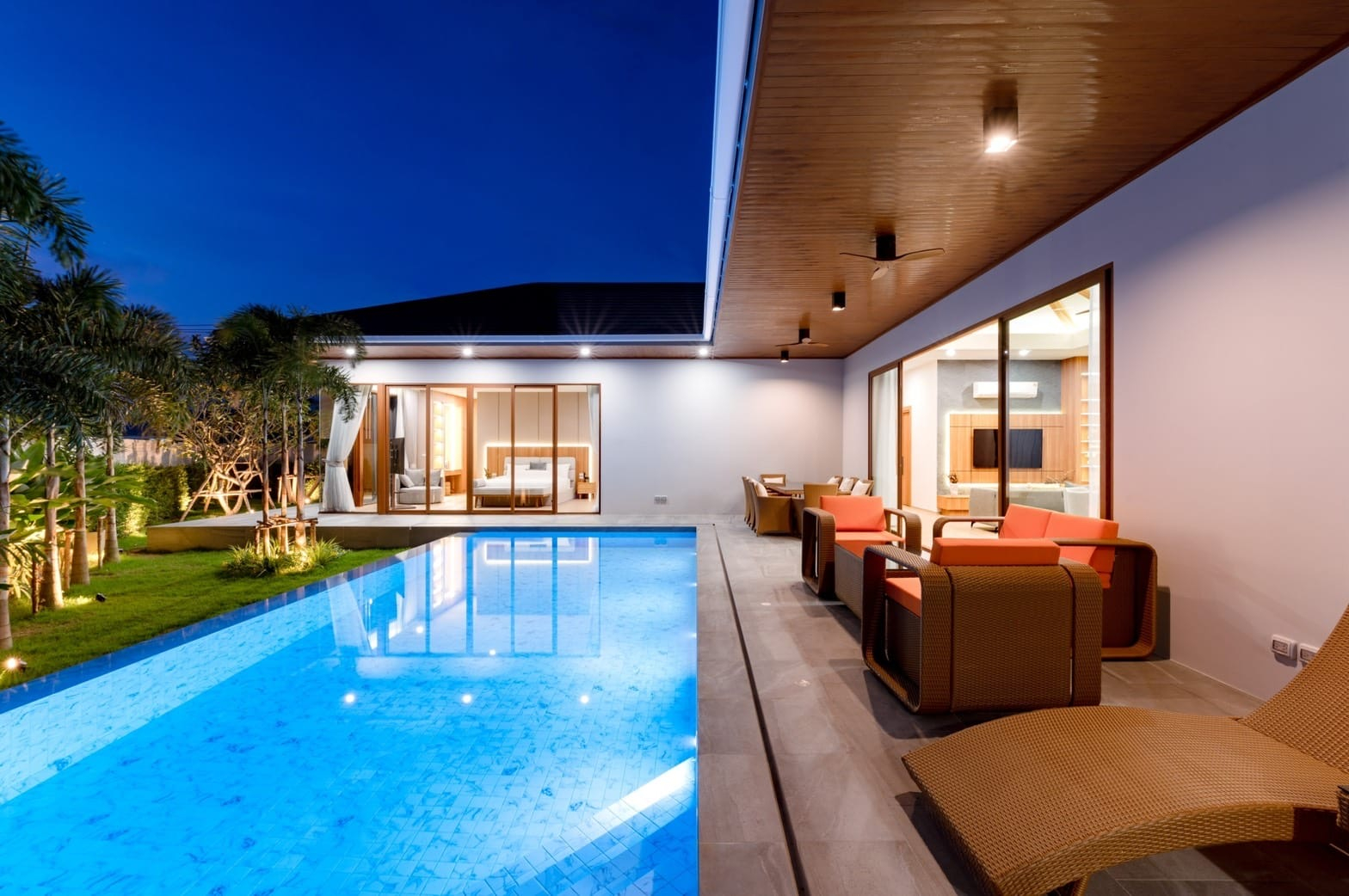 A brand-new luxury 4-bedroom / 4-bathroom villa in a wonderfully scenic location, within 8-mins of all the lifestyle requirements of Hua Hin.