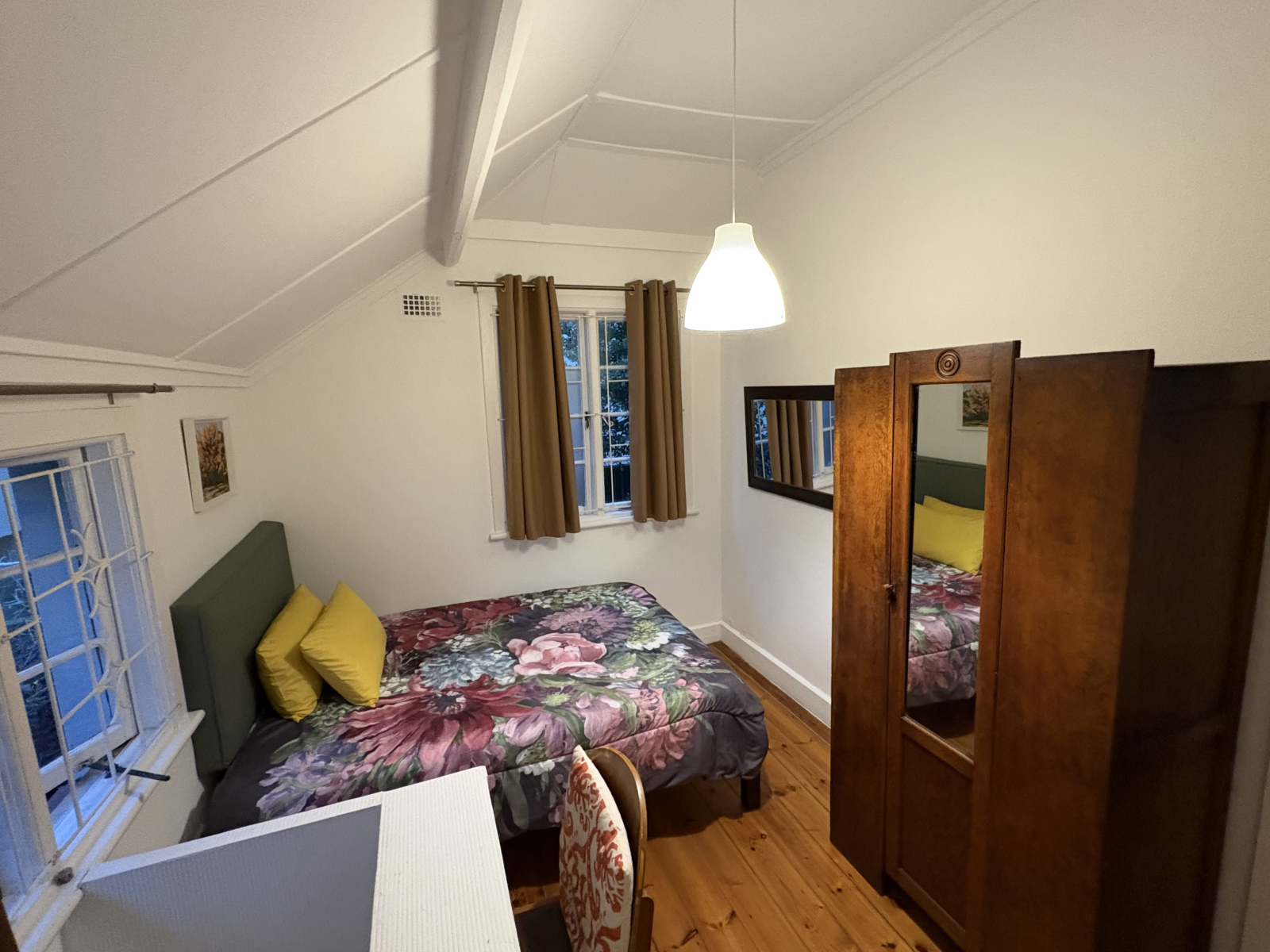 Two smaller bedrooms with single beds are connected through a flight of steps. The lower one is in the basement with direct garden access. It has an ensuite toilet. The bathroom has a walk in shower and a seperate toilet.