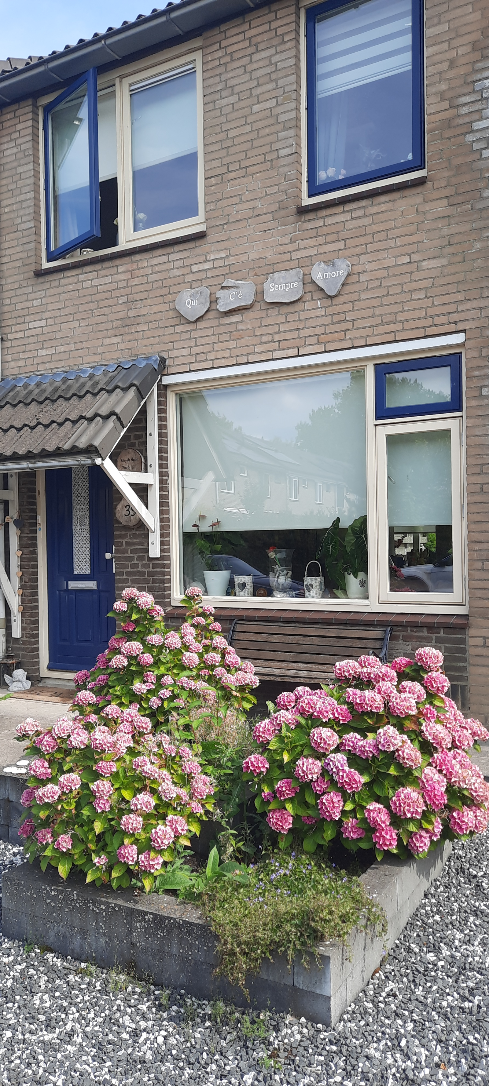 Qui c'è sempre amore. Es mi lema italiano: Aquí siempre hay amor. Eso es lo que representa mi hogar, mi familia, yo mismo: amor incondicional. Por lo tanto, mi hogar es siempre un espacio seguro y un refugio seguro para muchos amigos de mis hijos y mis propios amigos. Les gusta pasar el rato en nuestro jardín para relajarse, hablar o asar malvaviscos.