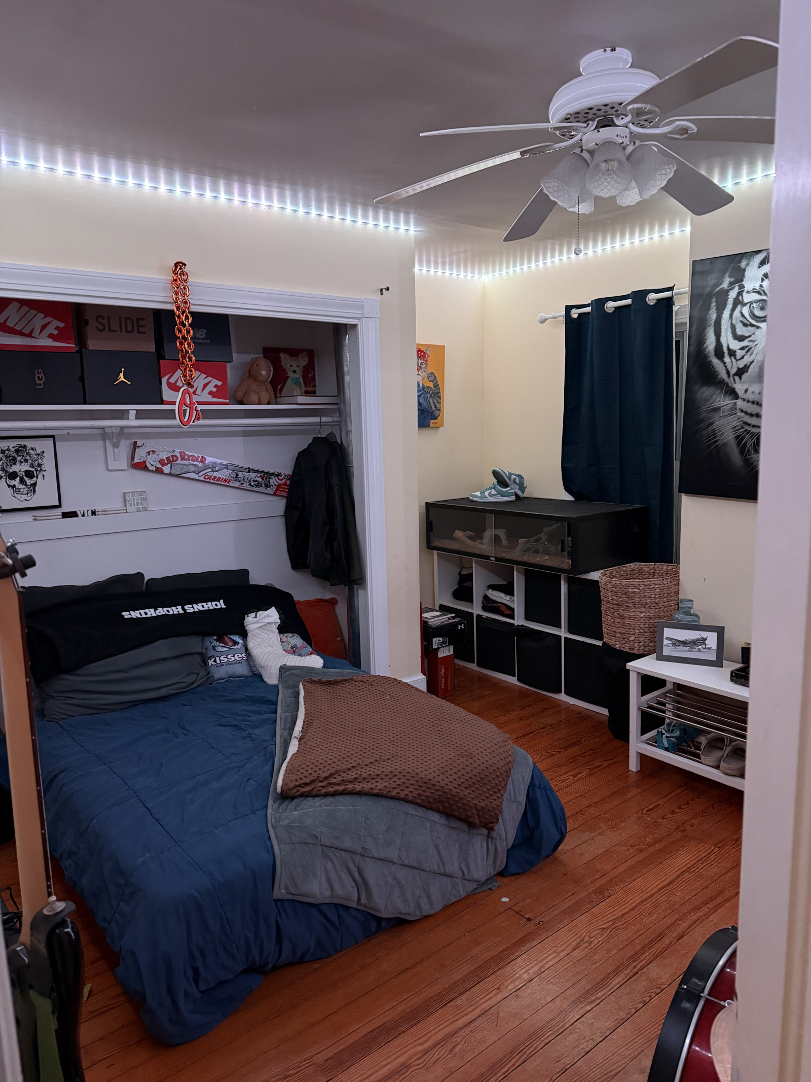 Tenemos dos hijos, de 9 y 13 años, y sus dormitorios tienen un tamaño similar (aproximadamente 160 pies cuadrados) y ambos tienen vistas al jardín.
