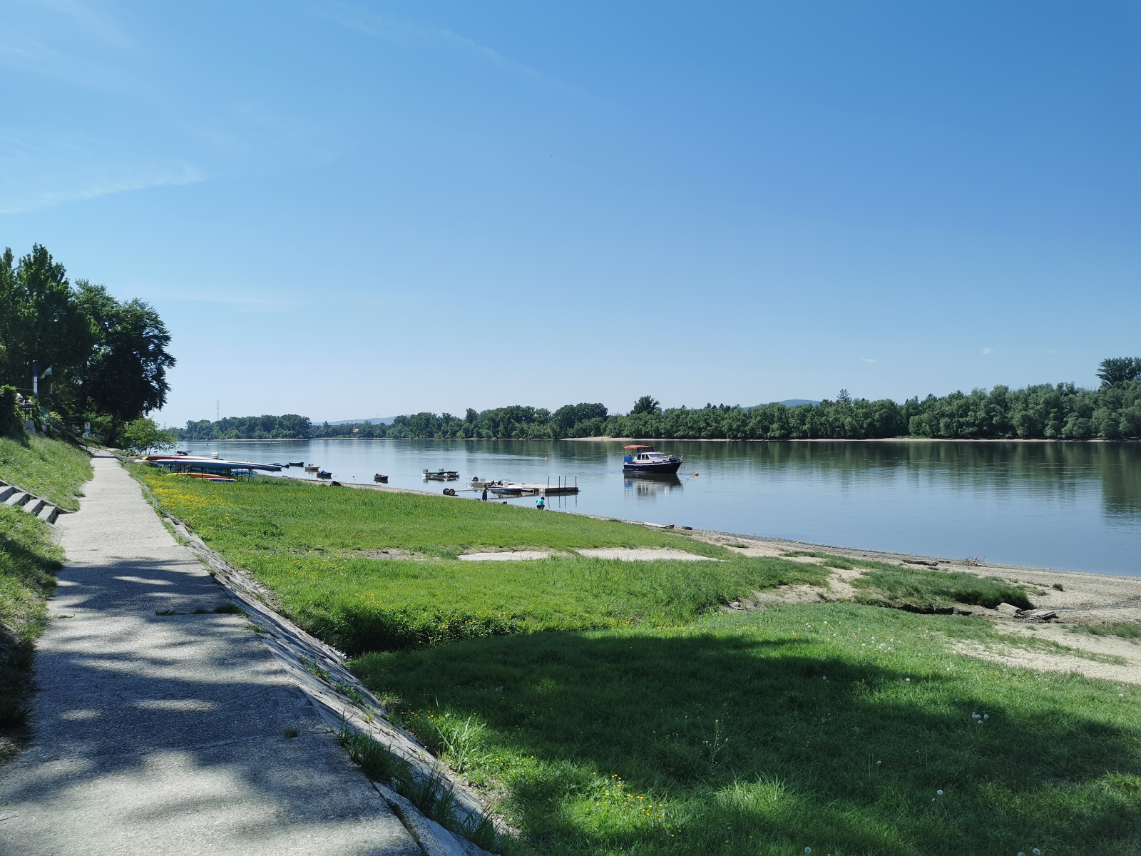 El tramo agradable más cercano del Danubio, con una pequeña playa abierta (vestuarios, duchas, baños), parque, parque infantil.