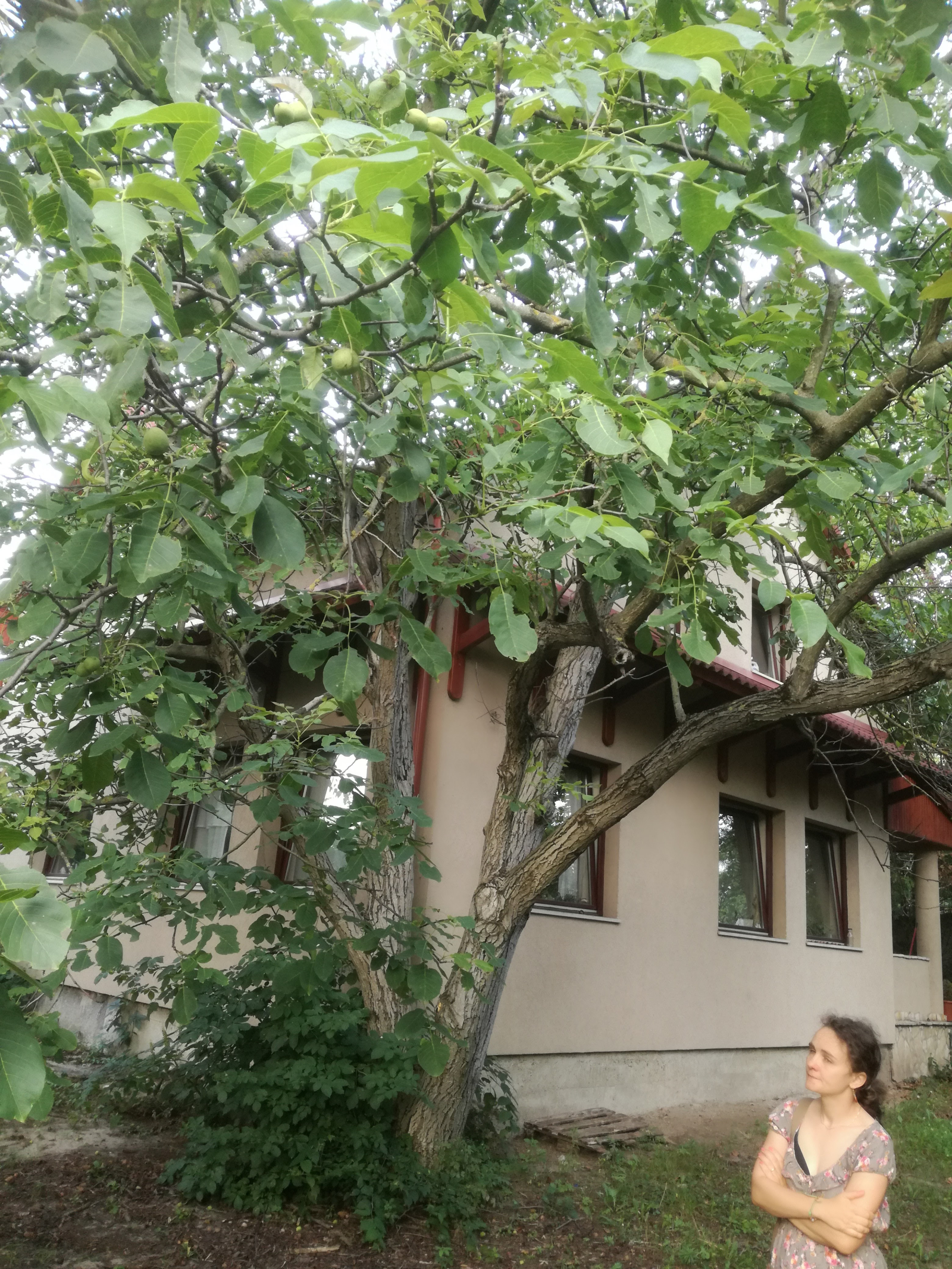 Nuestra gran terraza. Disponemos de dos tumbonas y puedes elegir sol o sombra bajo el nogal