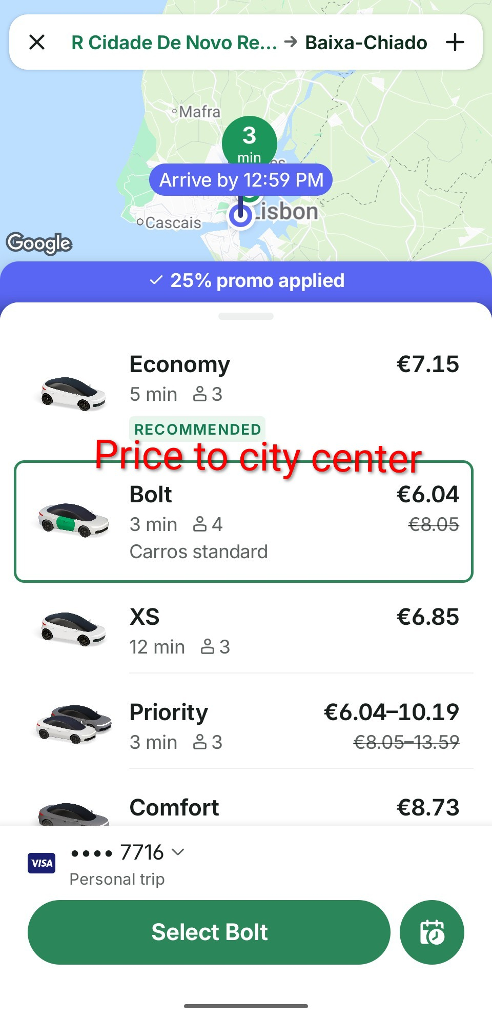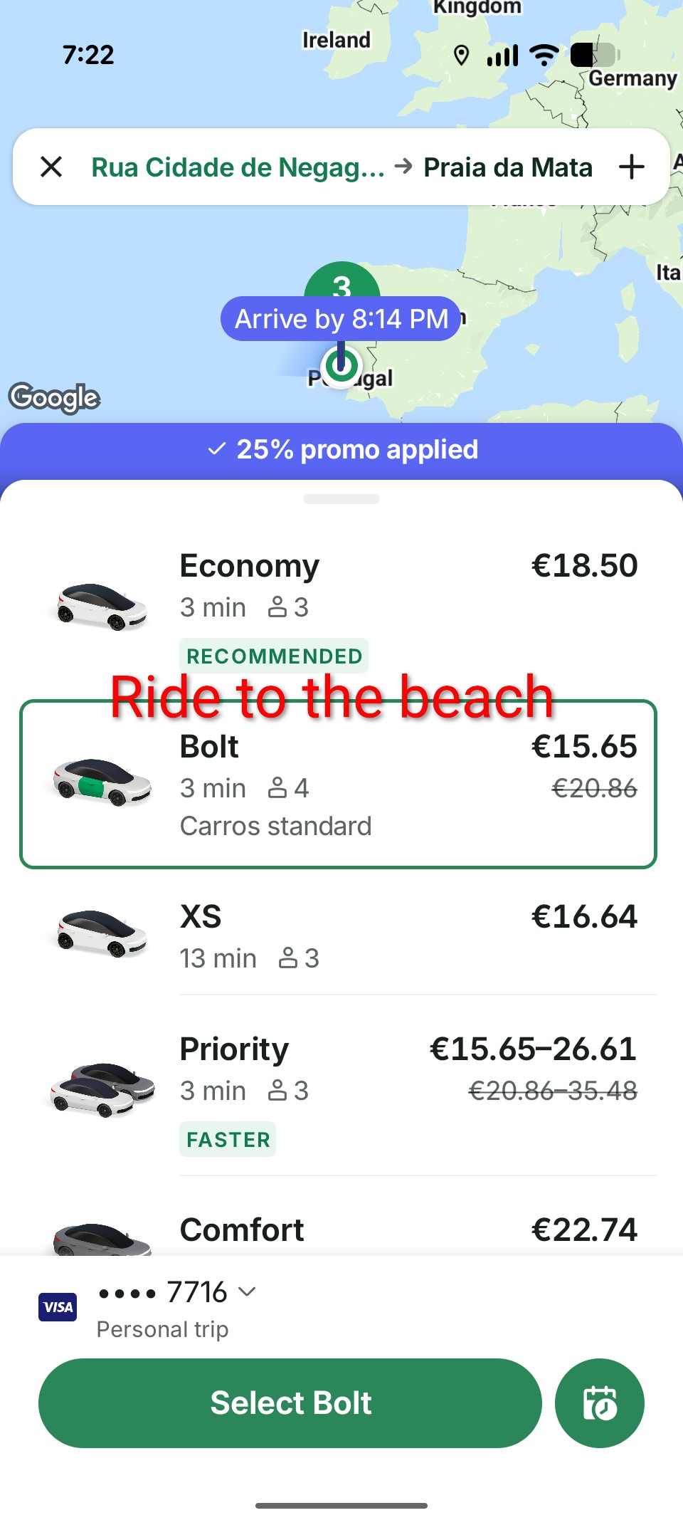 Puedes coger Uber + tren hacia Cascais o la playa de Carcavelos (1 hora en total).
