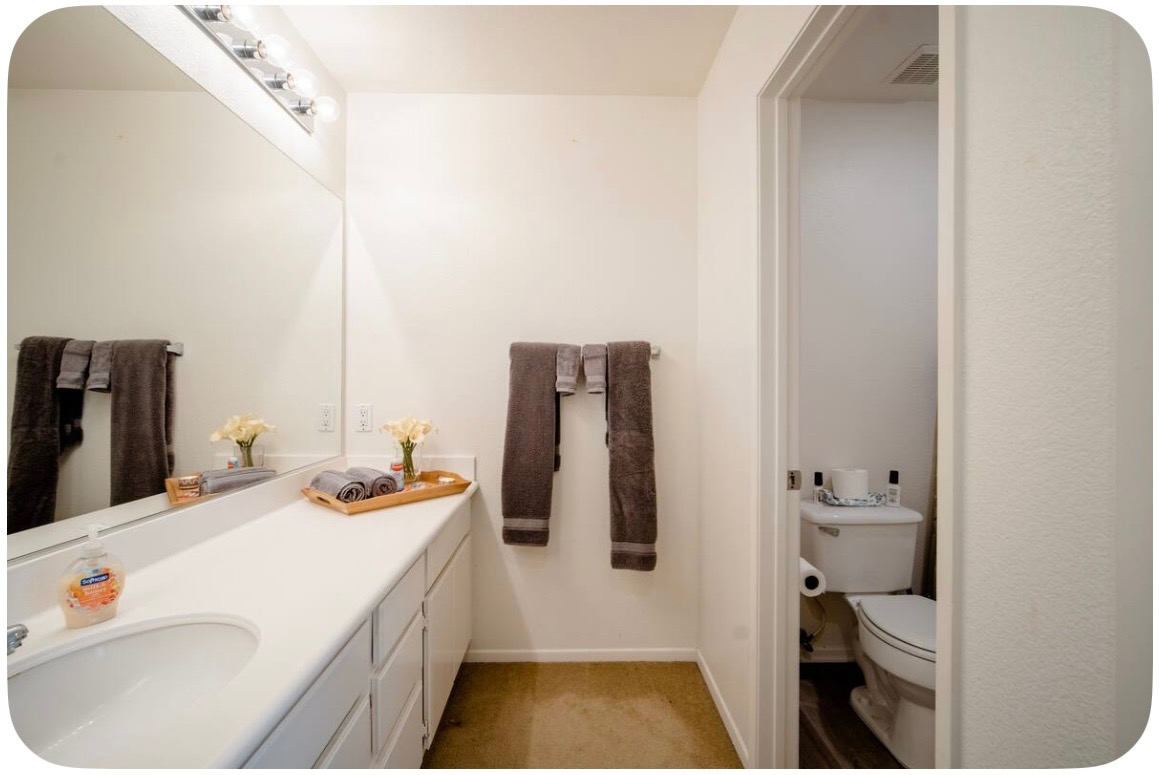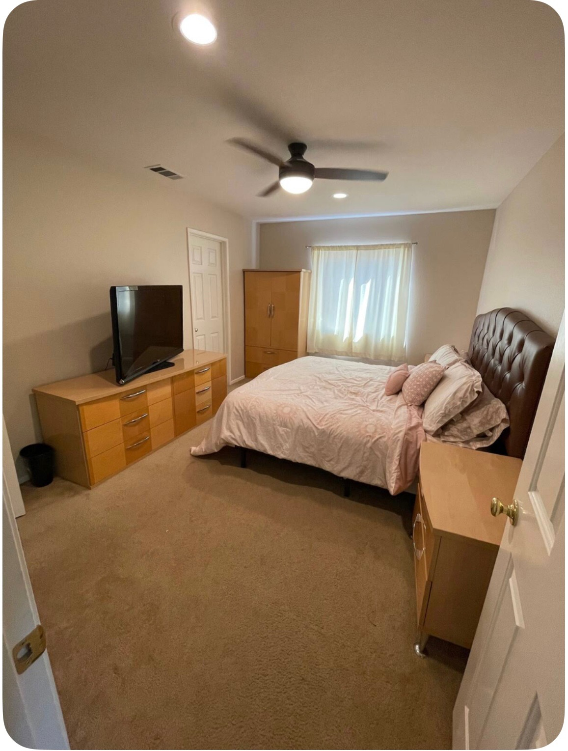 Tres dormitorios con oficina/gimnasio y 2 baños y medio. Casa de dos pisos. Con amplia cocina gourmet y techos abovedados. Enorme segundo salón en segunda planta que se convirtió en sala de juegos.