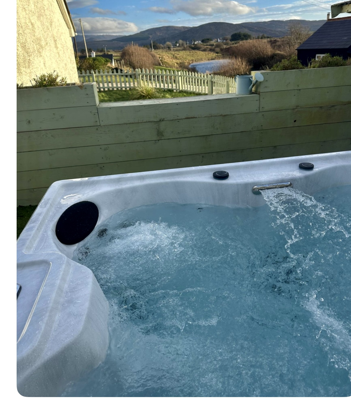 Si bien es una pintoresca cabaña tradicional irlandesa con fabulosas vistas sobre las colinas de Donegal y un lago, está equipada con todas las comodidades de la vida moderna, además de que hay una bañera de hidromasaje para relajarse al final de un día explorando la Ruta Costera del Atlántico.