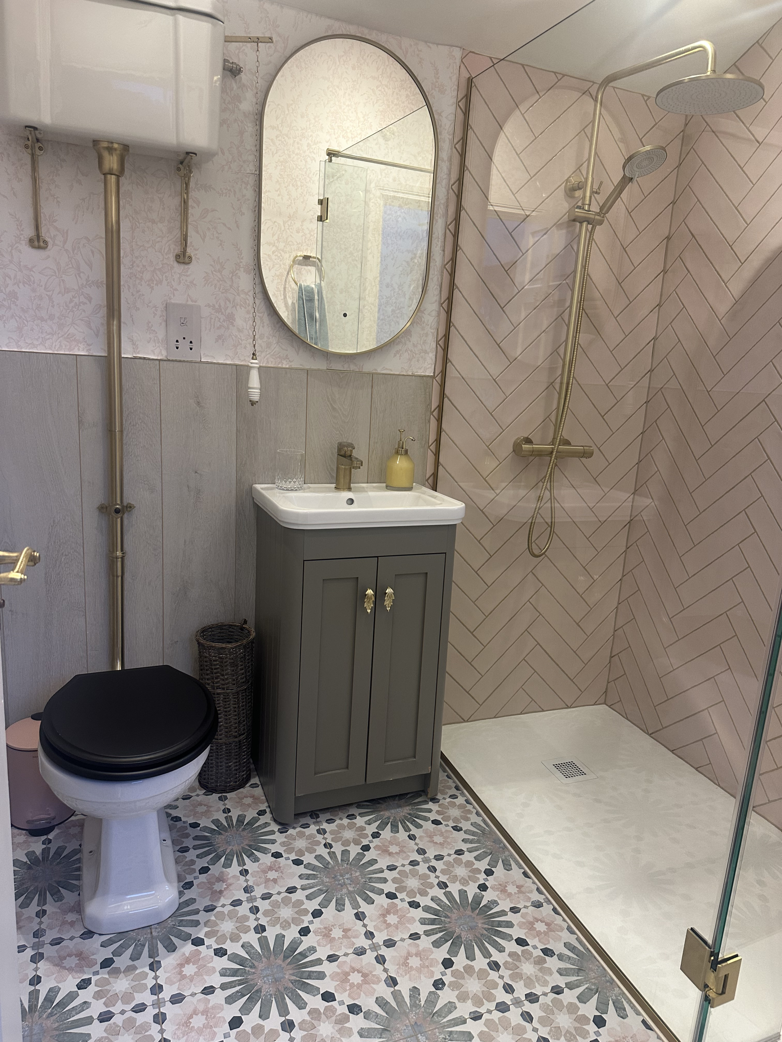 La cabaña es de más de una planta, aunque la cocina y el baño están en un nivel ligeramente más alto, subiendo un par de escalones. Hay calefacción central de gasoil y una estufa de leña para pasar la noche. Tenemos una cama king size en el dormitorio principal y 2 literas en el pequeño segundo dormitorio. Hay una bañera y una ducha (encima de la bañera) y la cocina tiene todo lo necesario para una estancia cómoda.