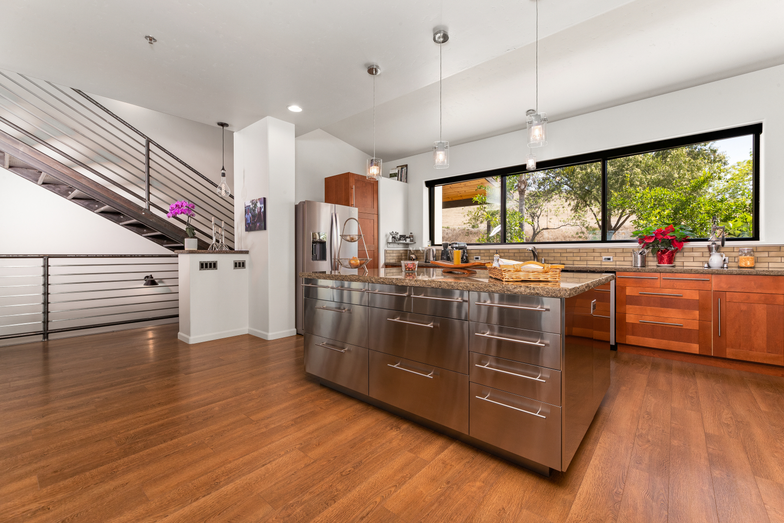 Nuestra casa es una casa moderna contemporánea de 3 pisos con un sótano completo que tiene un cine en casa con capacidad para 10 personas. Tenemos excelentes vistas, enclavados en las estribaciones de Sierra Nevada y rodeados de plantaciones de cítricos, frutales y nueces. Estamos a cinco a 20 minutos de excelentes opciones de restaurantes y experiencias culturales; el patio consta de 6 acres totalmente ajardinados, incluyendo una cancha de pickleball al aire libre iluminada, un estanque con algunos patos y una piscina. Tenemos un viaje de 35 minutos hasta la entrada en el Parque Nacional Sequoia, a 2 horas y 15 minutos de Yosemite y a 2 horas de las ciudades costeras del centro de California junto al Océano Pacífico. Nuestra casa es de 5000 pies cuadrados, abierta y luminosa. El aeropuerto más cercano es el de Fresno, también usamos LAX y San Francisco.