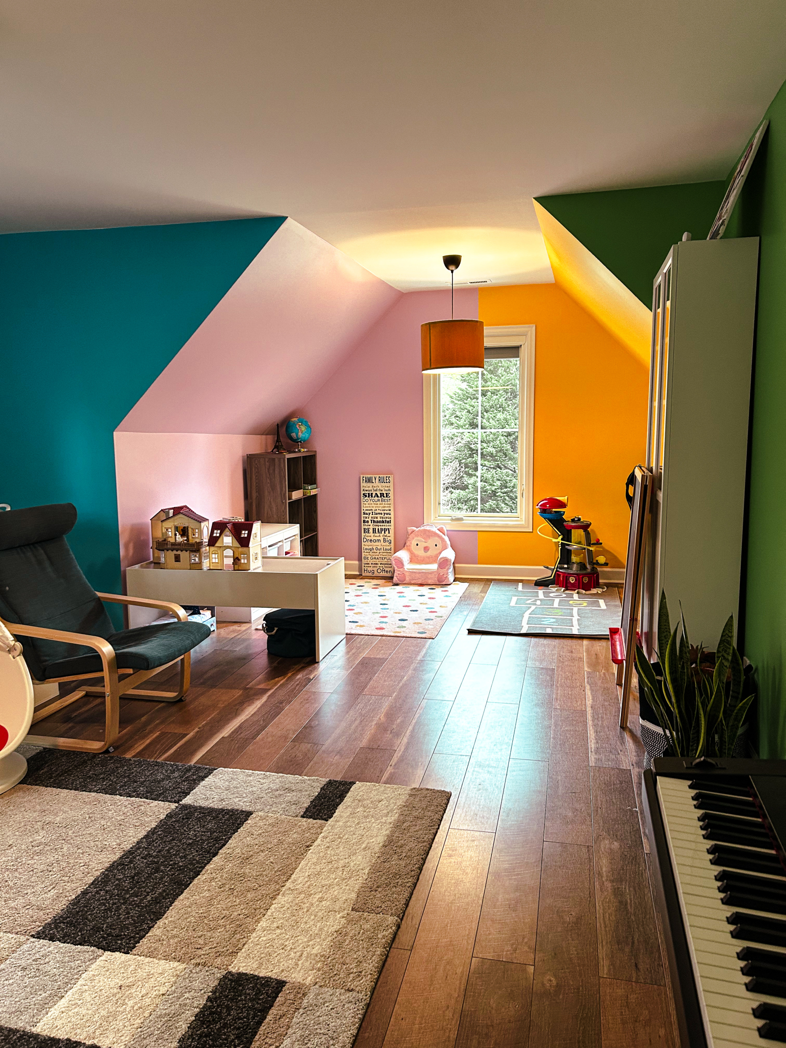 - Dormitorio de niños #1: Dormitorio muy grande compartido por dos niños. Este es un dormitorio muy colorido, de ensueño para niños. Cuenta con una litera con cómodos colchones completos, 2 escritorios, una zona de juegos y un piano.