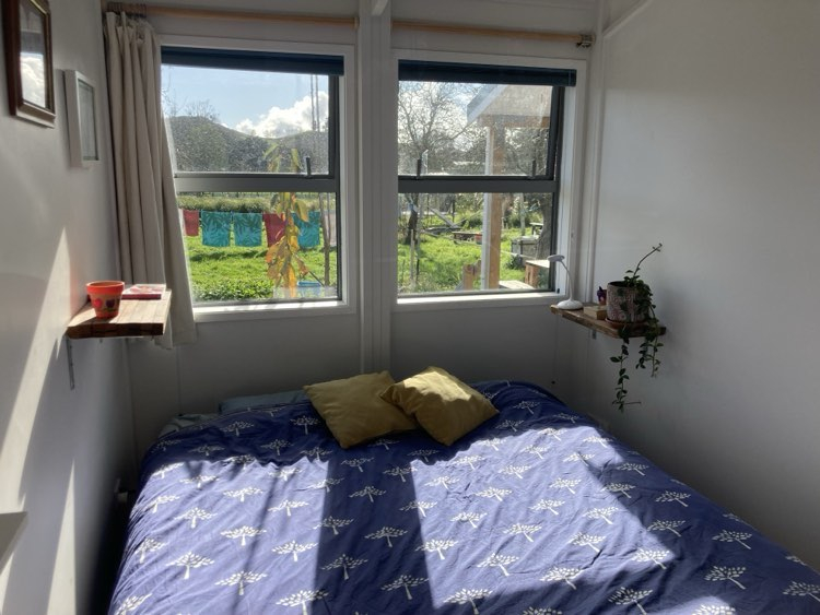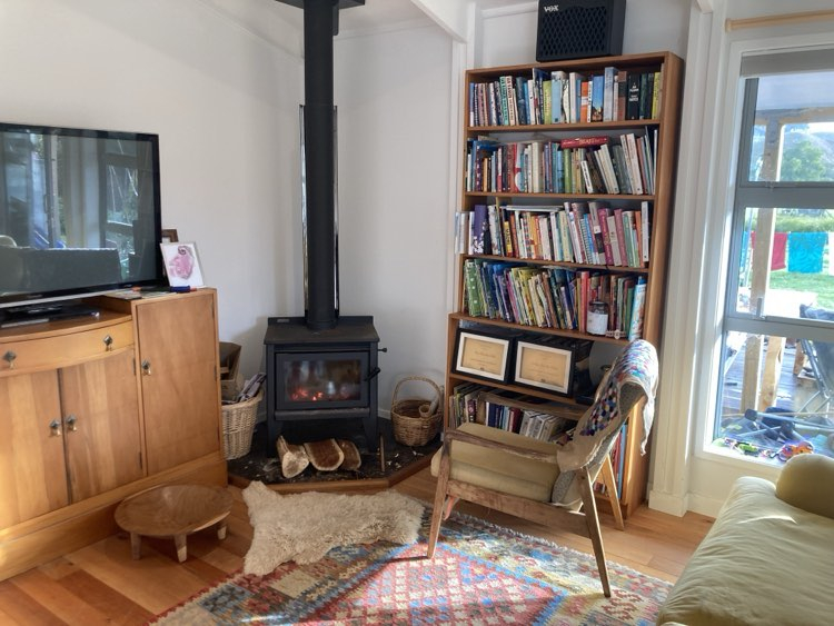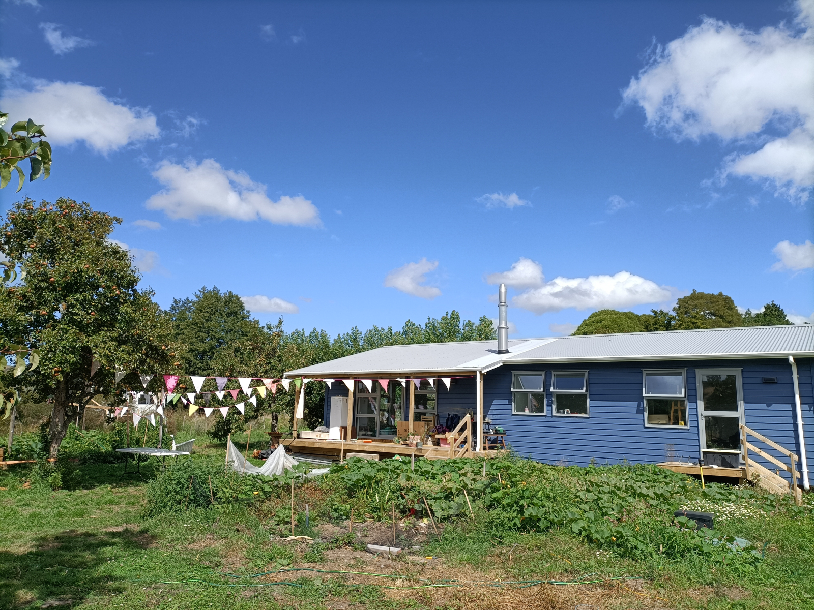 Vivimos a 8 km del centro de Whanganui, en lo que los kiwis llaman un "bloque de estilo de vida", que es un gran trozo de tierra donde se pueden cultivar alimentos. (Hacienda/minifundio) Tiene aproximadamente media hectárea o poco más de un acre. Tenemos muchos árboles frutales y huertos. Hay hermosas vistas a las colinas. Nuestra casa fue construida en 2023 y es cálida, acogedora y tiene mucha luz natural. Hay algunas características artísticas extravagantes que mi esposo ha puesto.