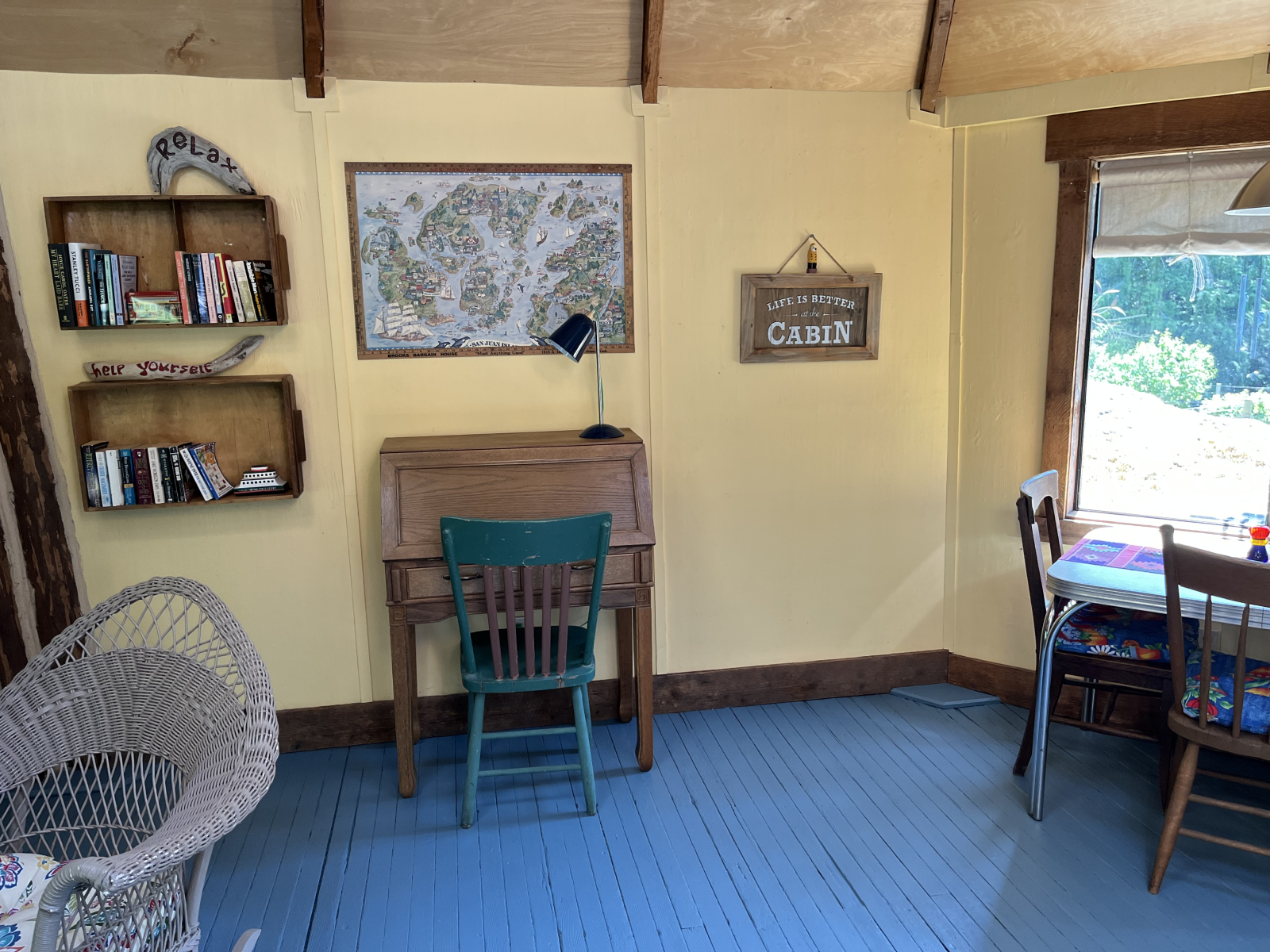 Nuestra acogedora cabaña está encaramada en la cima de un lecho rocoso soleado y musgoso en el medio de la isla López, rodeada de 10 acres aislados y a 1/4 de milla en automóvil a través de un bosque de helechos, cedros y abetos. Se encuentra al pie de Lopez Hill con senderos públicos muy bien mantenidos a los que se puede acceder por nuestro sendero privado y nuestra casa personal está adyacente a la cabaña. La isla López se encuentra a 40 minutos en ferry desde Anacortes, WA, donde a menudo se ven ballenas y focas. Si está buscando un ambiente tranquilo sin contaminación lumínica, aire fresco increíble y solo el sonido de búhos y ranas por la noche, entonces probablemente se enamorará de la mágica López. Es fácil viajar en ferry para excursiones de un día a las otras islas de San Juan (Orcas, Shaw, San Juan)