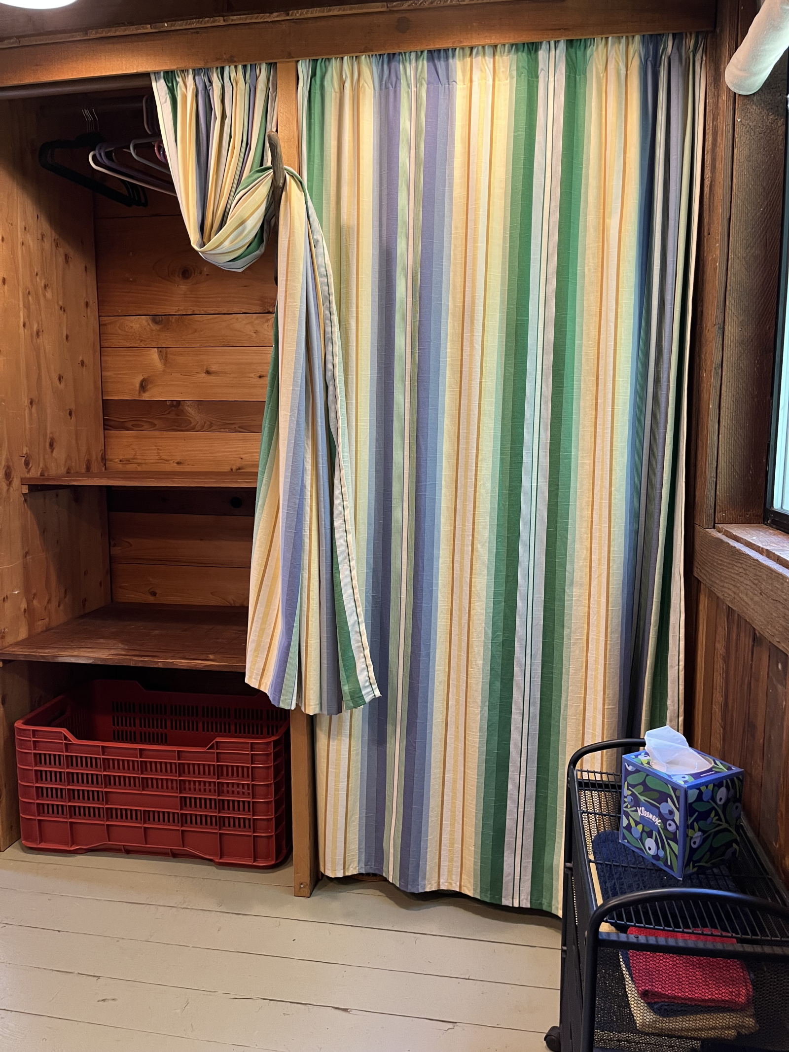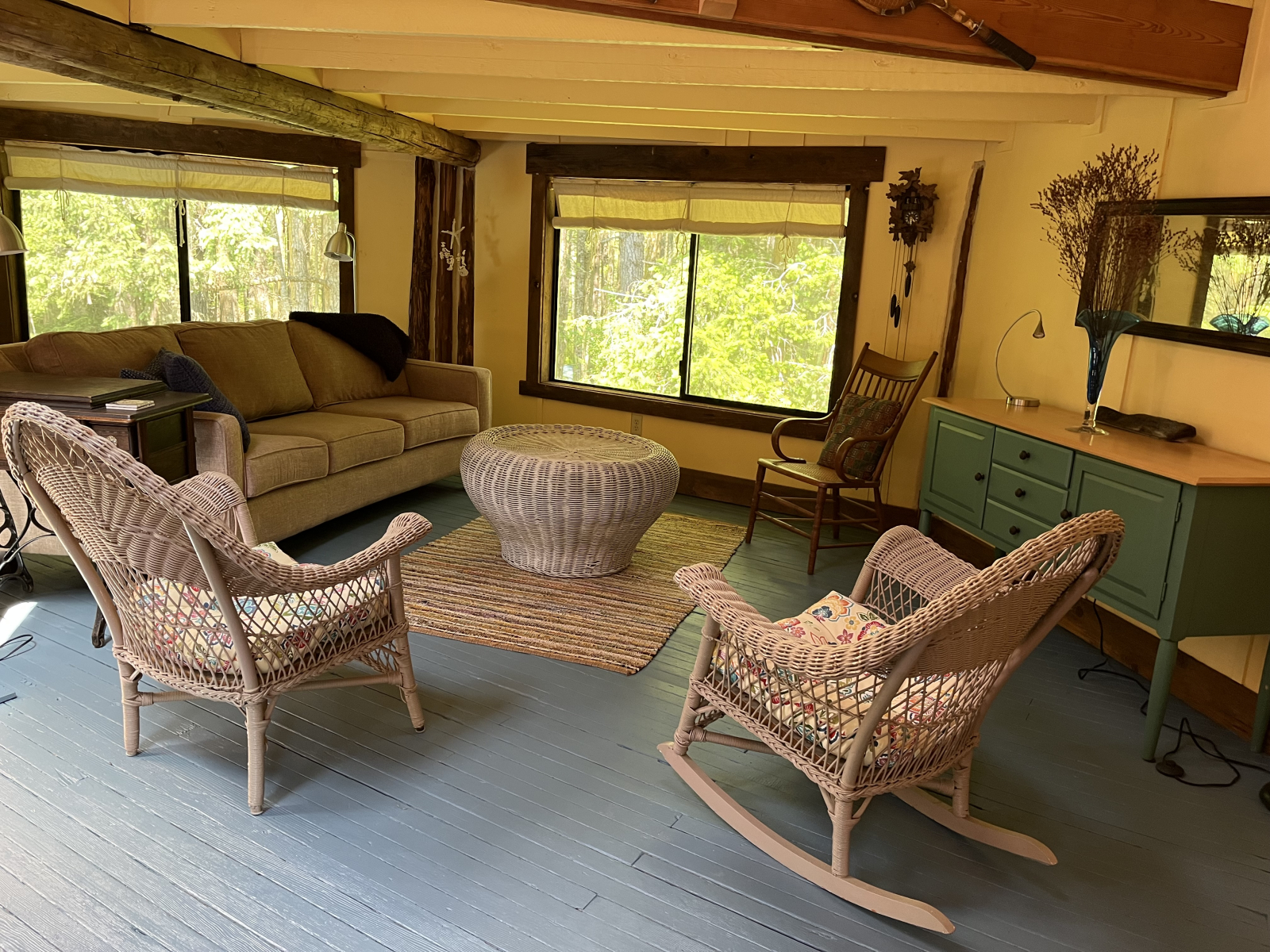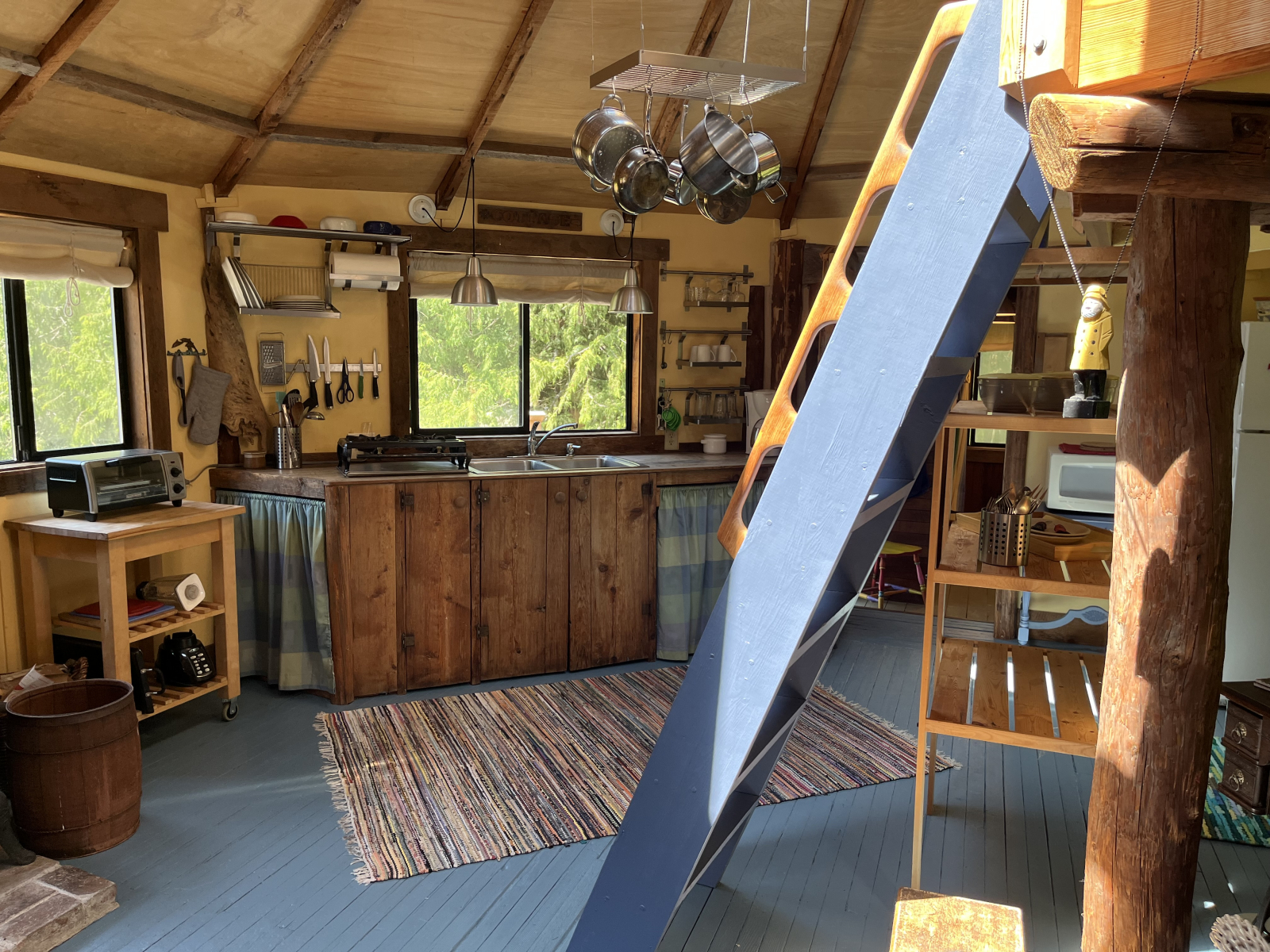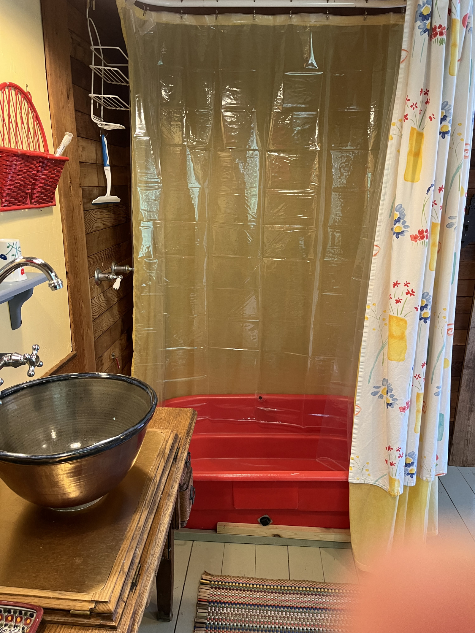 Pasamos muchos meses demoliendo algunas partes de la cabaña y rehaciendo otras partes y reutilizando la madera que originalmente se fresaba aquí mismo en la propiedad. El espacio es el resultado de nuestra creatividad combinada. Cuenta con un inodoro de compostaje, un comedero para la bañera y una cama tamaño queen en un desván de dos tragaluces.