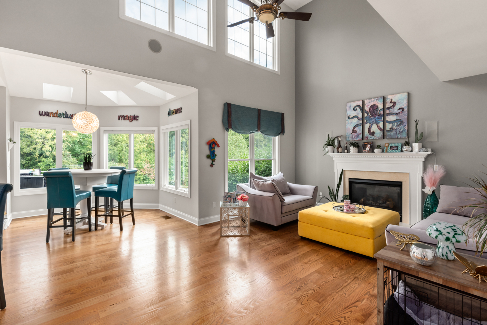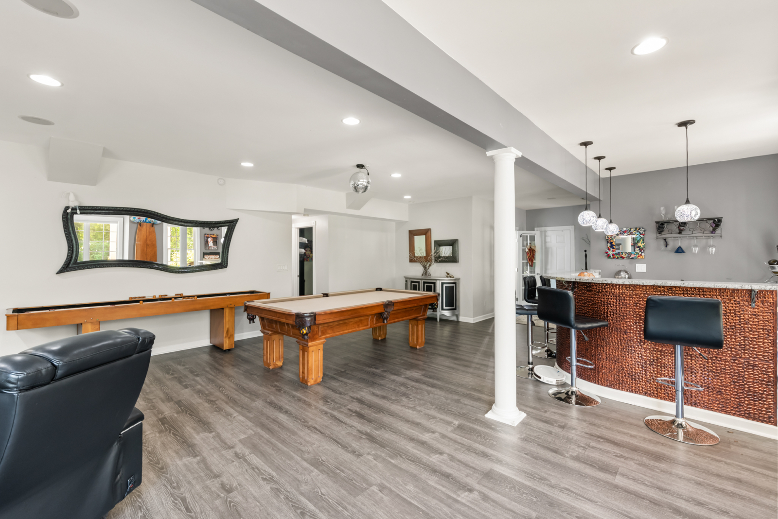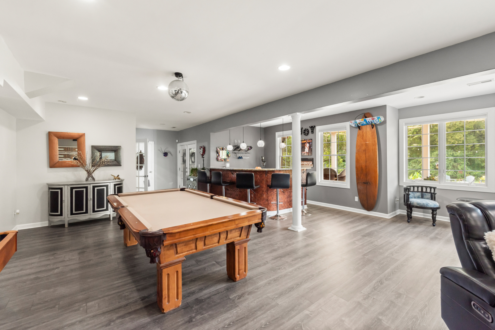 Este es nuestro hogar de tiempo completo. Somos conscientes del medio ambiente, por lo que no se rocían productos químicos en nuestro césped o macizos de flores. Nuestra cocina está equipada con cubiertos de alta gama y utensilios de cocina antiadherentes libres de productos químicos agresivos. Nuestro garaje está equipado con scooters eléctricos de largo alcance (3) y bicicletas eléctricas de montaña (2) Hay 2 baños completos en la planta superior con 4 dormitorios y un tocador en el nivel principal con cocina, comedor, vestíbulo, sala de estar y sala de piano. ¡El sótano está configurado para entretener! Tiene un baño completo, bar, tejo, mesa de billar y una peluquería y sala de esteticista donde mi hija y yo a veces volvemos a casa. Todos nuestros televisores son inteligentes y están equipados con todos los canales de transmisión que tienen para ofrecer.