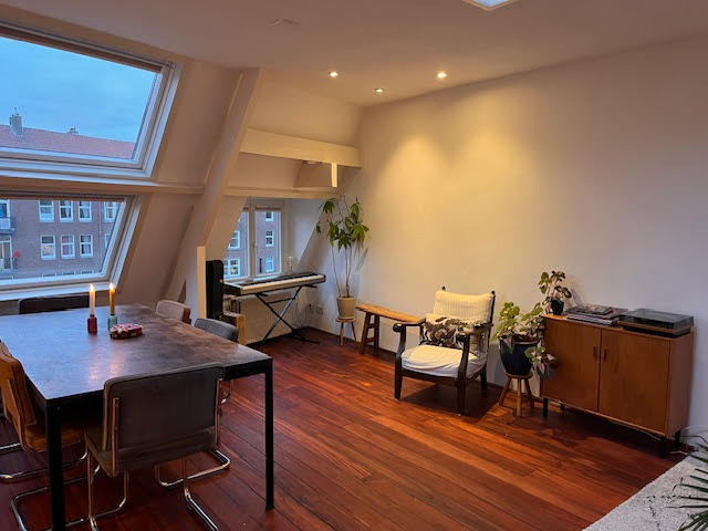 Atractivo apartamento en la planta superior en un barrio popular de Ámsterdam. Cerca de tiendas, restaurantes y cafeterías. El Vondelpark se encuentra a 15 minutos a pie.