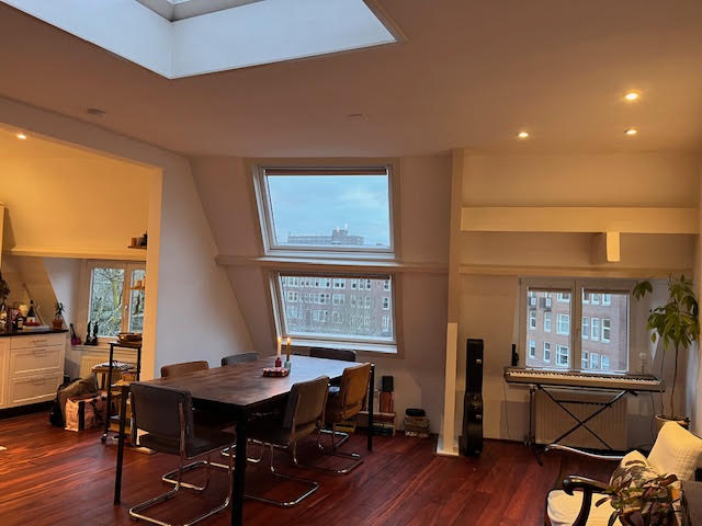 Tengo un precioso apartamento en el piso de arriba. Amplia y luminosa, con 2 dormitorios con balcón y una casita en la azotea con sofá cama. Y.. ¡Una gran terraza en la azotea! La casa es antigua, no todo funciona a la perfección, pero tiene ambiente y disfrutarás de las vistas lejanas. Único para Ámsterdam.