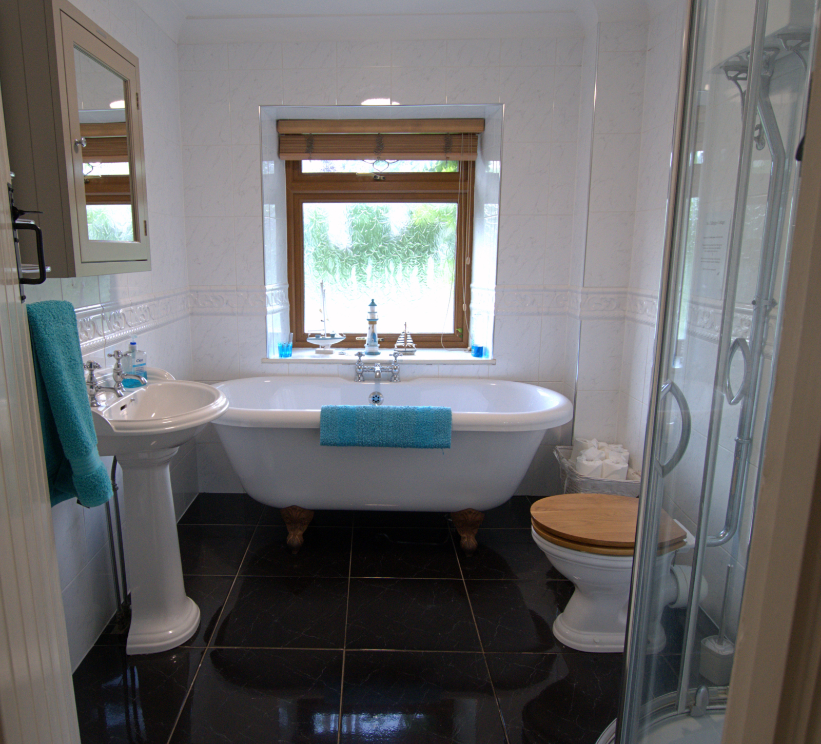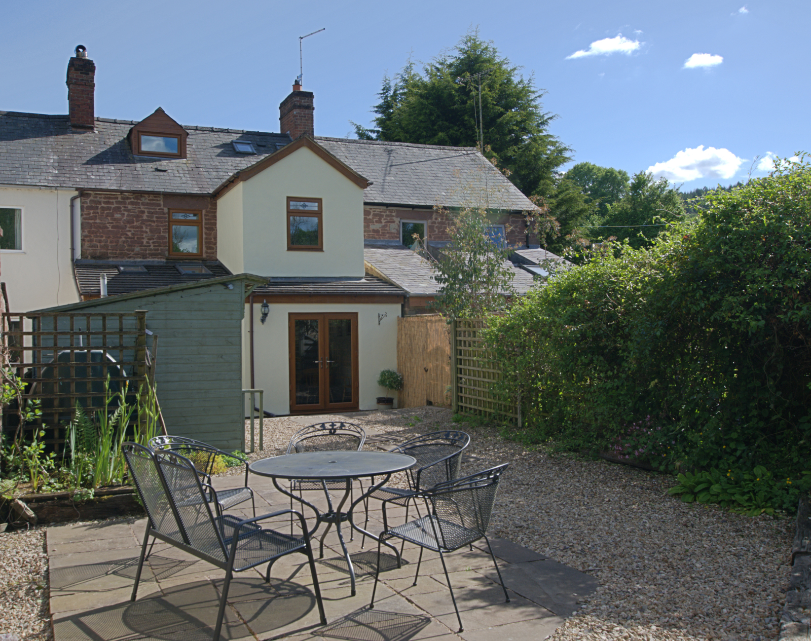 El espacioso jardín trasero, equipado con mesa y sillas y una casa de verano, ofrece la oportunidad de observar y escuchar a las numerosas aves visitantes (desde pequeños herrerillos azules hasta pájaros carpinteros de vientre rojo), mientras disfruta de las vistas de los campos y bosques circundantes. El gran cobertizo de jardín se puede utilizar para guardar de forma segura bicicletas de montaña, etc. si es necesario. El jardín está vallado de forma segura, por lo que admite perros.