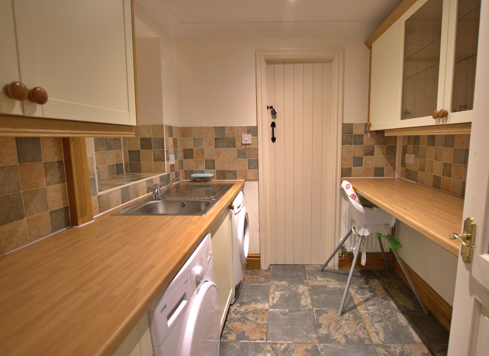 La cocina incluye todos los elementos esenciales para cocinar, como una placa eléctrica, horno, nevera / congelador, microondas, tostadora y hervidor de agua. También tendrá acceso completo al lavadero, que incluye una lavadora y una secadora.
