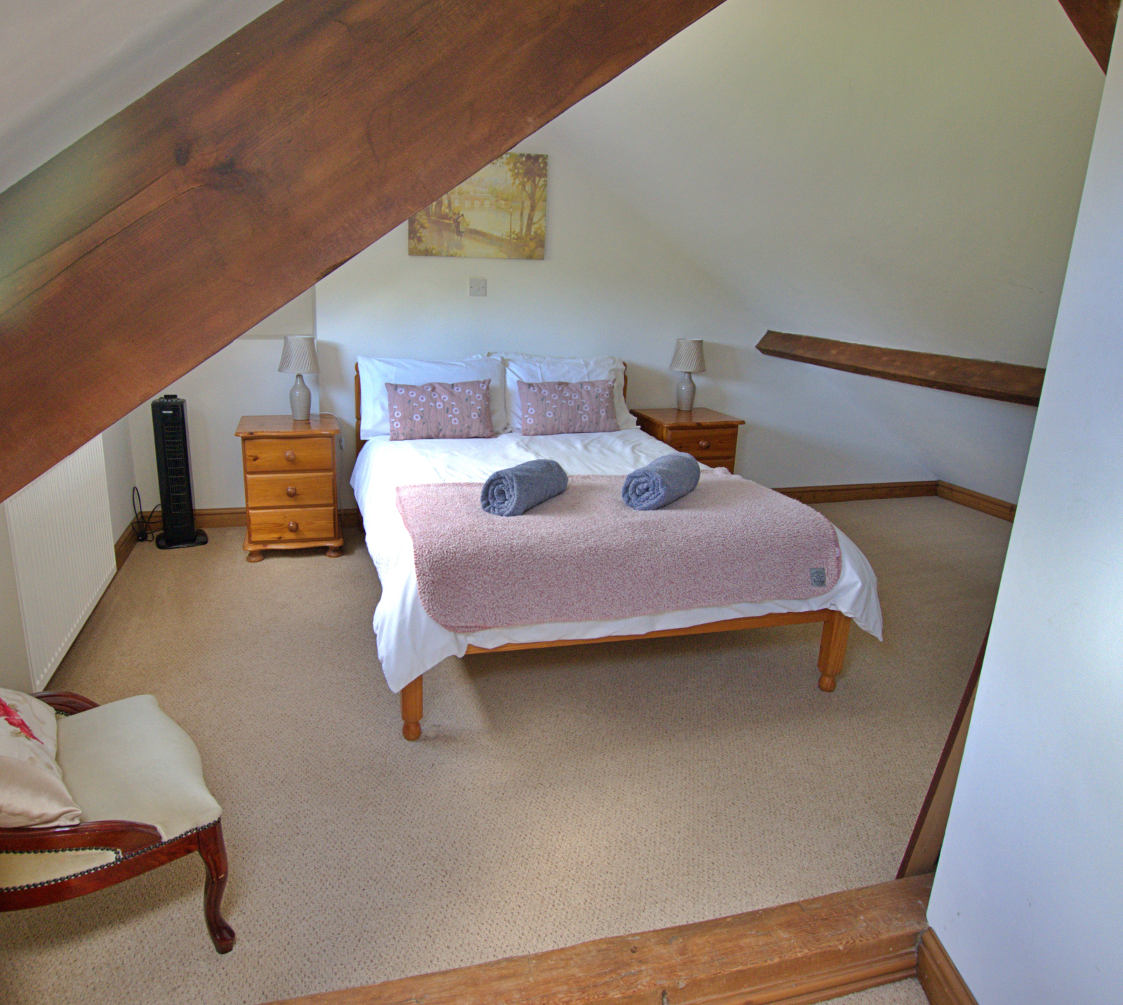 La 2ª planta incluye 1 dormitorio doble, 1 habitación con dos camas individuales, 1 habitación individual y el gran baño familiar (con bañera independiente y ducha separada). El ático tiene otra habitación doble con cuarto de baño con ducha, que ofrece las mejores vistas de los alrededores.