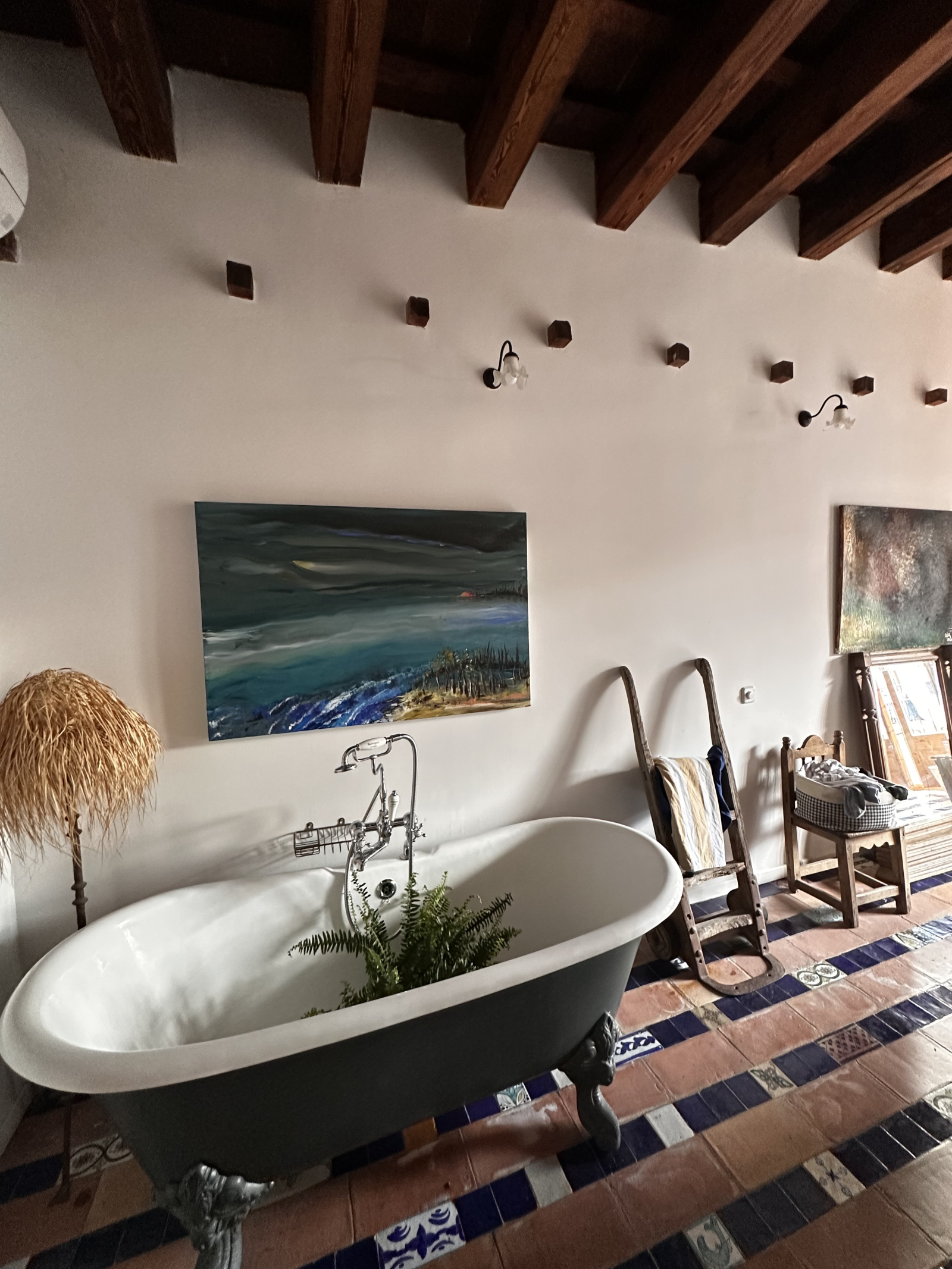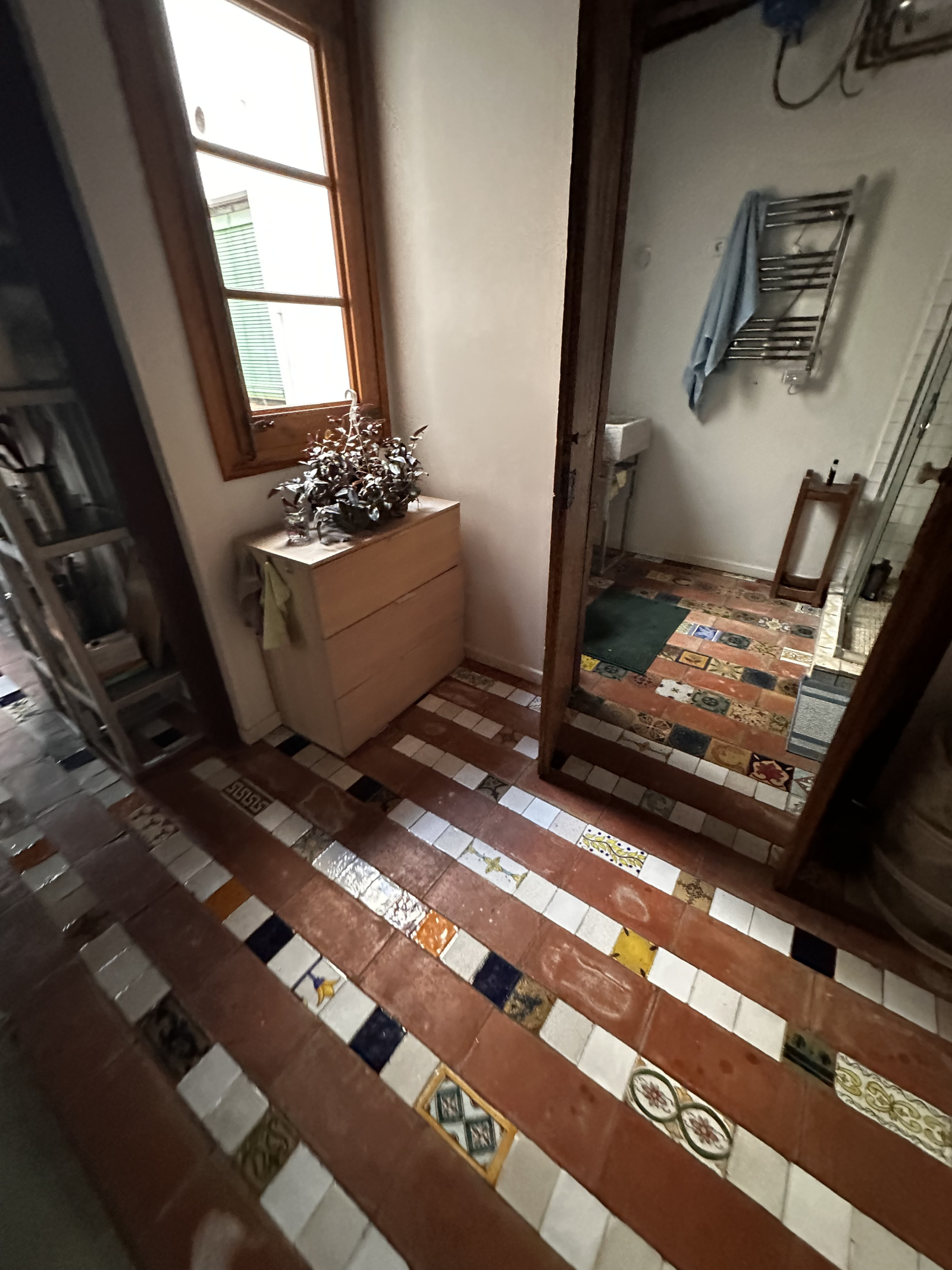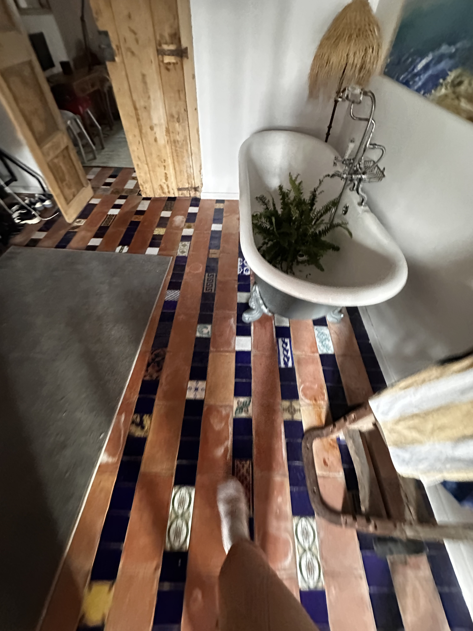 El apartamento incluye una amplia sala de estar y comedor con techos altos y luz natural, un acogedor dormitorio, un baño de estilo vintage, un dormitorio con bañera independiente y una cocina abierta totalmente equipada. El suelo está cubierto con baldosas artesanales hechas a mano, y el mobiliario es una mezcla de piezas antiguas y encanto bohemio. Es un lugar cálido y conmovedor lleno de libros, arte y texturas.