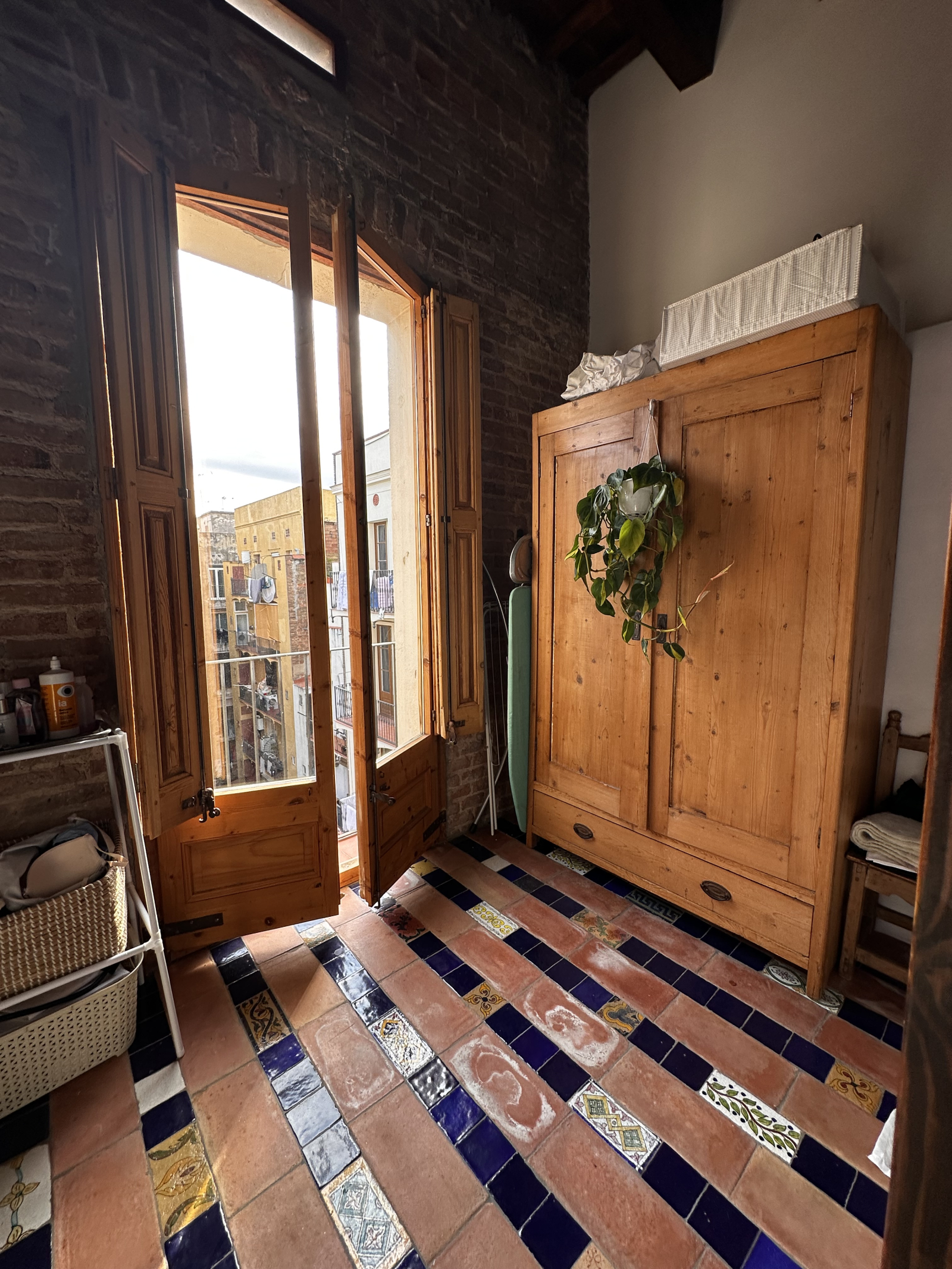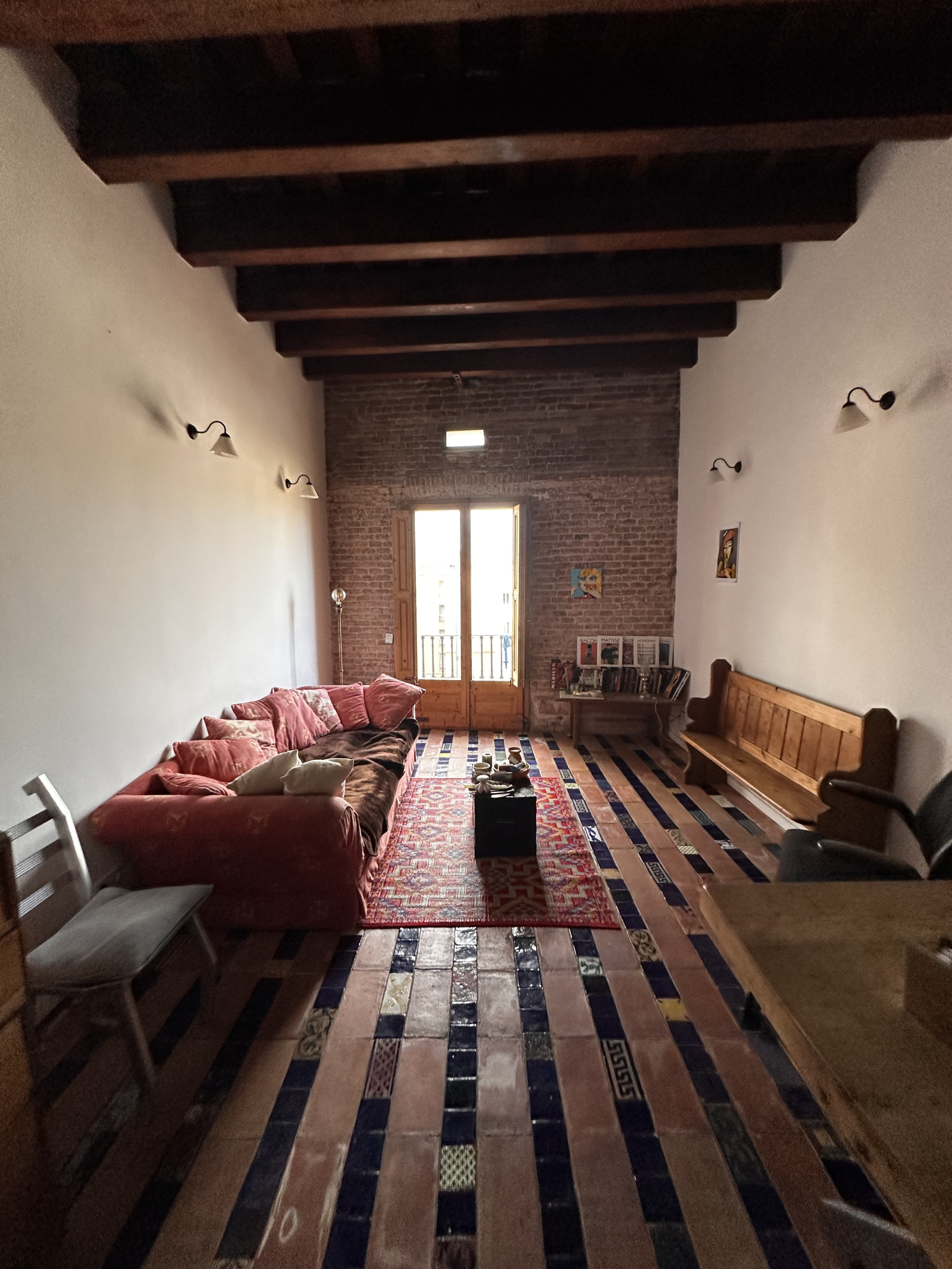 Nuestra casa es un apartamento encantador y lleno de carácter ubicado al comienzo de la calle Joaquín Costa, uno de los rincones más vibrantes y auténticos del centro de Barcelona. Ubicado entre el Barrio Gótico y el Raval, se trata de una zona creativa, multicultural e histórica con un fuerte ambiente local. El piso tiene toques artísticos, muebles antiguos, suelos de baldosas de colores y techos con vigas de madera, una experiencia verdaderamente única en Barcelona.