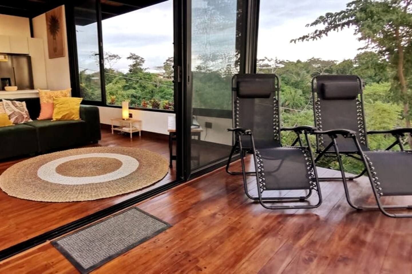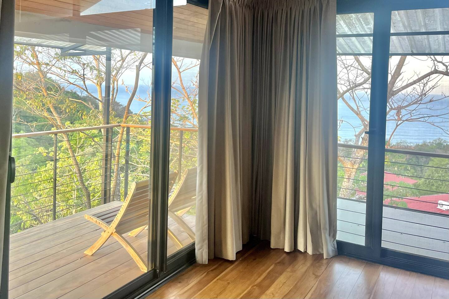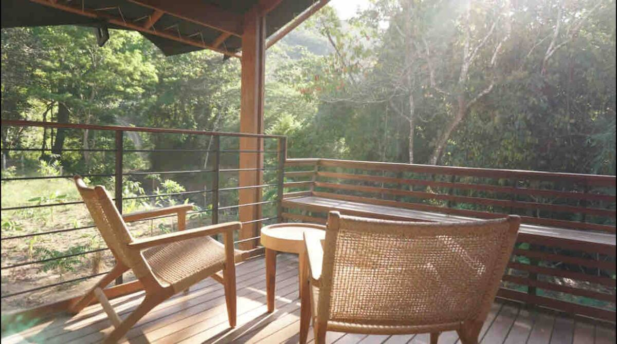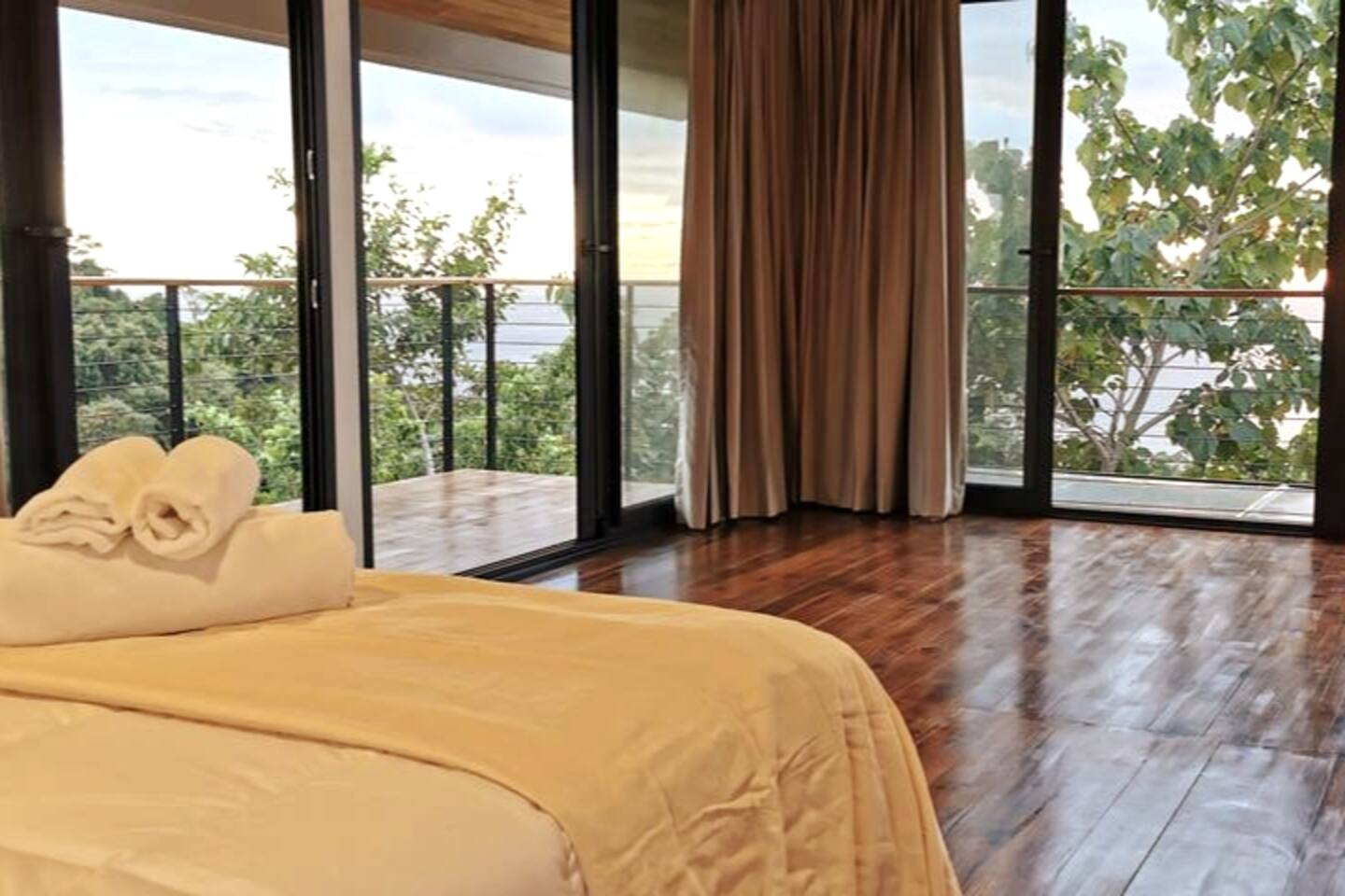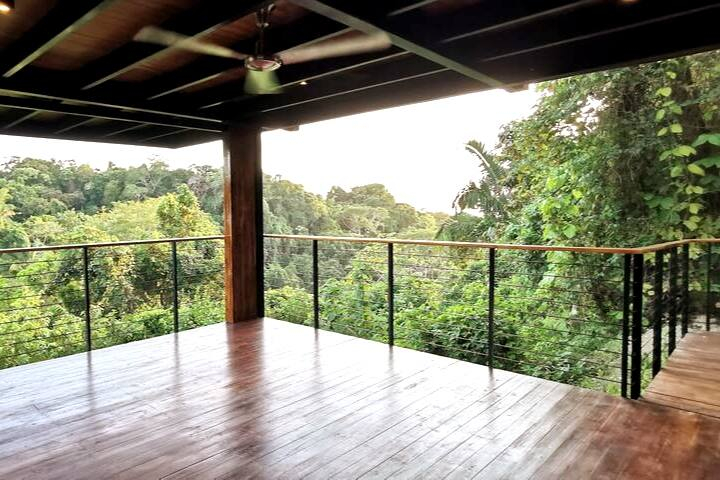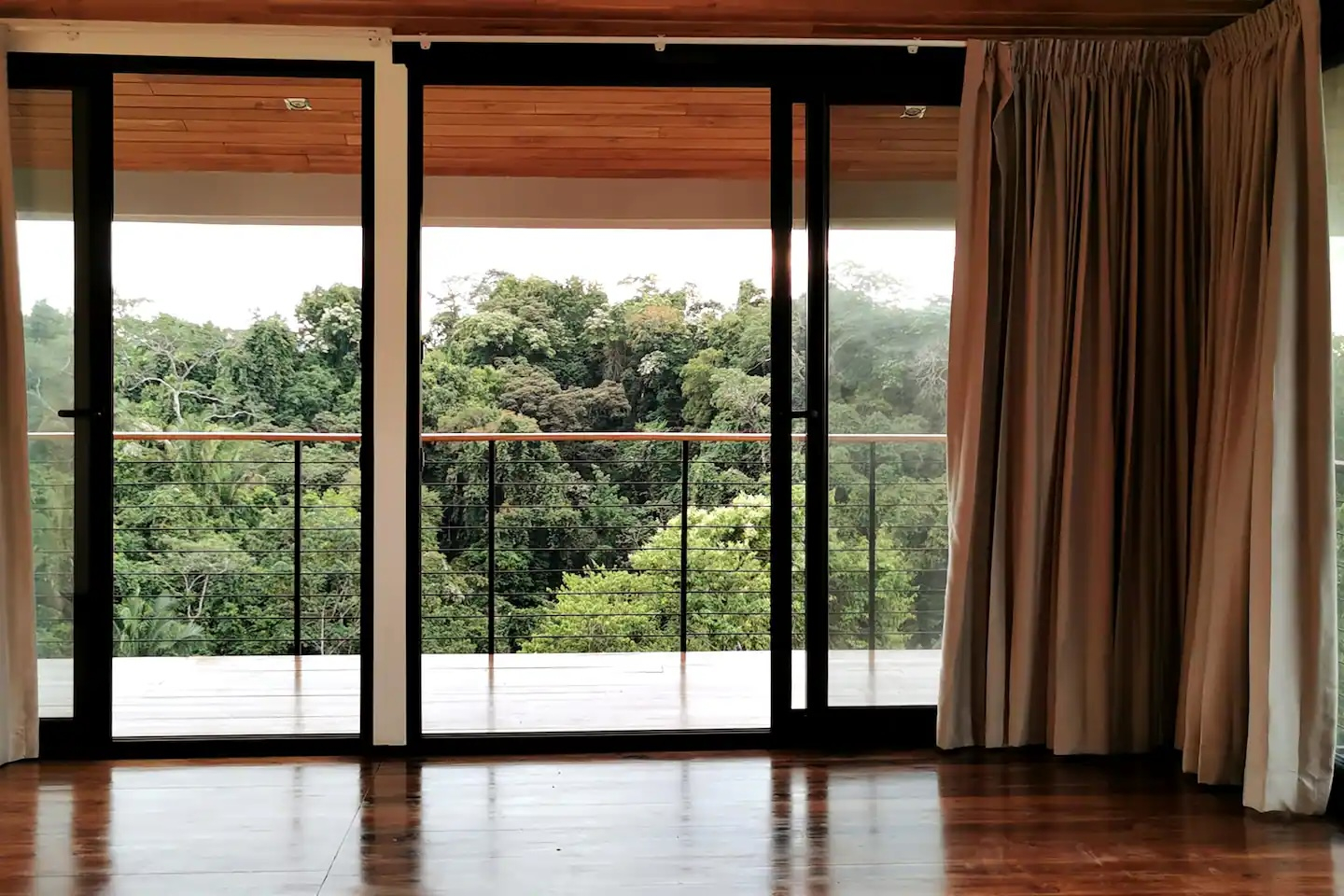 Dormitorio con el balcón largo hacia la vista de la selva, reserva 🌳 natural