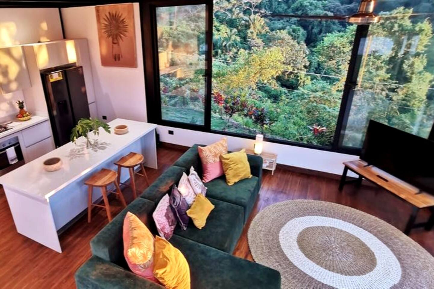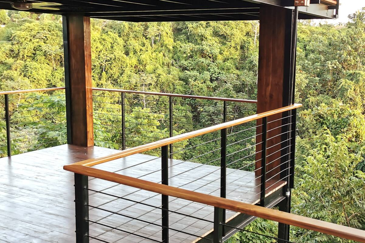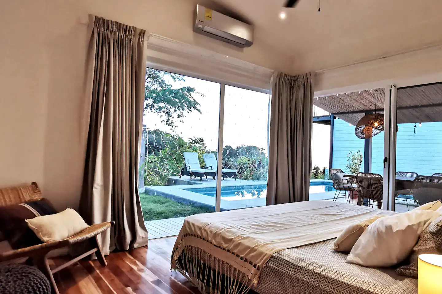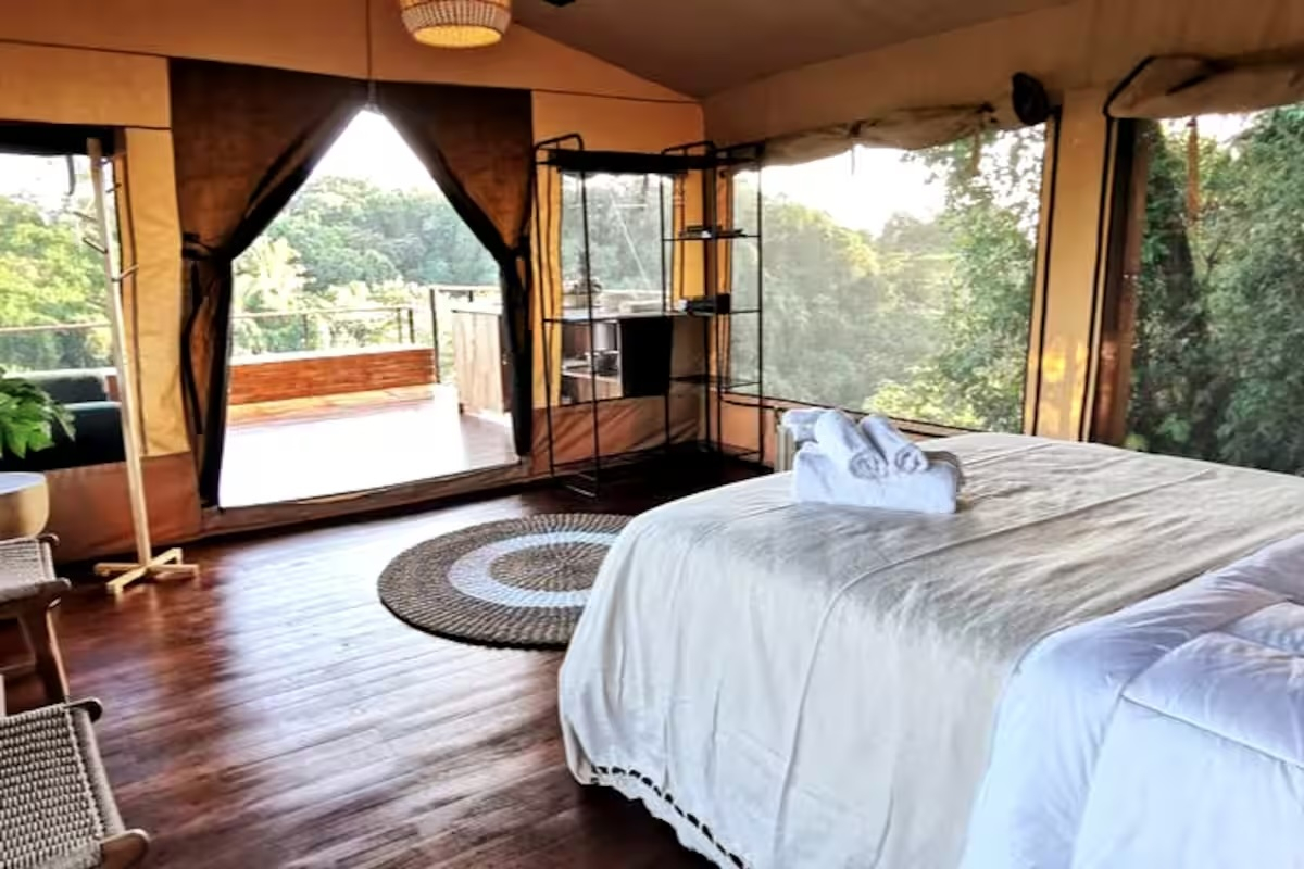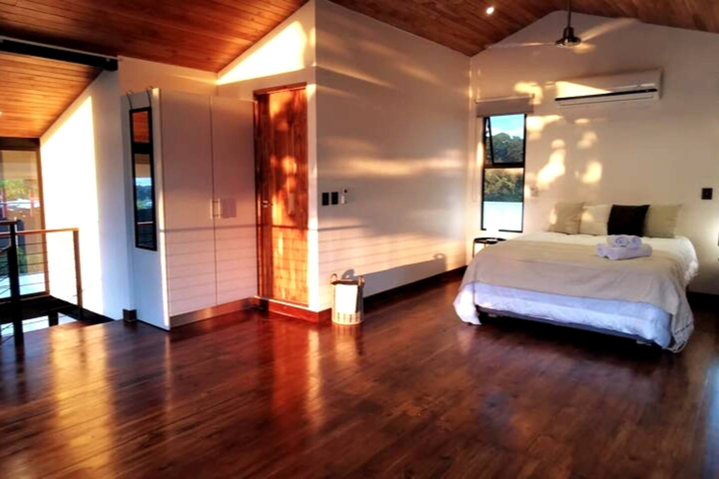 Dormitorio con el balcón largo hacia la vista de la selva, reserva 🌳 natural