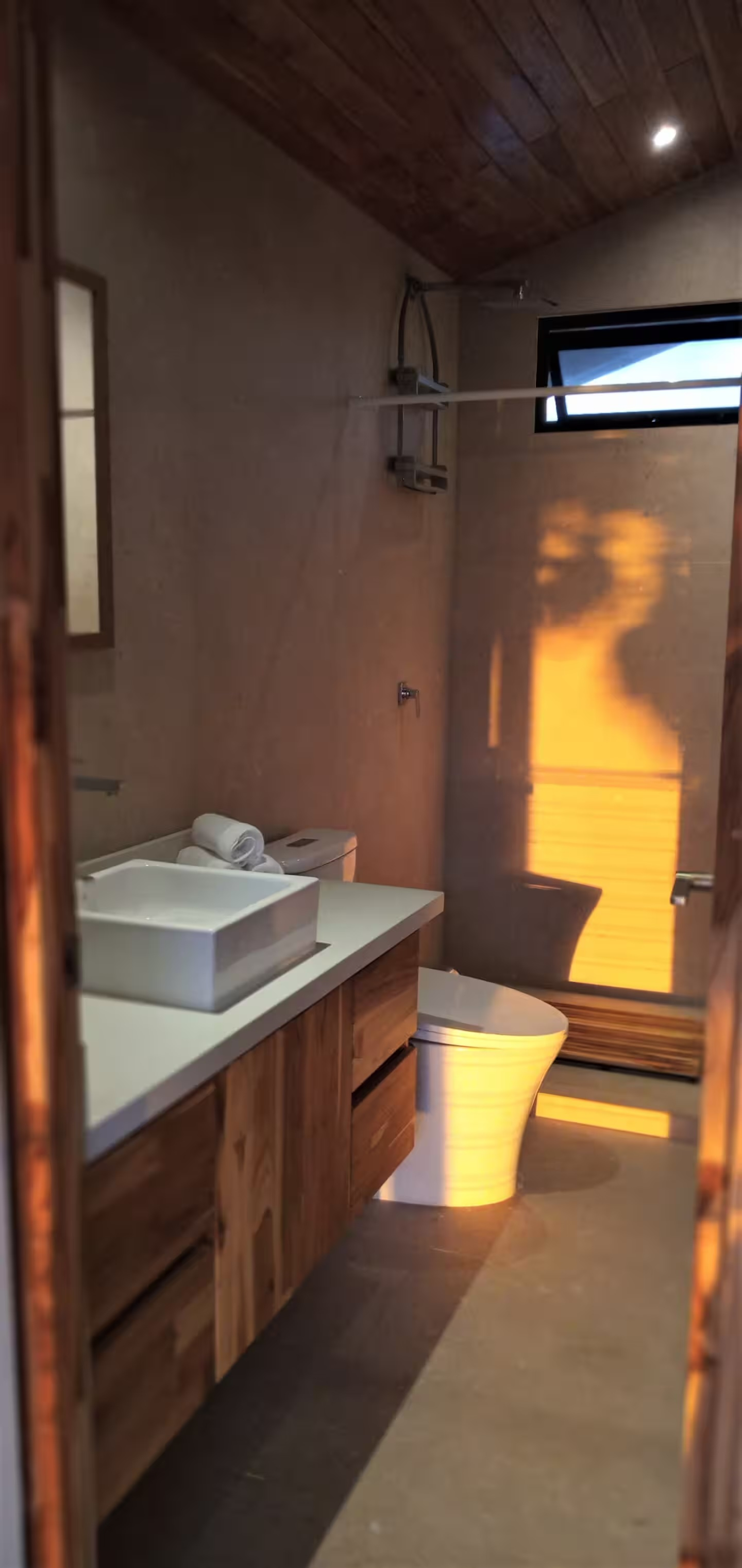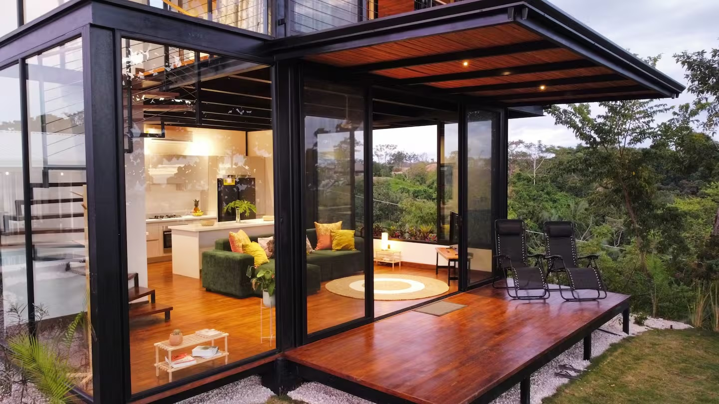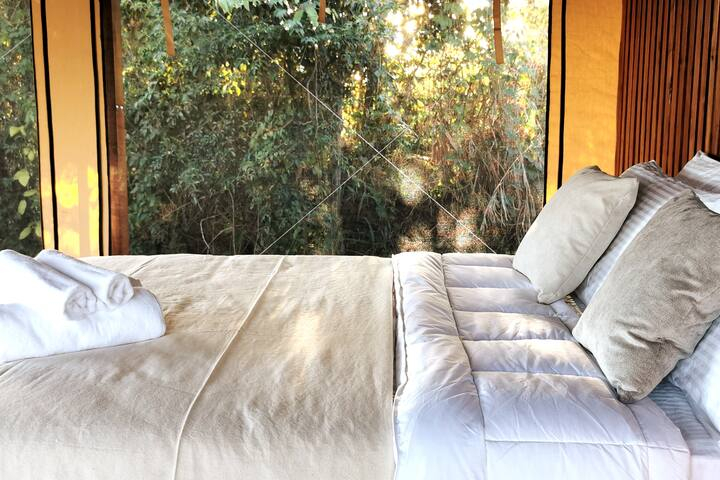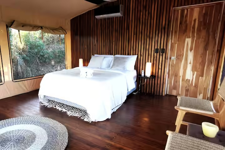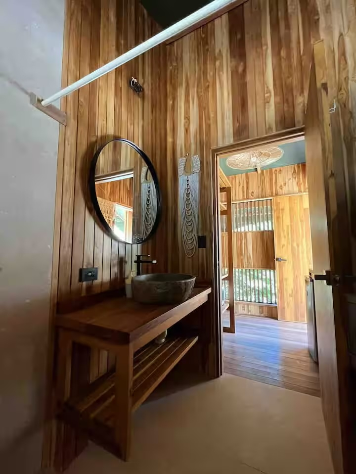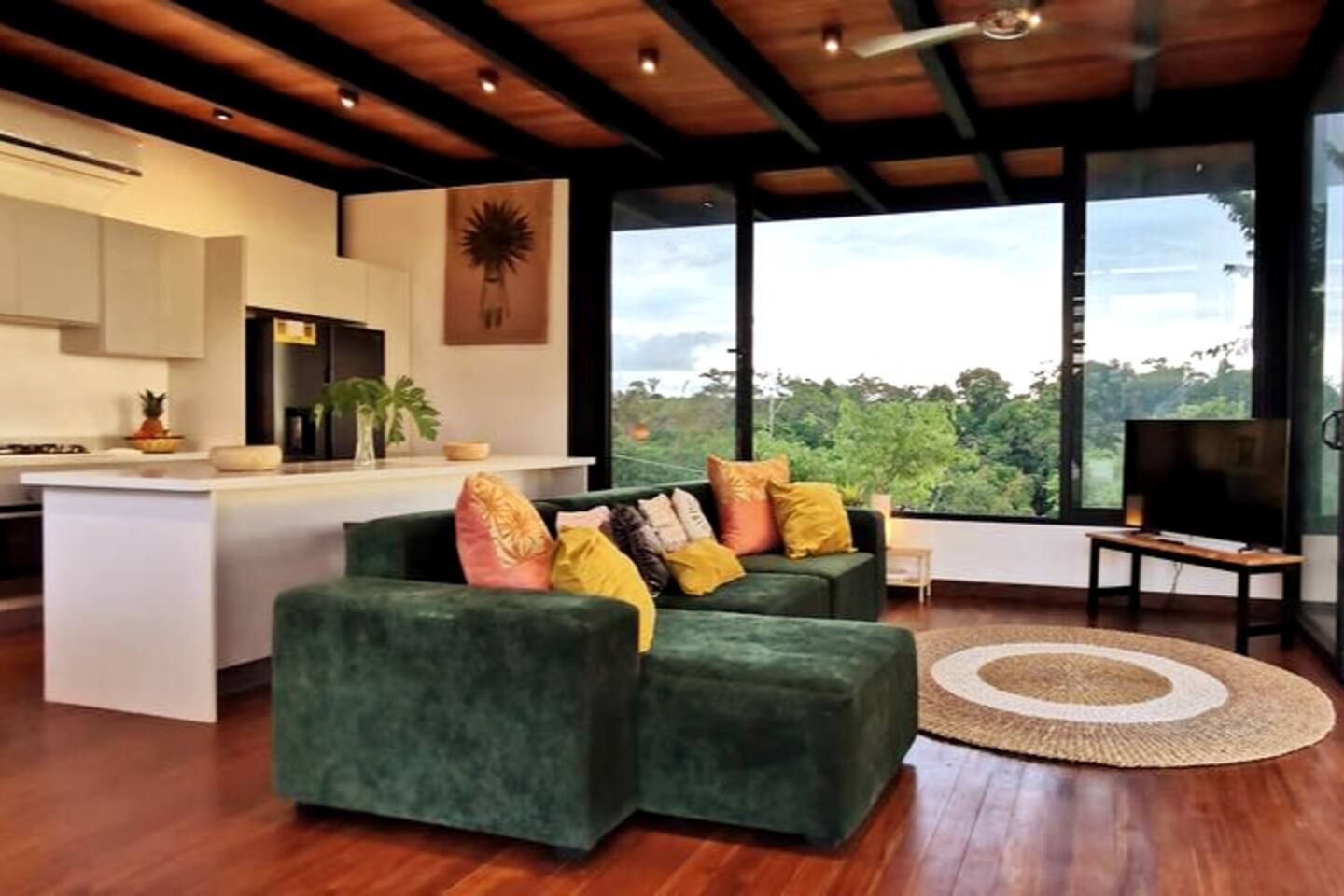 Dormitorio con el balcón largo hacia la vista de la selva, reserva 🌳 natural