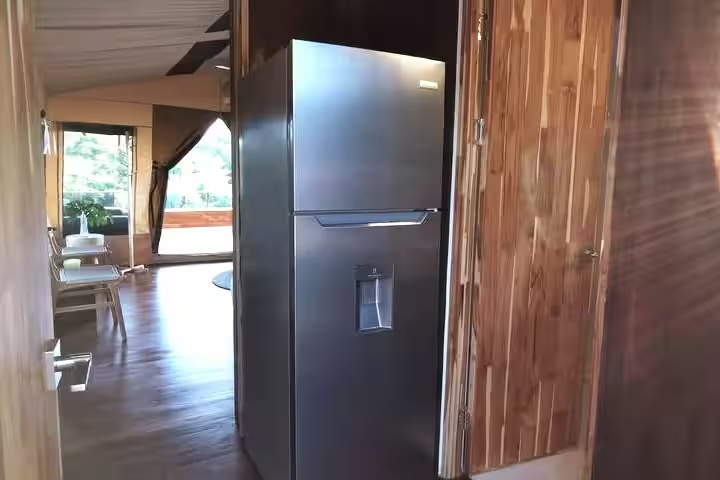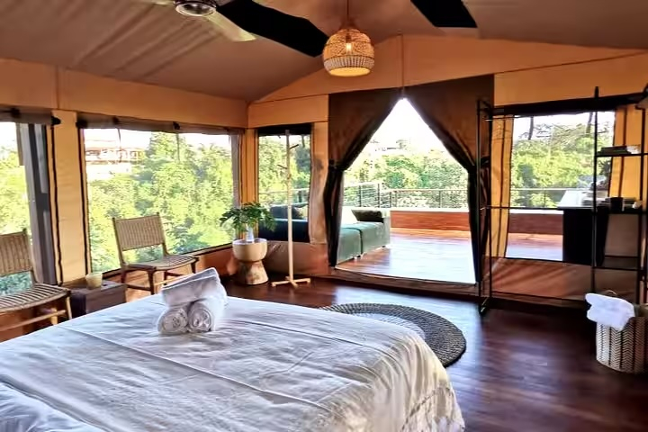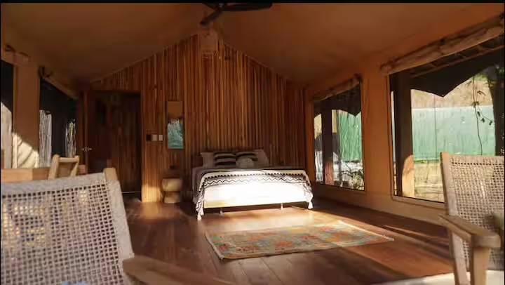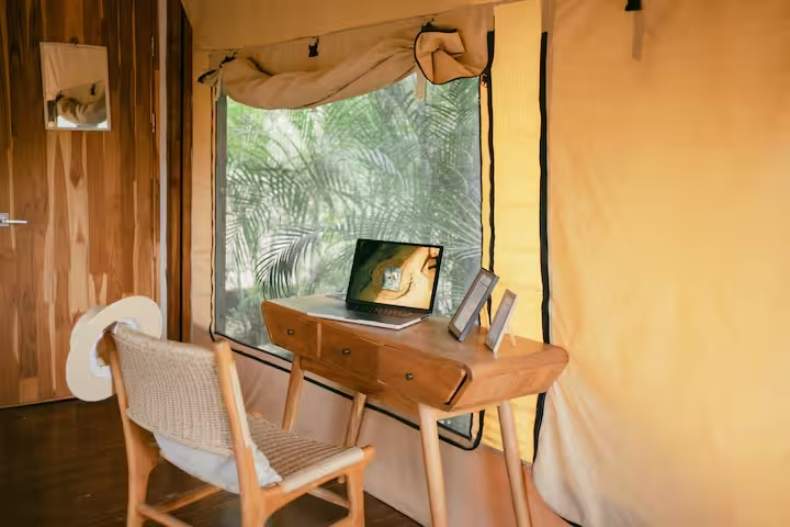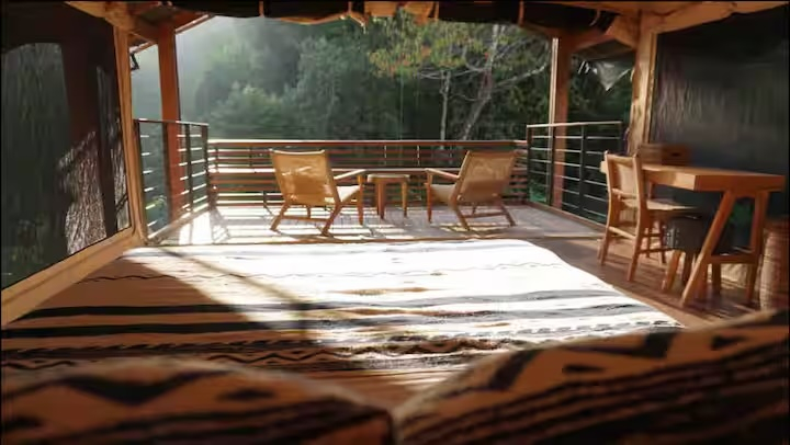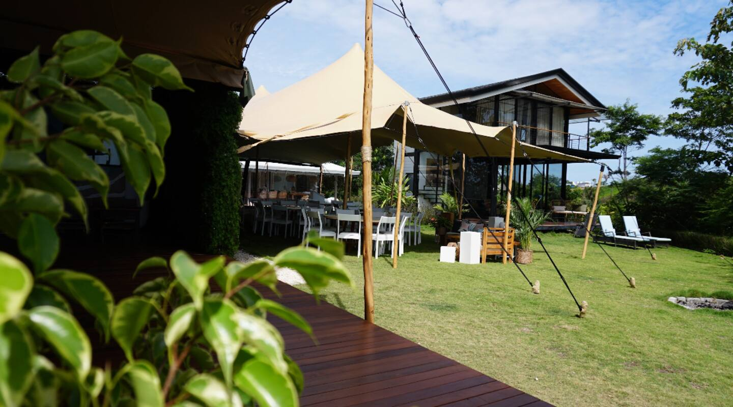 Ahora tiene una tienda de campaña y una terraza de yoga con la zona de bienestar frente a ella.