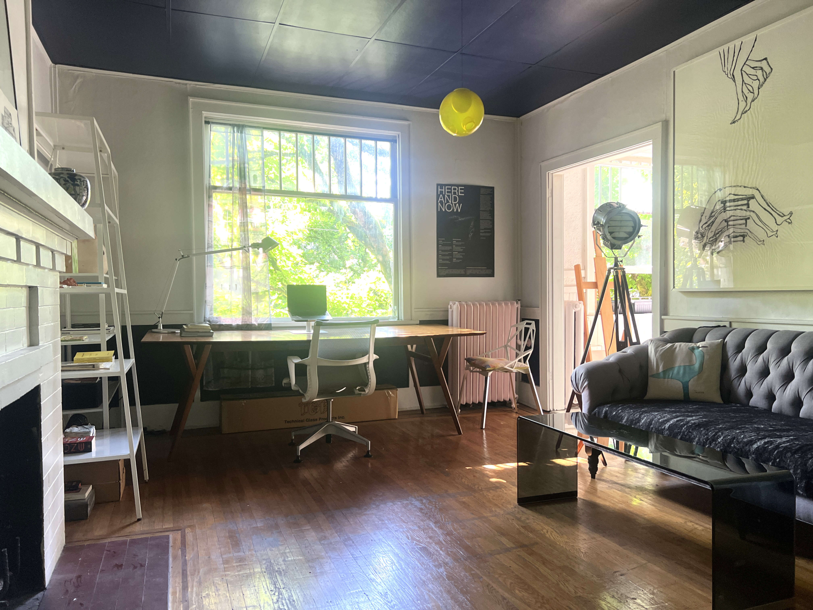 En un céntrico, vibrante barrio, y hotel histórico convertido en apartamento, techo de 10 pies, amplio un dormitorio, encantadores personajes con chimenea de leña, cama plegable, estufa de gas y calefacción por radiador incluidos.
