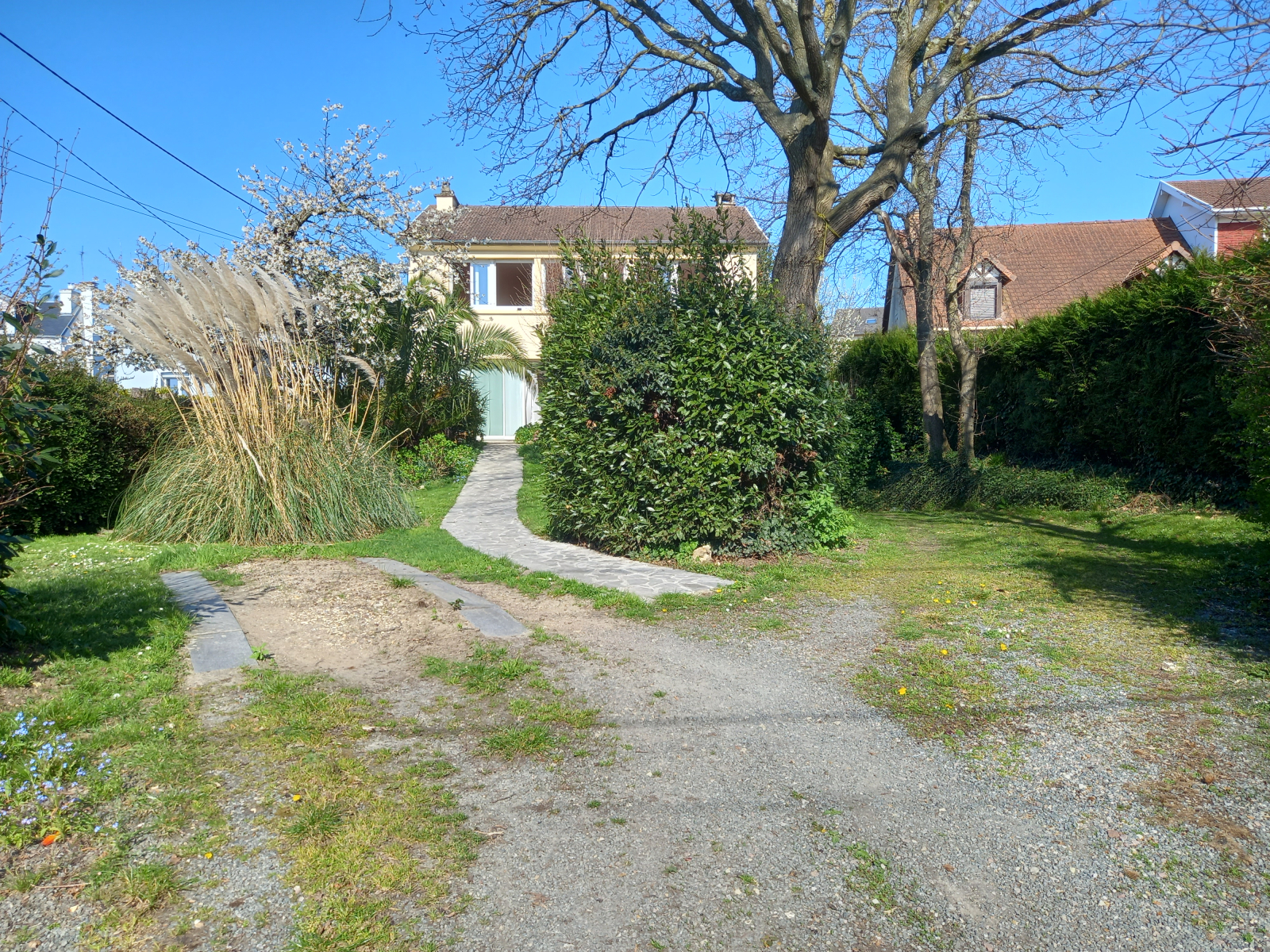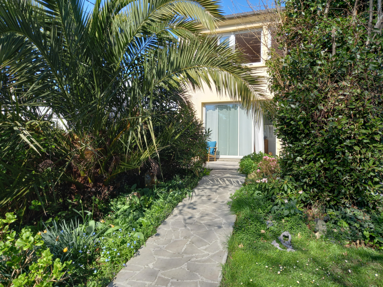 Nuestra casa está en el pueblo, pero tiene la suerte de estar en una calle tranquila, de tener un jardín, de estar justo al lado del bosque con una gran parte de parque y zona de juegos para niños y a 10 minutos en tranvía o en coche del mar. ¡Las ventajas de la ciudad sin las desventajas!