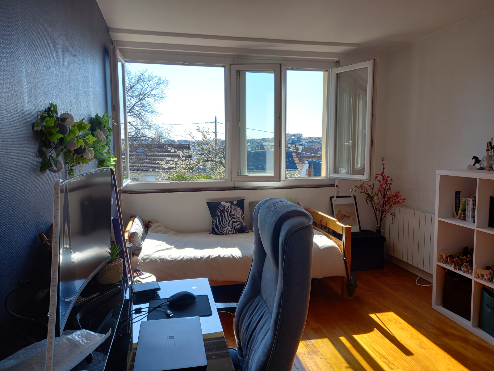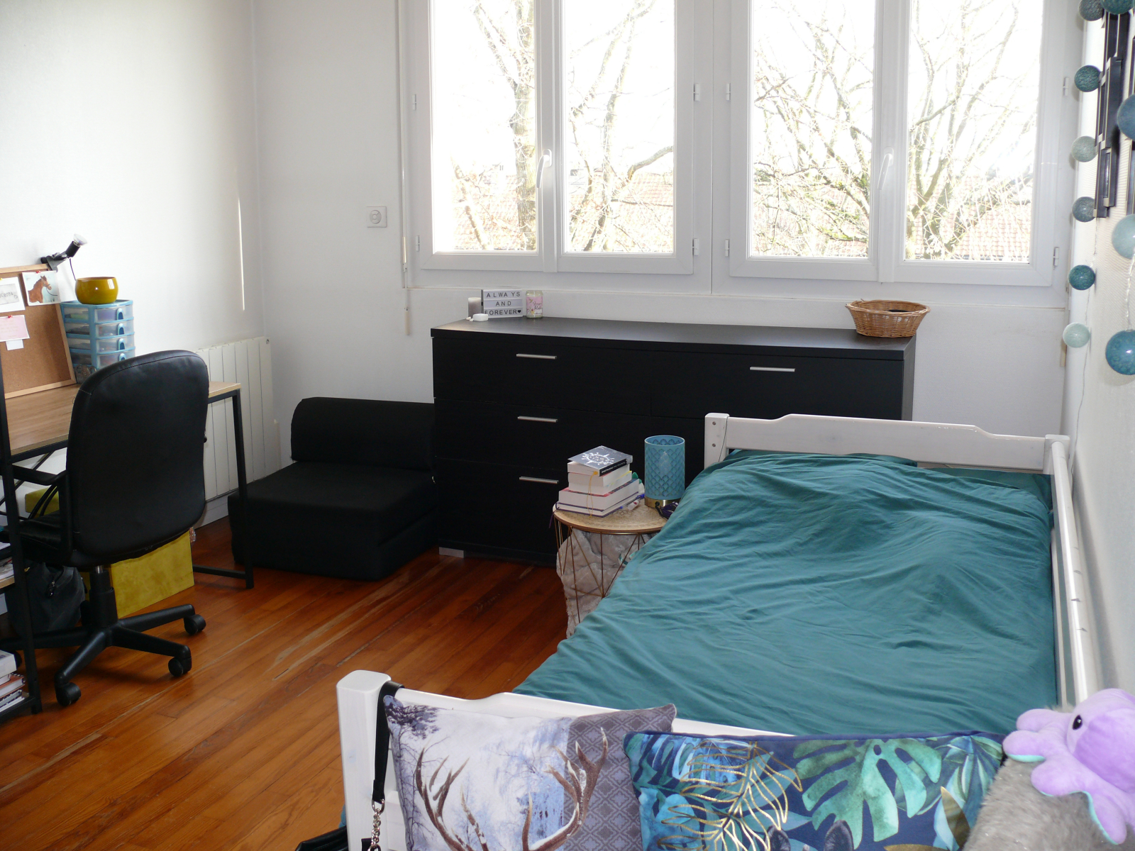 - 3 dormitorios, los 2 dormitorios de nuestros adolescentes (cada uno con 1 cama individual) y los nuestros (1 cama doble en 140). Tenga en cuenta que también tenemos 2 sillones que se pueden utilizar como camas supletorias para niños pequeños.