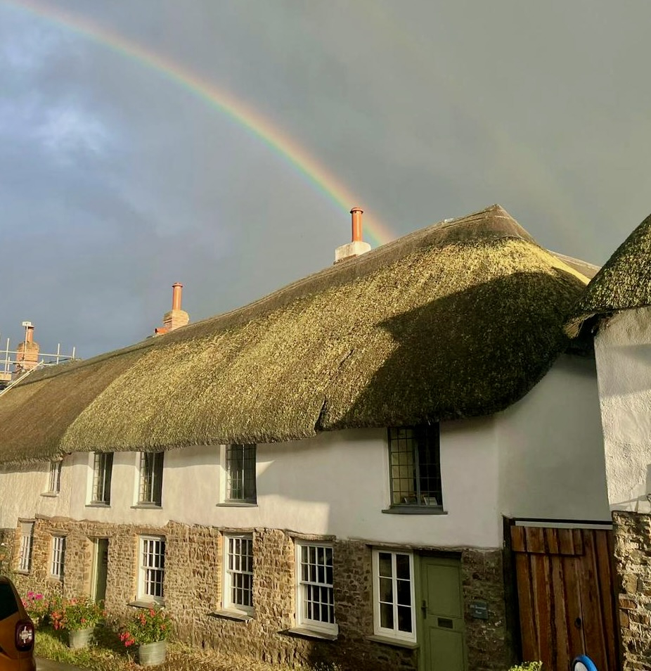 Casa con techo de paja cuidadosamente renovada en un pueblo rural del norte de Devon con un gran jardín y una gran vista