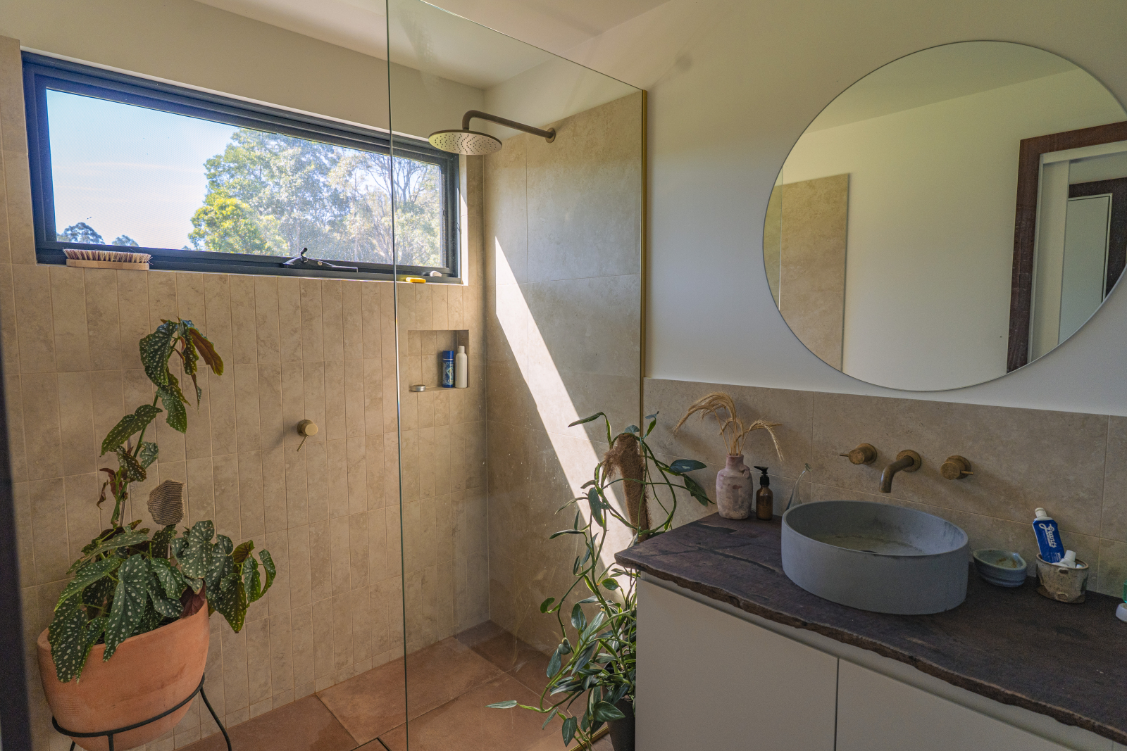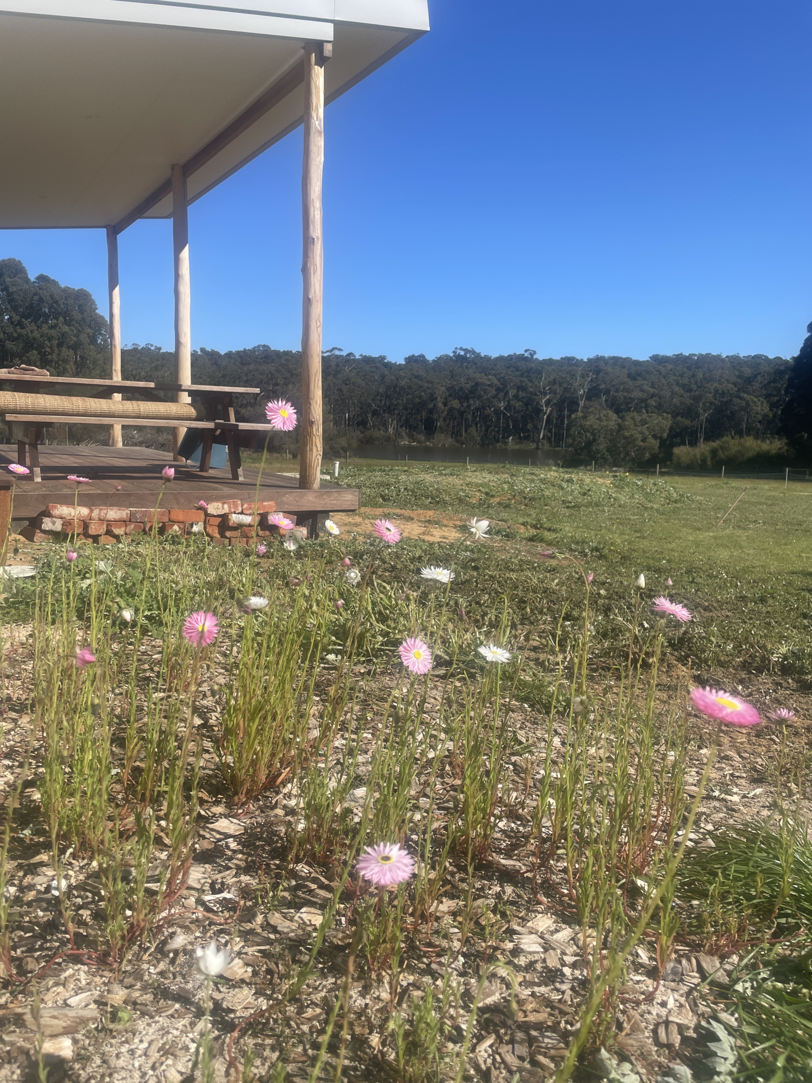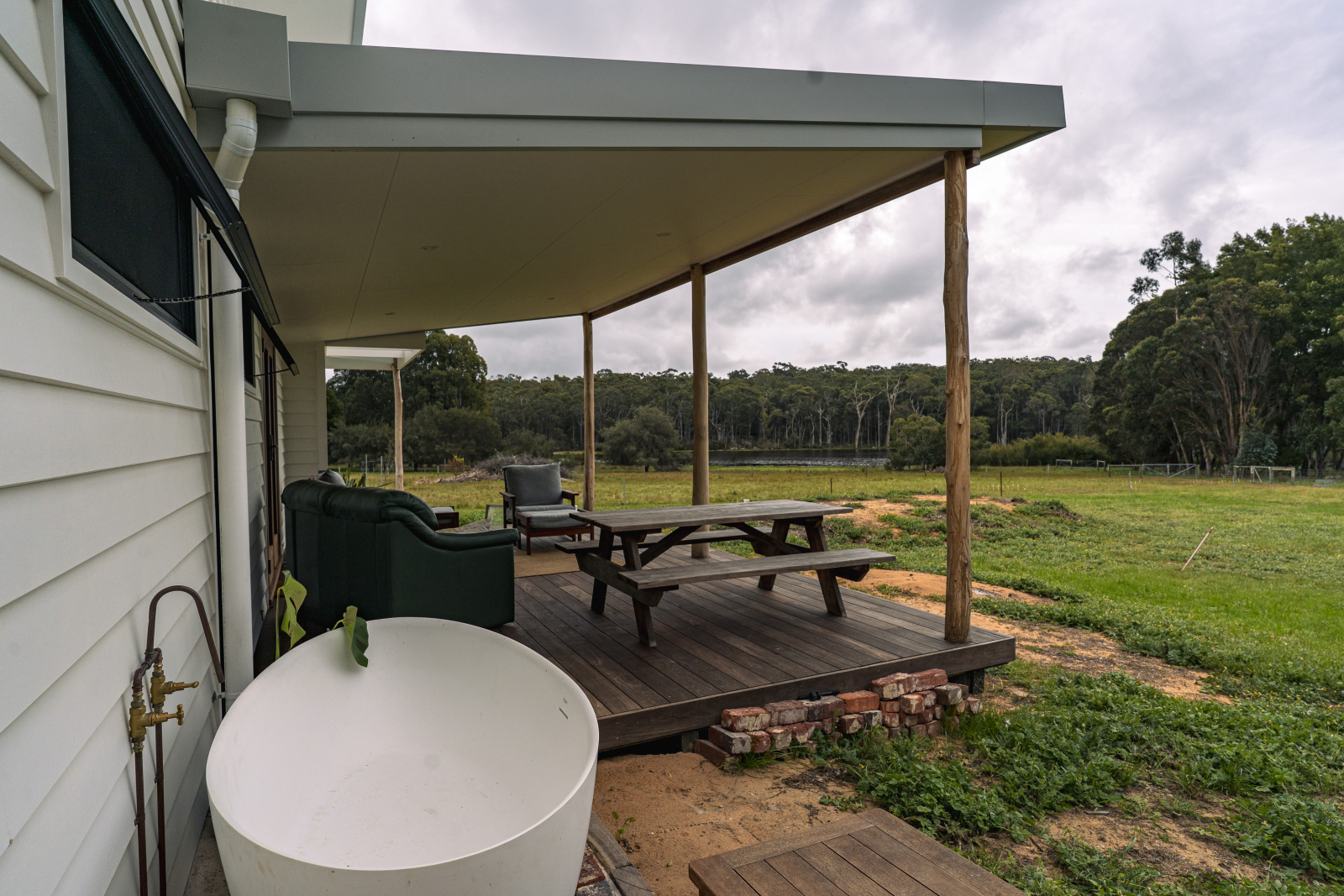 La cocina y la sala de estar dan a una gran presa con matorrales nativos alrededor. También tenemos una hermosa terraza orientada al norte donde nos sentamos y observamos cisnes en la presa o cacatúas sobre la cabeza. Es un pequeño lugar especial para relajarse y disfrutar de la vida tranquila.