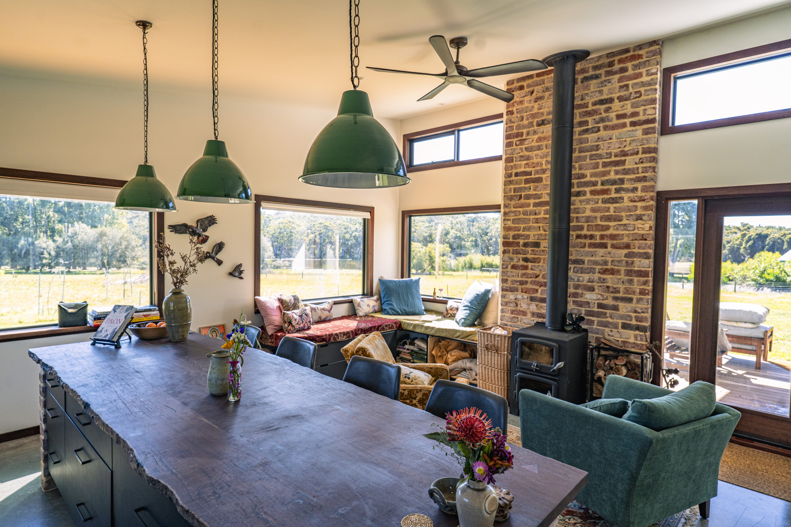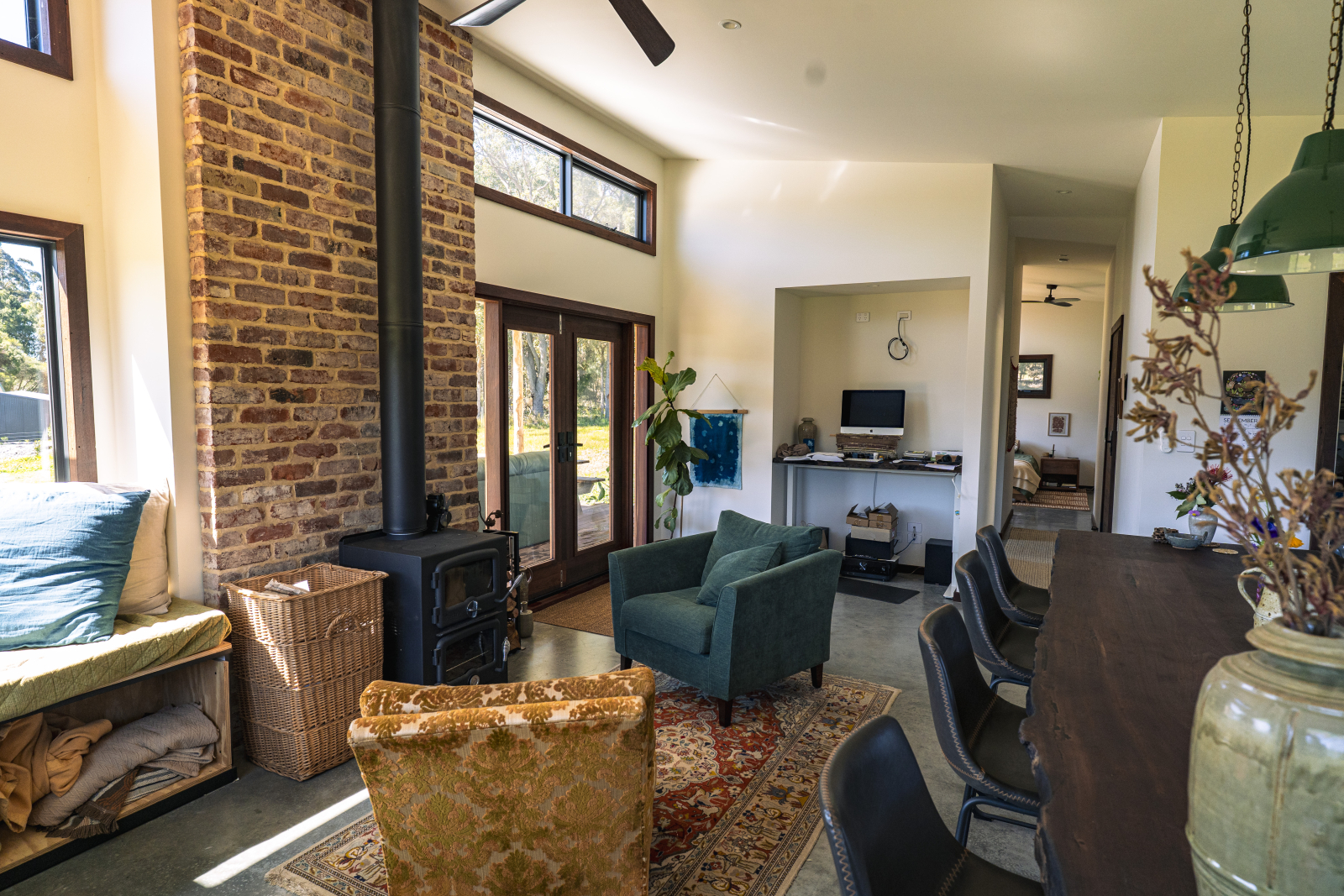 Tenemos un gran fuego de leña y horno para el invierno, una gran cocina moderna. Hay un pequeño rincón de estudio para trabajar desde casa. La casa está terminada con hermosos bancos de madera de jarrah local y marcos de ventanas.