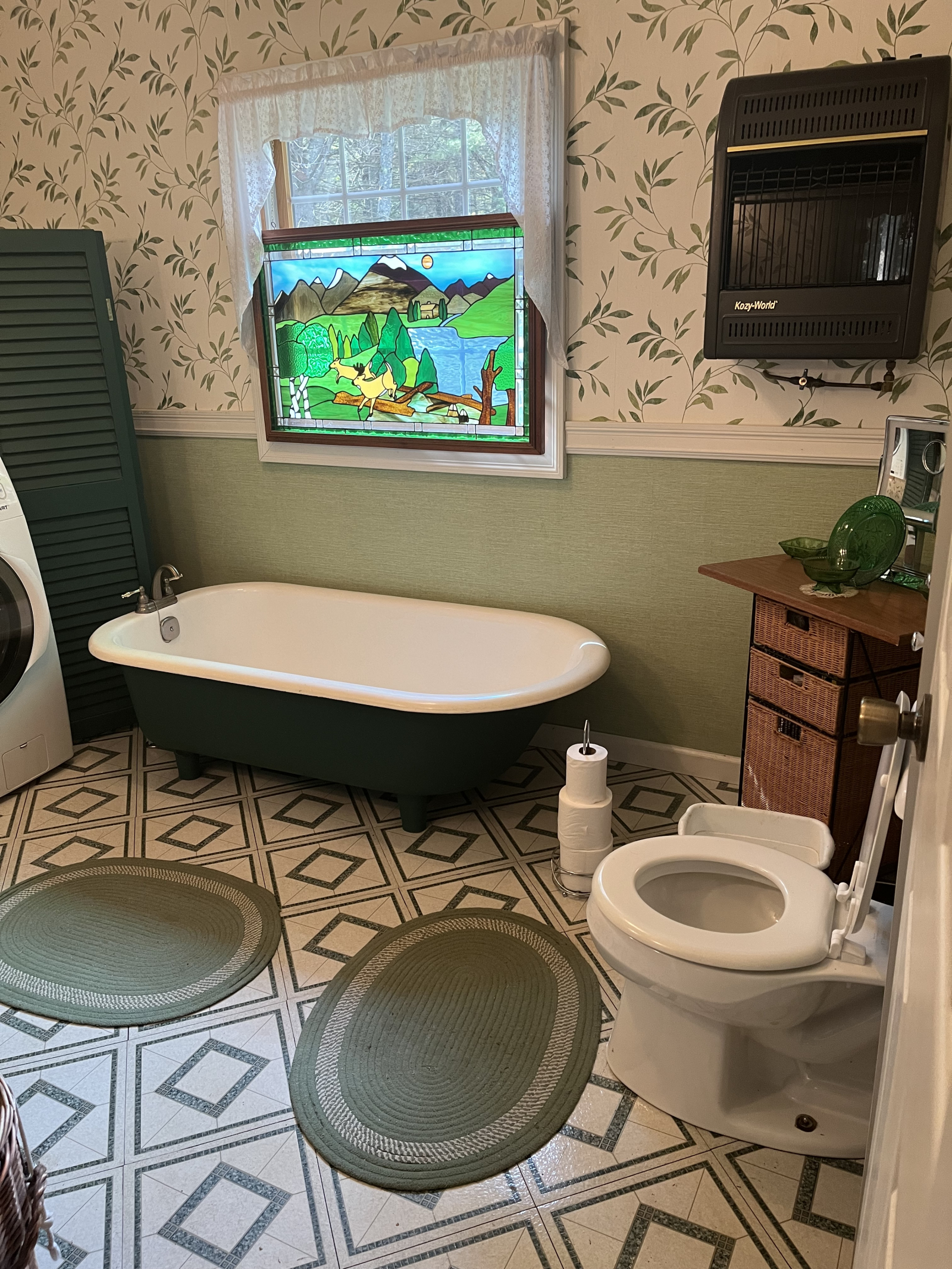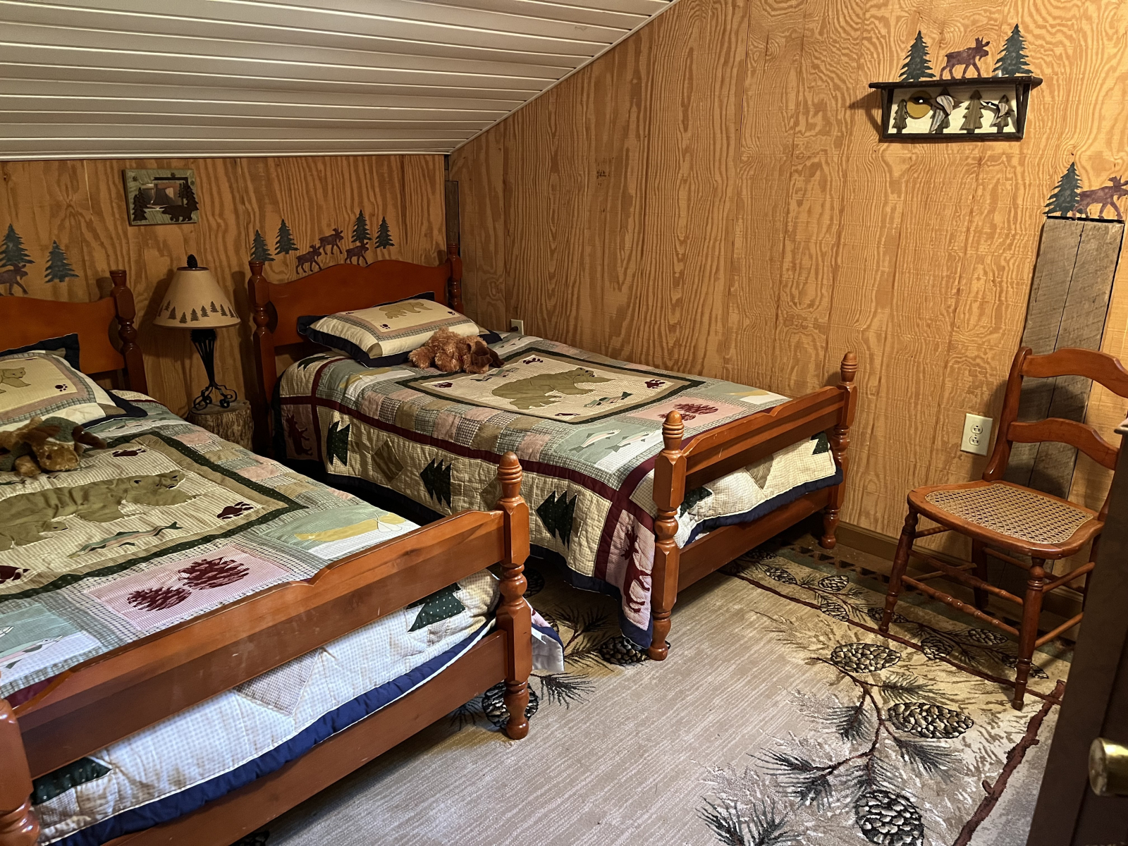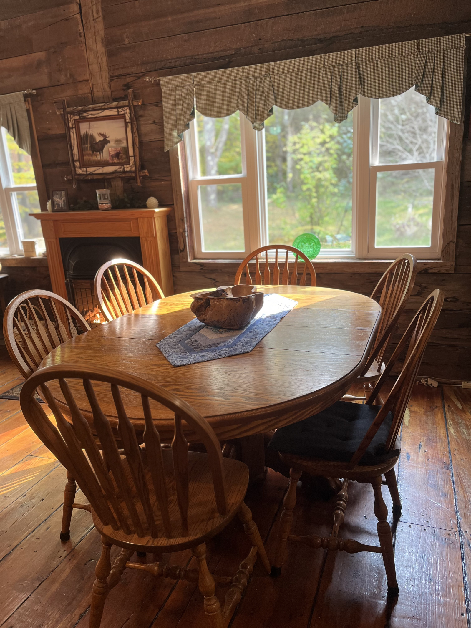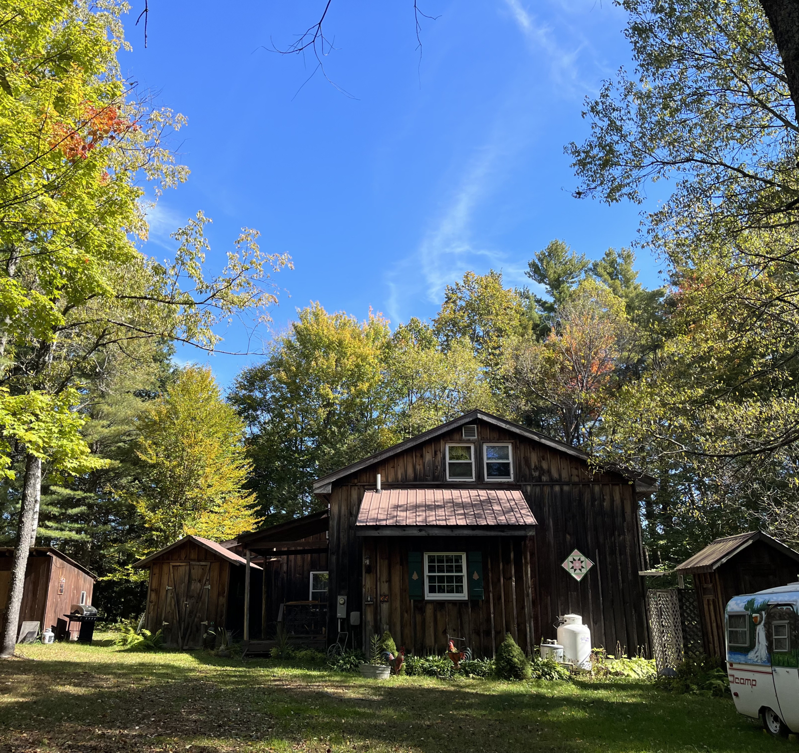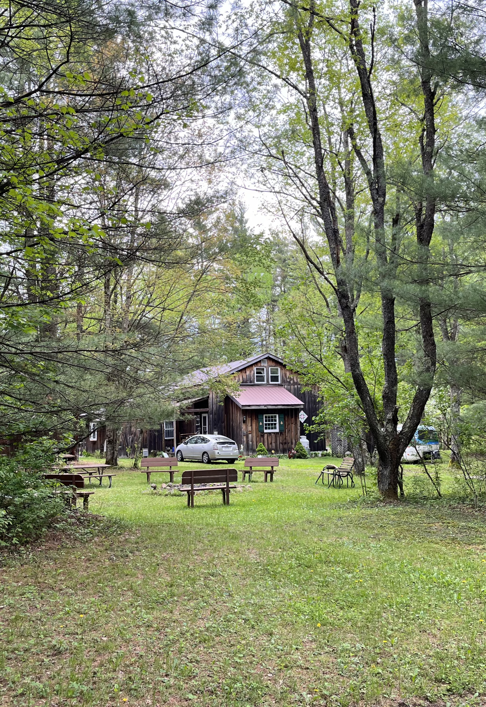Un camino privado de .4 millas lo lleva por un camino de un carril que un visitante describió una vez como "conducir hacia una pintura de Currier e Ives". Cuando ves la valla de madera a la izquierda, el bosque se abre para revelar la cabaña.