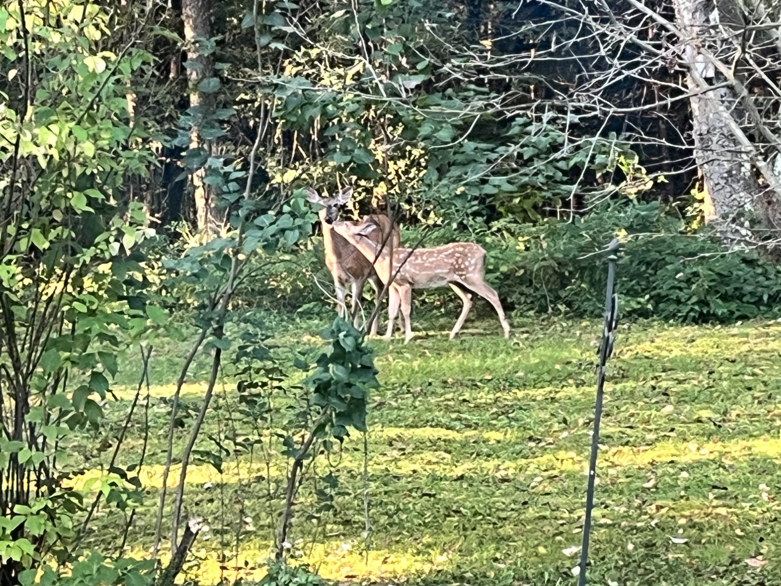 Qué vida silvestre puede ver en The Promised Land: búhos, pájaros carpinteros, colibríes, pavos salvajes, zorros, ciervos y mapaches molestos después del anochecer. Venga, sí... y peces y tortugas en el lago.