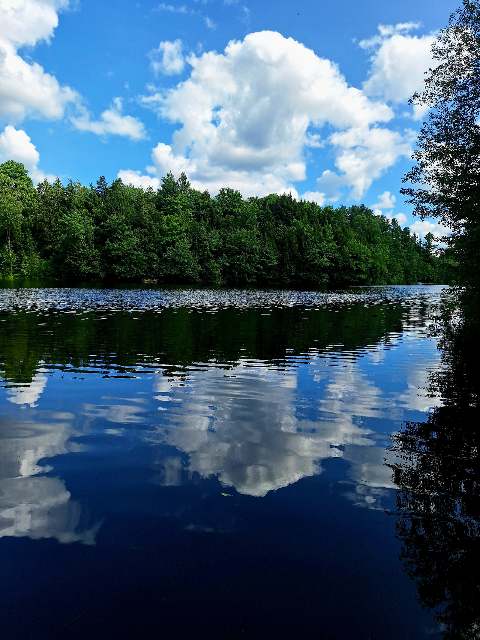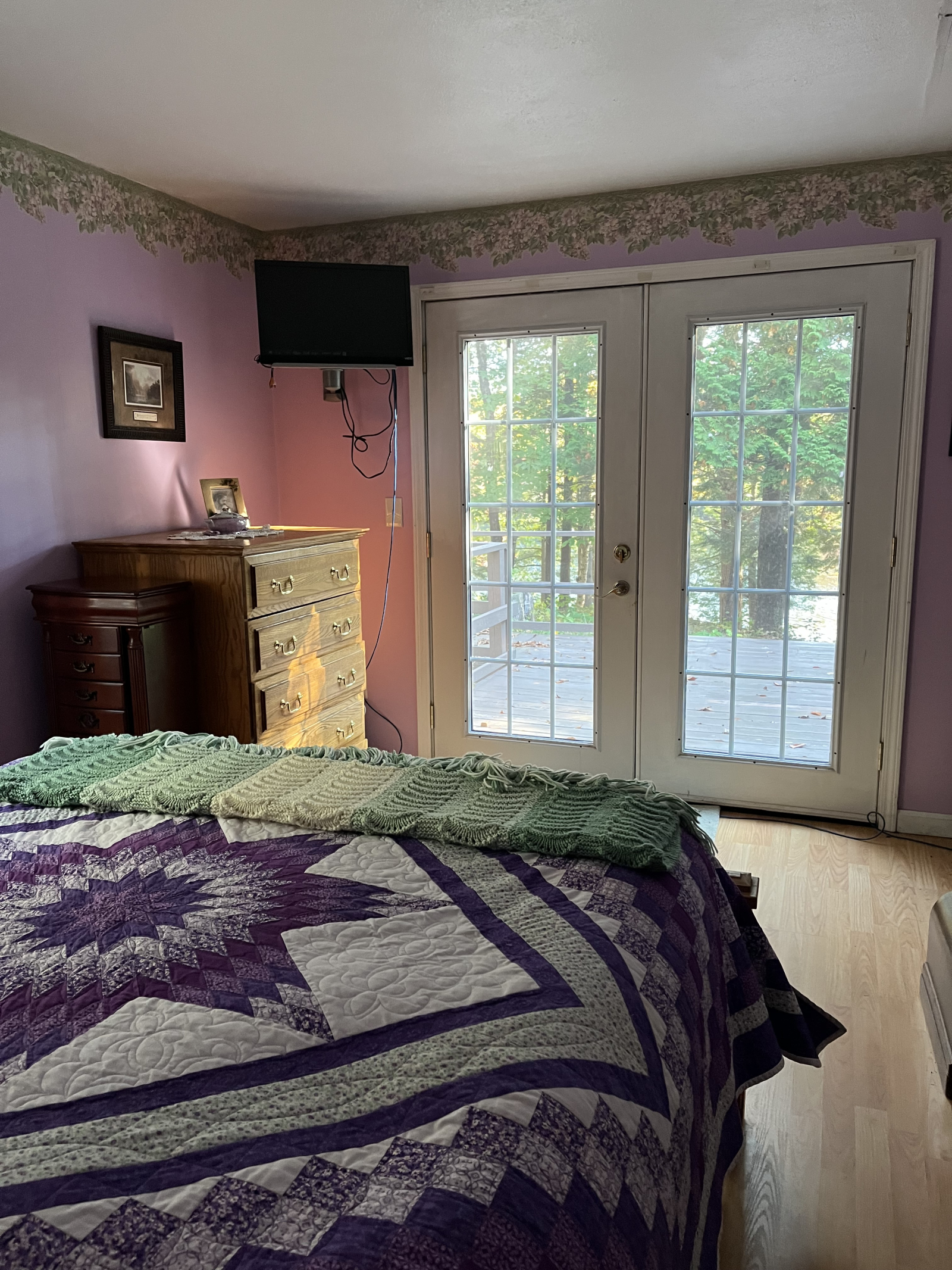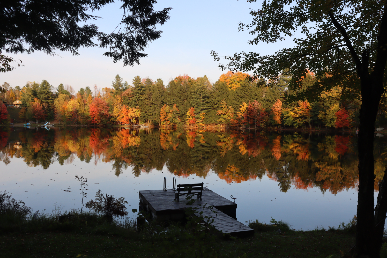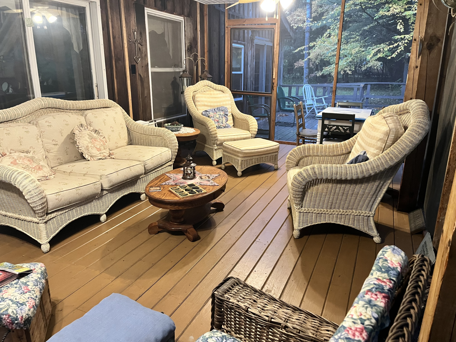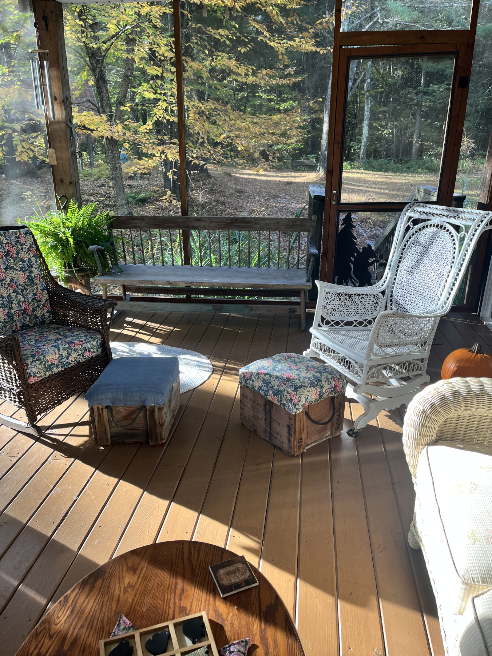 Sentarse en el porche delantero con mosquitero por la mañana revela una multitud de diamantes brillantes mientras el sol brilla en la superficie del lago. El sol de la tarde envía rayos de luz a través del verde de los árboles y muestra la belleza de los bosques.
