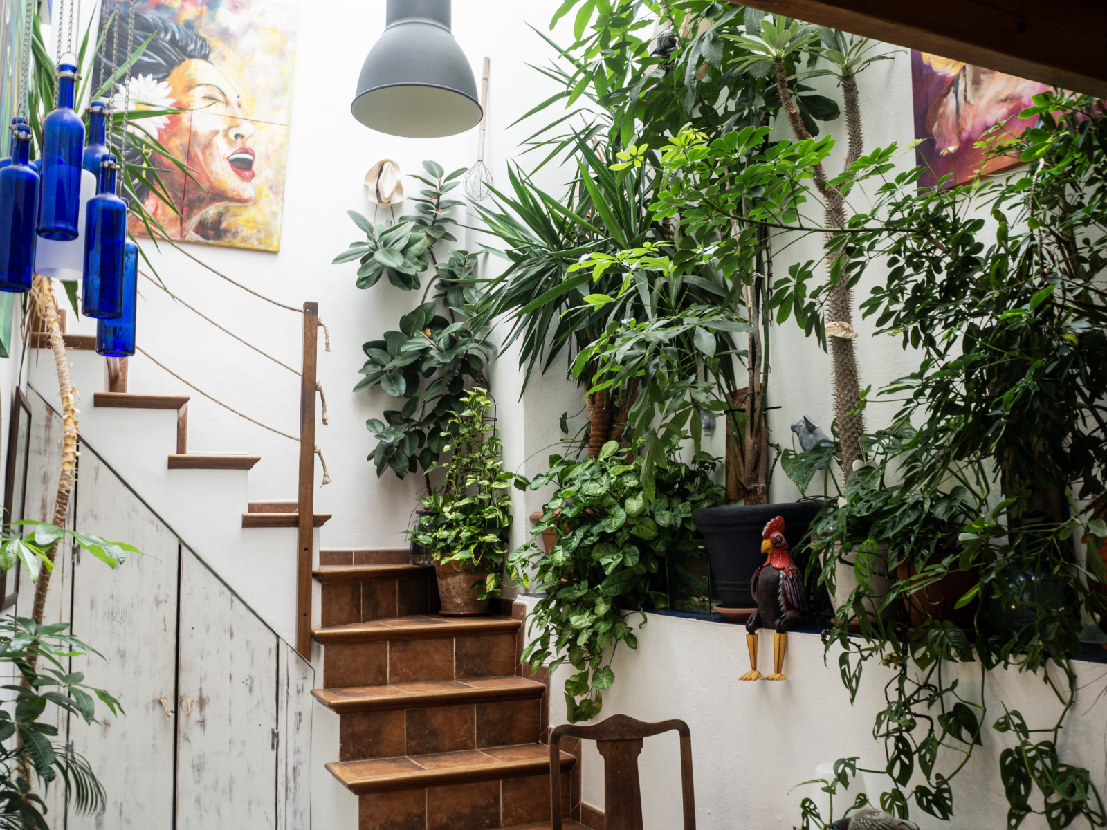 Nuestra casa tiene tres tramos de escaleras interiores y otro exterior que conduce a nuestra terraza en la azotea con vistas al mar.